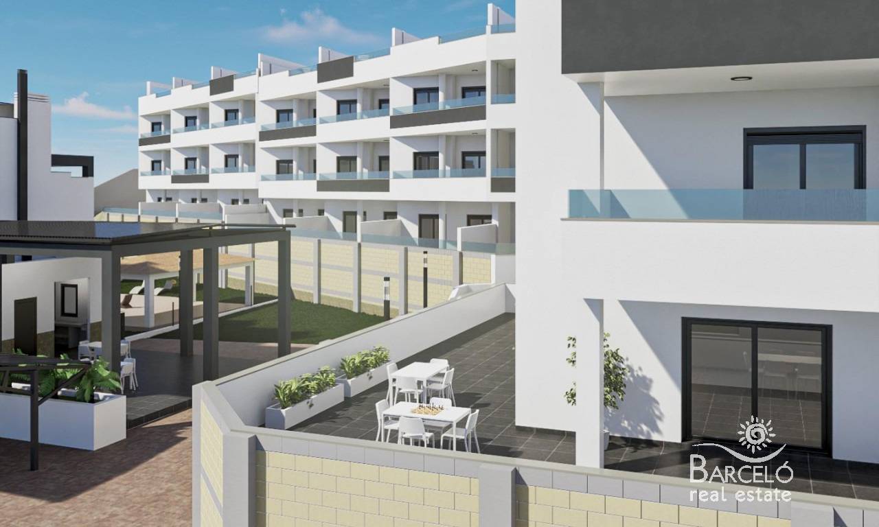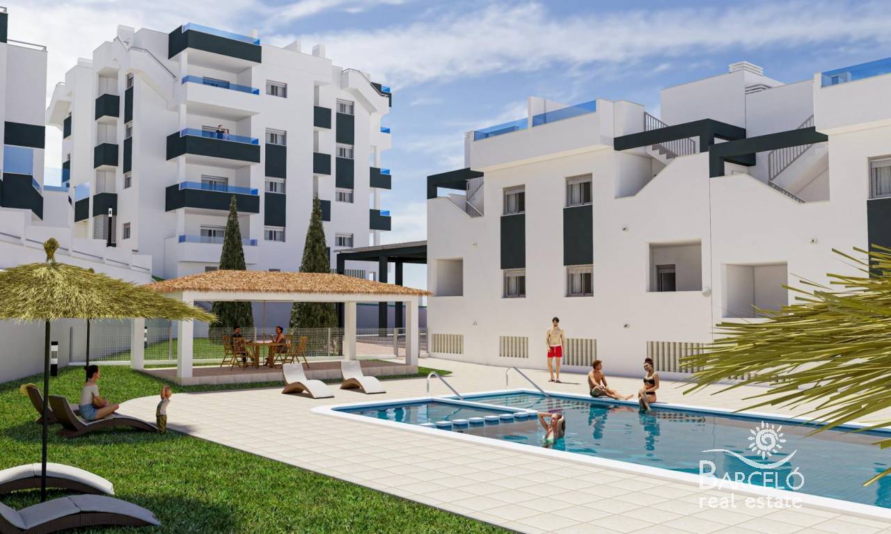 New Build residential complex in Los Altos, Orihuela Costa. Gated complex consist of bungalows, apartments and penthouses, all with 2 bedrooms, 2 bathrooms, open plan kitchen with the lounge area, fitted wardrobes, terraces, storage room and parking. Ground floor bungalows will have a semi-basement area destined to garage, the access to the garage will be made from the outside through an automatic door, top floor bungalows and penthouses will have private solarium, middle floor apartments - nice terraces. The Residential will have a swimming pool with separate areas for adults and children, a garden area around the pool with a pergola, toilets next to the pool, an open and covered social area with benches where you can enjoy eating with family and friends, and an enclosed gym and social area. The enclosed social area will have toilets and shower. Residential will also have a covered parking area, in which each home will have a linked parking space, equipped with preinstallation for charging electric vehicles, except for the ground floor bungalows which will have their own parking. New Build Residential complex is located in a great area, in current expansion, close to the beaches of Torrevieja, Punta Prima and Playa Flamenca. The Residential is also very close to the Laguna Rosa of Torrevieja which is part of the Natural Park of the Lagunas de la Mata and Torrevieja, and is a great area for walking and enjoying the beautiful and unusual landscape Residential is surrounded by all the necessary services, and leisure areas and places: it has supermarkets a few minutes away, the La Zenia shopping center is 8 minutes away, the Torrevieja Hospital is 7 minutes away, the Villamartin golf course is only 7 minutes from the Residential, and also has numerous restaurants and cafes nearby. In addition, the Residential is very close to the Mediterranean Highway, which allows you to means to reach the Altet airport in Alicante in just 40 minutes. The connection with the international airport of Murcia is also good, being able to make the journey to it in 42 minutes