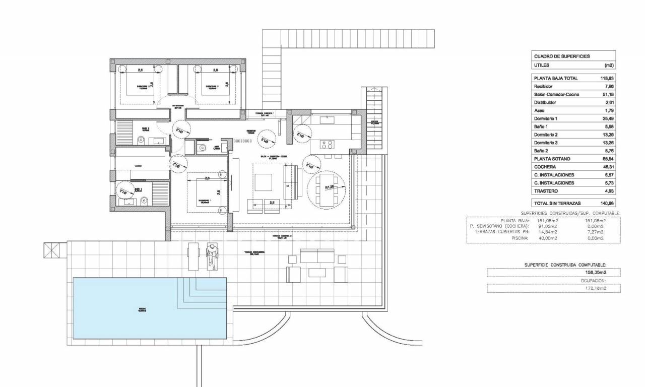 NEW BUILD VILLA IN LAS COLINAS GOLF New Build Modern Villa situated in Las Colinas Golf & Country Club, Orihuela Costa. New Build Villa has 3 bedrooms, 3 bathrooms, open plan kitchen with the lounge area, fitted wardrobes, spacious terraces, private garden with the pool and basement with the garage. Quiet location offering a lot of privacy and surrounded by the local Mediterranean forest and green area. In the heart of the Costa Blanca South we find a leafy valley of 330 hectares between hills, very close to the sea and with a magnificent championship golf course that crosses it. On Las Colinas Golf & Country Club you will furthermore find a wide variety of amenities for the property owners such as tennis, padel-tennis, fitness, massage, golf, restaurants, minimarket with fresh baked bread and much more. You will enjoy 200,000 square meters of beautiful Mediterranean landscapes and you will be able to make scenic walks through the lush indigenous, native flora and the extensive fields of orange and lemon groves. Las Colinas golf located 40 minutes from Alicante airport and 1 hour Murcia - Corvera airport.