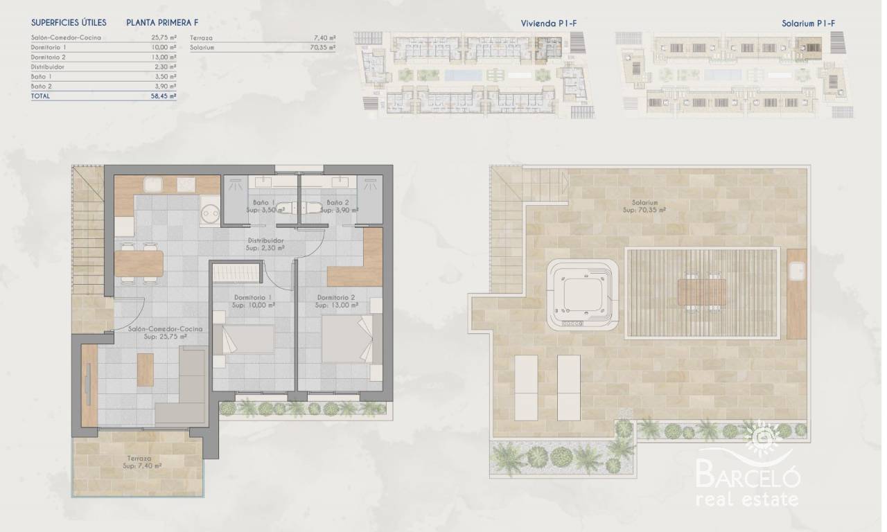 New Construction Homes in Torre-Pacheco, Costa Cálida Modern Bungalows with Exceptional Features Discover a new residential complex in Torre-Pacheco, offering 24 stylish bungalows with 2 or 3 bedrooms. Choose between ground-floor homes with spacious terraces or first-floor units boasting private terraces and solariums. Each solarium includes a pergola, a barbecue area, and reinforced roofing, perfect for installing a jacuzzi. All homes come with a designated parking space and fully installed air conditioning, ensuring comfort year-round. Prime Location in Torre-Pacheco Nestled in the heart of Torre-Pacheco, this development enjoys proximity to essential amenities, including supermarkets, shops, bars, and restaurants. The vibrant town center, with its charming Spanish ambiance, is within walking distance. For beach lovers, the stunning Mar Menor is just a 10-minute drive away, offering golden sands and crystal-clear waters. Enjoy Outstanding Community Amenities The complex features a beautifully landscaped community area with lush gardens and a sparkling pool, providing a serene retreat to relax and unwind. The area’s sunny climate, averaging 320 days of sunshine annually, complements these outdoor spaces perfectly. Surrounded by Award-Winning Golf Courses Torre-Pacheco is a golfer’s paradise, surrounded by some of the most renowned golf courses in Spain. These courses are just a short drive away, making it an ideal location for golf enthusiasts. Strategic Connections to Key Destinations Murcia International Airport: 20 km (approximately 20 minutes by car). Train Station: Only 700 meters away, offering convenient travel options. Shopping Centers: Several large shopping complexes within a 15 km radius. Beaches: The beautiful Costa Cálida beaches are a mere 10 km away. Ports and Marinas: The closest marina is around 12 km away, perfect for boating and water sports. A Healthier Lifestyle Awaits The Costa Cálida region is renowned for its exceptional quality of life. With low humidity, clean air, and a subtropical climate, this area is one of the healthiest in Spain. The perfect combination of natural beauty, sea breezes, and abundant sunlight makes Torre-Pacheco a highly sought-after destination. Act Now to Secure Your Dream Home Don’t miss this opportunity to own a modern home in a prime location. Contact us today to learn more about this incredible development or to schedule a viewing!