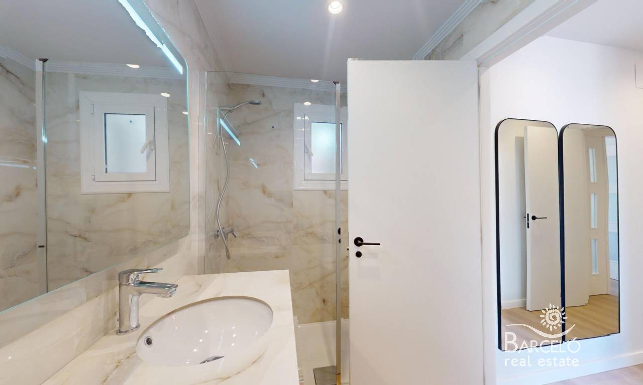 Modern bathrooms, equipped with washbasin unit and mirror.