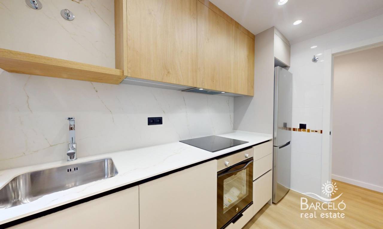 Kitchen equipped with induction hob, electric oven and concealed extractor hood of the BALAY brand.