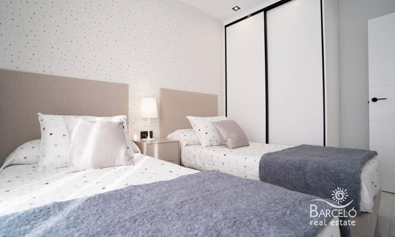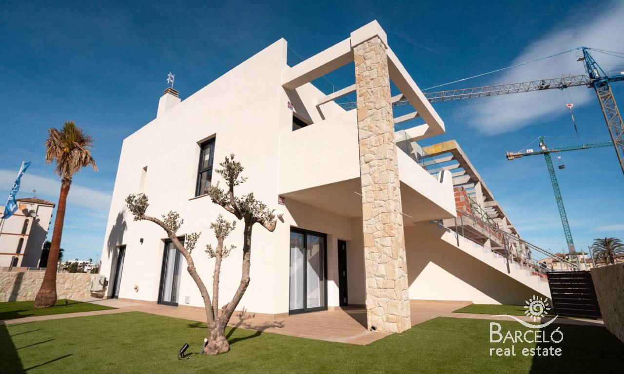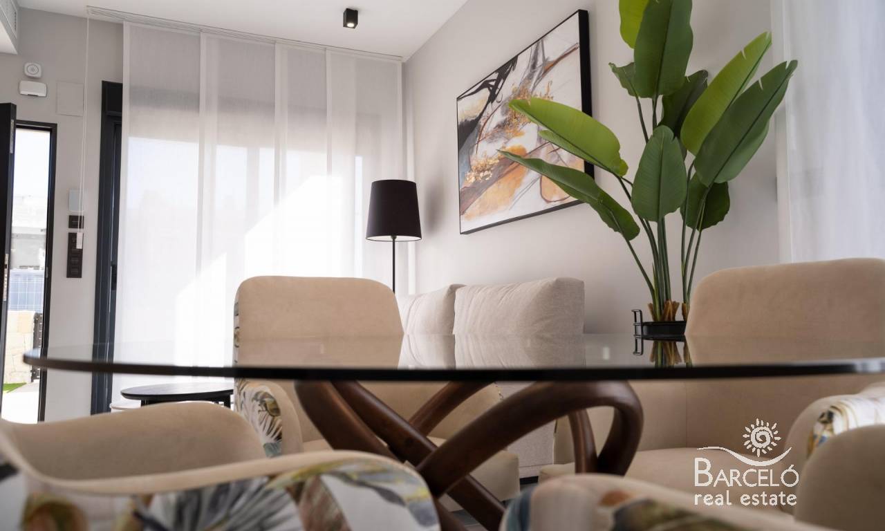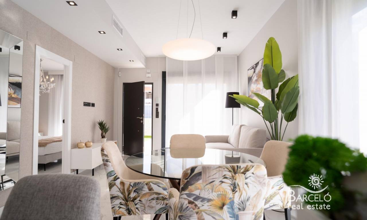 New build bungalows in Pilar de la Horadada Modern homes close to the beach Discover this exclusive new build residential complex in Pilar de la Horadada, offering bungalows just 2 km from the beach. Designed for comfort and style, these homes are an excellent opportunity to enjoy life on the Costa Blanca. Spacious and stylish homes This development offers 2 or 3 bedroom homes with 2 bathrooms and private parking. Choose from: Ground floor bungalows with private garden. Top floor bungalows with private solarium. Each property is built with high-quality materials and modern finishes, including: Ducted air conditioning pre-installation. Aluminum exterior carpentry, double glazing, and injected aluminum shutters. Security entrance door for added peace of mind. Aerothermal system for efficient hot water production. Built-in wardrobes in bedrooms. Fully equipped bathrooms with furniture and shower screens. Exclusive Community Features This private residential complex boasts a beautiful communal pool and landscaped gardens, creating an ideal space for relaxation. Located just outside the town center, residents can walk to supermarkets, restaurants, bars, schools, and other essential services. Prime Location in Pilar de la Horadada Pilar de la Horadada is a charming Spanish town in the southernmost part of the Costa Blanca. It offers a vibrant main street with numerous shops, supermarkets, restaurants, and picturesque squares. The stunning beaches of Torre de la Horadada and Mil Palmeras are only 5 minutes away, featuring fine golden sand a scenic promenade. The town also offers well-developed cycling paths and walking trails, along with a variety of sports activities. Convenient Access to Key Destinations Lo Romero Golf Course – 5 km (10-minute drive). Corvera Airport (Murcia) – 40 km (40-minute drive). Alicante Airport – 55 km (55-minute drive). Shopping Centers (La Zenia Boulevard) – 15 km (15-minute drive). Torre de la Horadada Marina – 3 km (5-minute drive). Secure Your Dream Home Today Don't miss this fantastic opportunity to own a brand-new home in a prime location. Contact us today for more information and to arrange a visit!