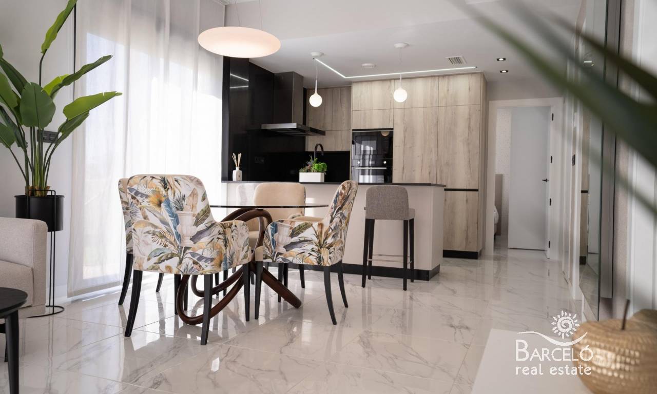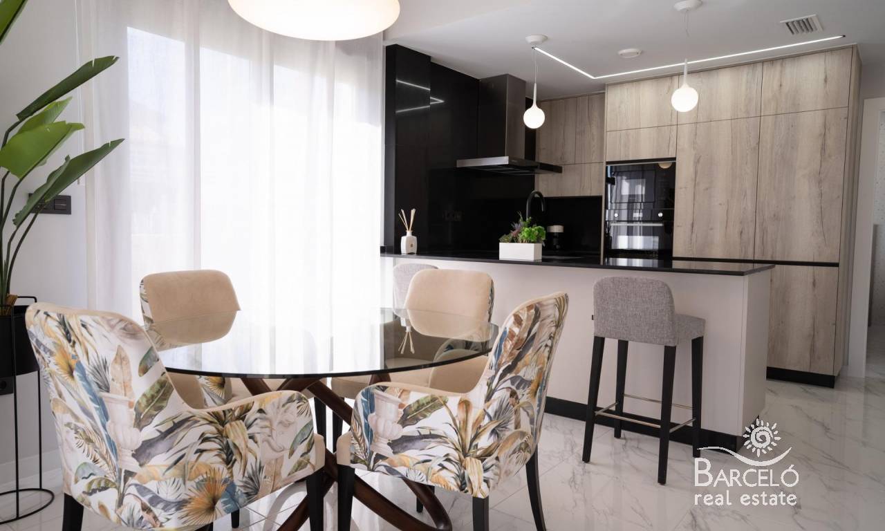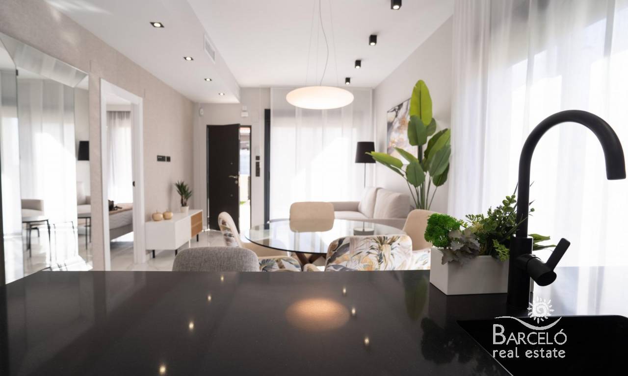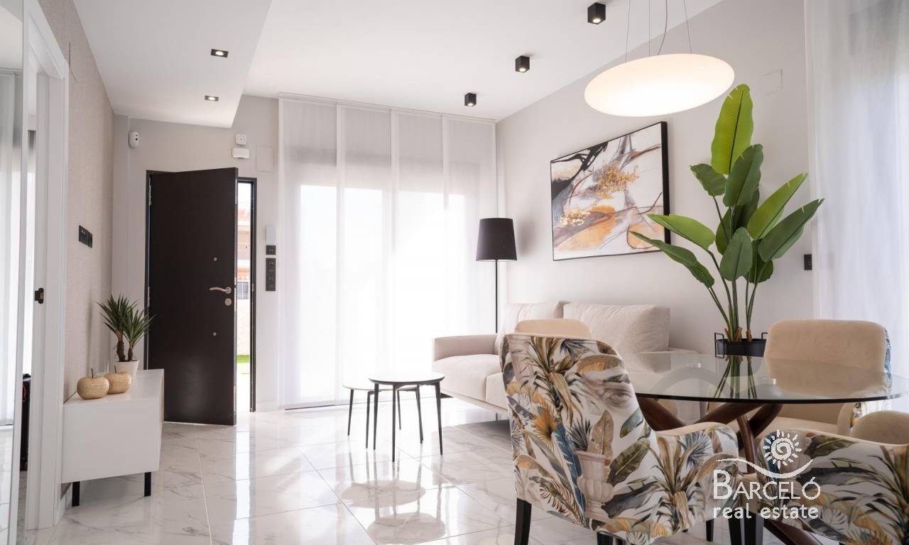 New build bungalows in Pilar de la Horadada Modern homes close to the beach Discover this exclusive new build residential complex in Pilar de la Horadada, offering bungalows just 2 km from the beach. Designed for comfort and style, these homes are an excellent opportunity to enjoy life on the Costa Blanca. Spacious and stylish homes This development offers 2 or 3 bedroom homes with 2 bathrooms and private parking. Choose from: Ground floor bungalows with private garden. Top floor bungalows with private solarium. Each property is built with high-quality materials and modern finishes, including: Ducted air conditioning pre-installation. Aluminum exterior carpentry, double glazing, and injected aluminum shutters. Security entrance door for added peace of mind. Aerothermal system for efficient hot water production. Built-in wardrobes in bedrooms. Fully equipped bathrooms with furniture and shower screens. Exclusive Community Features This private residential complex boasts a beautiful communal pool and landscaped gardens, creating an ideal space for relaxation. Located just outside the town center, residents can walk to supermarkets, restaurants, bars, schools, and other essential services. Prime Location in Pilar de la Horadada Pilar de la Horadada is a charming Spanish town in the southernmost part of the Costa Blanca. It offers a vibrant main street with numerous shops, supermarkets, restaurants, and picturesque squares. The stunning beaches of Torre de la Horadada and Mil Palmeras are only 5 minutes away, featuring fine golden sand a scenic promenade. The town also offers well-developed cycling paths and walking trails, along with a variety of sports activities. Convenient Access to Key Destinations Lo Romero Golf Course – 5 km (10-minute drive). Corvera Airport (Murcia) – 40 km (40-minute drive). Alicante Airport – 55 km (55-minute drive). Shopping Centers (La Zenia Boulevard) – 15 km (15-minute drive). Torre de la Horadada Marina – 3 km (5-minute drive). Secure Your Dream Home Today Don't miss this fantastic opportunity to own a brand-new home in a prime location. Contact us today for more information and to arrange a visit!