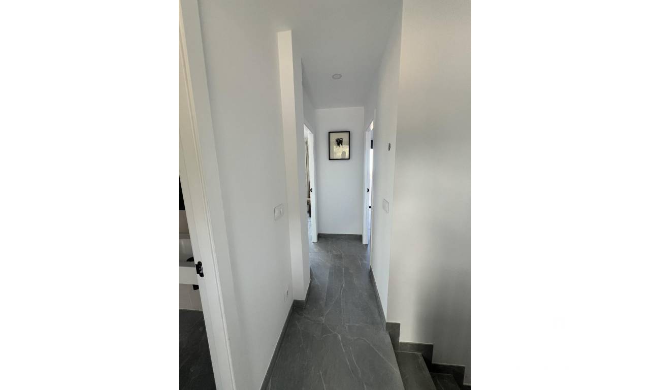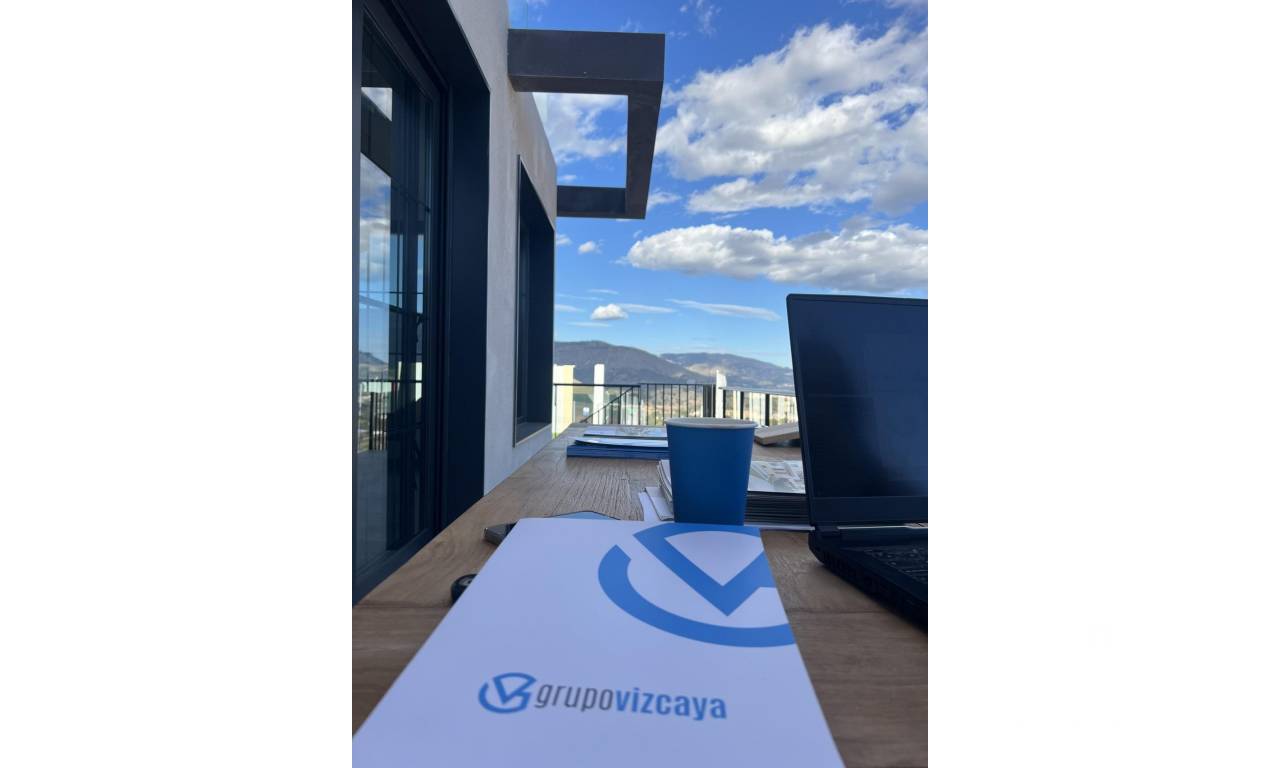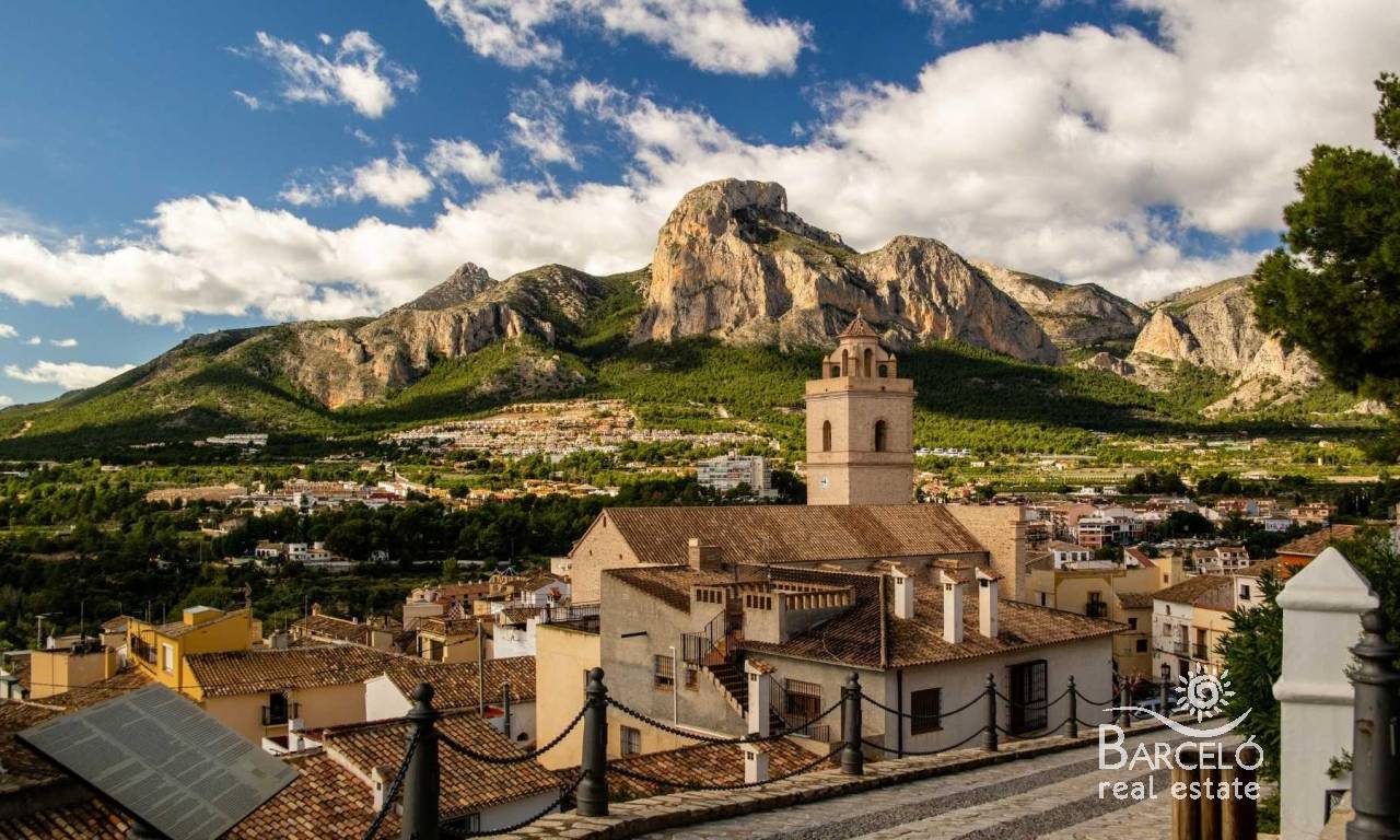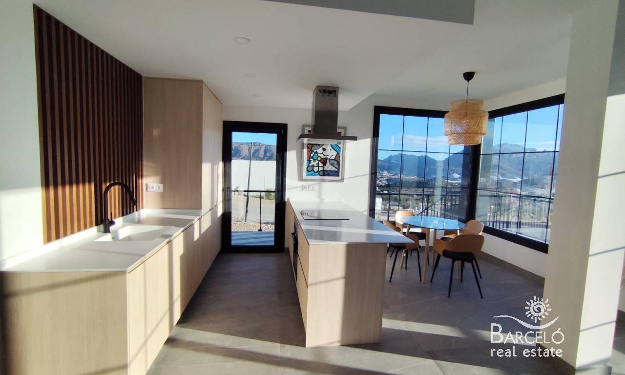 NEW BUILD SEMI-DETACHED VILLAS IN POLOP New Build modern semi-detached villas with several terraces and solarium, totally fenced, with parking area for vehicles and private swimming pool in Polop. Modern properties with 3 spacious bedrooms with built-in wardrobes (the main one on the ground floor, with bathroom and dressing room en suite), 2 spacious bathrooms, large living-dining room with open kitchen, spacious terraces. Kitchen equipped with base units and silestone worktops, with ceramic hob, oven, extractor hood, fridge, washing machine, dishwasher, and aerothermal heater. First qualities: interior carpentry in wood and white lacquered laminates, exterior carpentry in anthracite grey pvc with double glazing and thermal bridge break, and automatic blinds with aluminium slats, ceramic floors of 1st quality non-slip, smooth walls, security door with 5 anchor points, large built-in wardrobes. The city of Polop offers an amazing range of options for lovers of the great outdoors surrounded by nature and unparalleled peace. The municipality enjoys a Mediterranean climate with cooler temperatures and cleaner air, located less than 10 kilometres from Benidorm, Altea and their beaches. It stretches from the rivers Guadalest and Algar to the town of Villajoyosa, including the beaches of Albir and Benidorm; inland it borders Callosa and Guadalest.