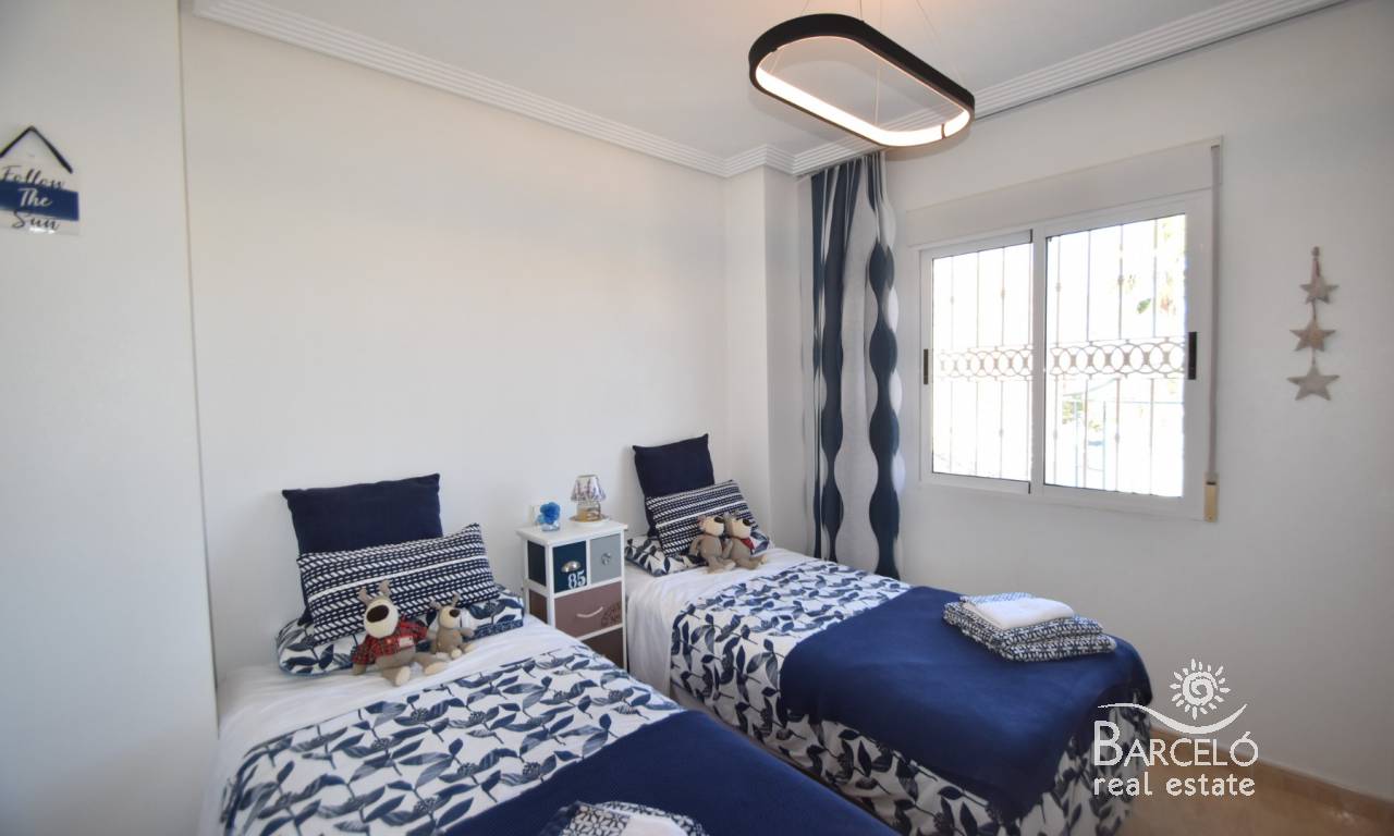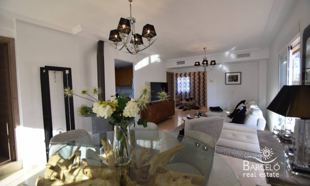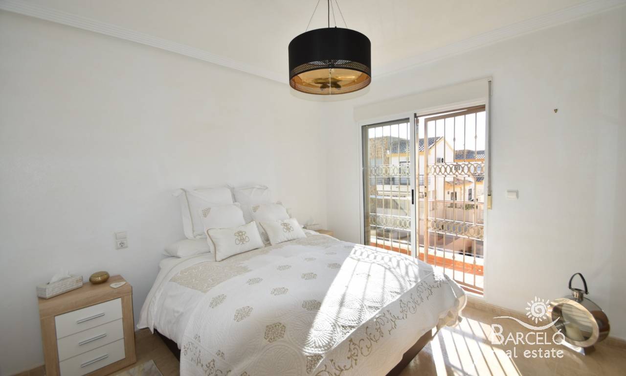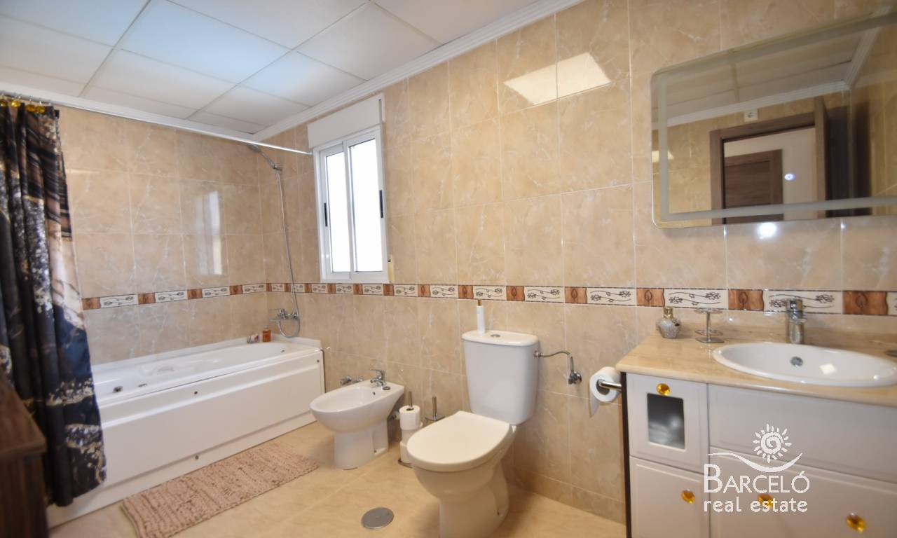 Upstairs on the first floor there is a master bedroom with a sunny terrace and an en suite bathroom. You also have two further double bedrooms and another family bathroom, and a very pretty cosy balcony with armchair. On the second floor is the solarium, which is large and has views to the countryside and salt lakes of La Mata.