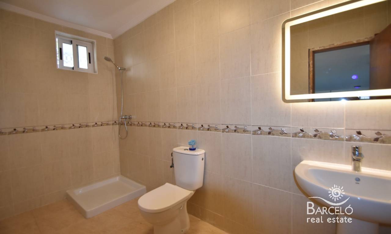 The main terrace of the villa has been glazed with retractable glass curtains, perfect for use in all seasons. From the terrace you enter into the living room, spacious and with a cosy fireplace and dining room, and another seperate seating area which could be converted to a fourth bedroom if required. There is a family bathroom on the ground level and also the fully fitted spacious kitchen, and another terrace perfect for outside dining.