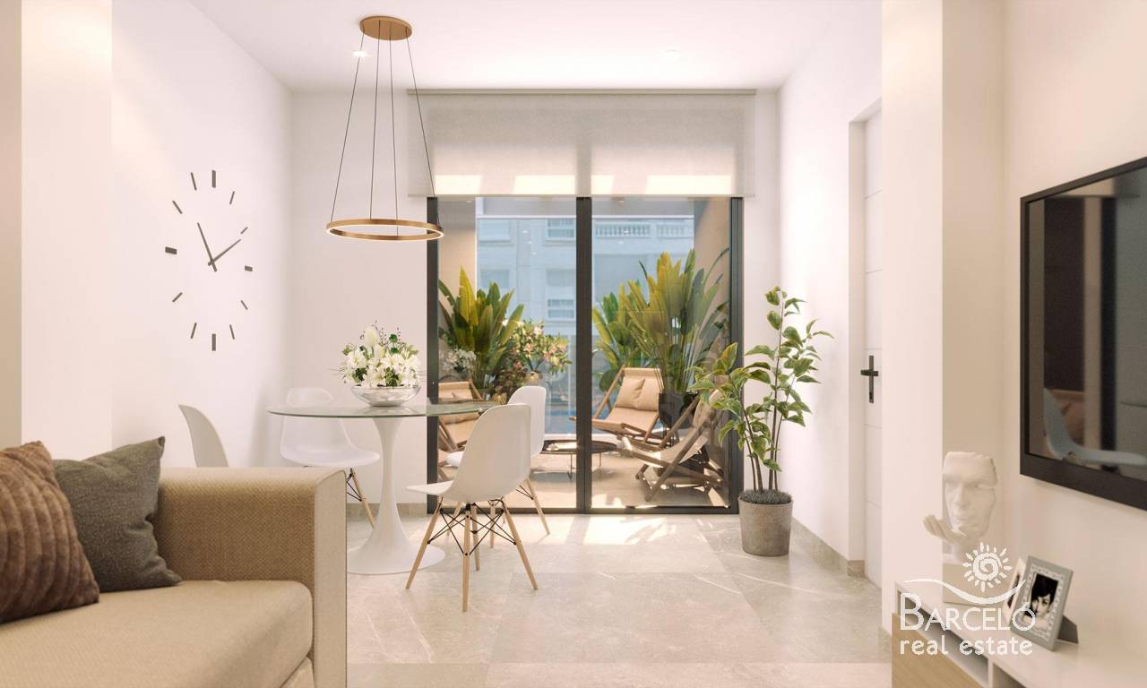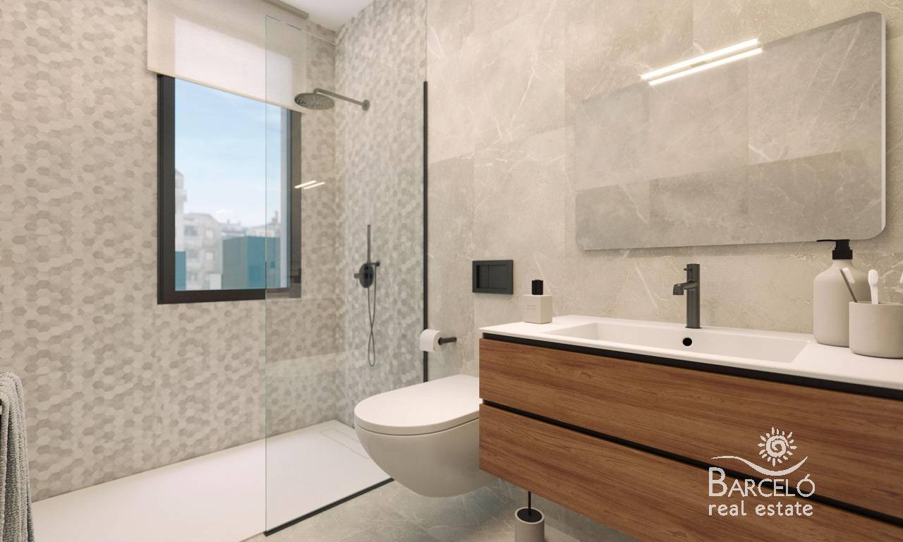 New Build Apartments 200 Metres from the Sea in Torrevieja Modern Homes in a Prime Location Discover this new development in the heart of Torrevieja, just 200 metres from Acequión Beach, one of the most popular beaches in the city. This residential building has 11 homes distributed in a quiet environment, ideal for those looking to live near the sea without giving up urban amenities. The location offers walking distance to the centre of Torrevieja, parks, restaurants, supermarkets and all the services you need for everyday life. Distances to key points: Acequión Beach: 0.2 km Torrevieja town centre: 0.7 km Marina Salinas marina: 1.5 km Torrevieja University Hospital: 5.5 km Villamartín golf course: 10 km Habaneras Shopping Centre: 3 km Alicante Airport: 45 km Different Types to Suit All Needs The building offers a selection of studios, 1 and 2 bedroom apartments, and penthouses with large private terraces. All homes have a storage room included on the ground floor and access to modern communal facilities that enhance the level of comfort and lifestyle. Communal Areas for Wellbeing and Enjoyment The roof terrace of the building has been designed as a premium communal area with: Swimming pool Solarium Sauna Barbecue area Perfect for enjoying the Mediterranean climate of Torrevieja all year round. High-end finishes in every home The homes have been built with top-quality materials and contemporary design: PVC exterior carpentry with Guardian Sun double glazing Motorised blinds with thermal insulation Security entrance door with lock Kitchen equipped with wall and base units and integrated appliances: ceramic hob, oven, microwave, extractor fan and dishwasher Hot water produced by aerothermal system Fully installed air conditioning LED lighting Lift in the building Live a stone's throw from the sea and the town centre Torrevieja is one of the most dynamic and growing coastal towns on the Costa Blanca, famous for its climate, beaches, salt flats and cultural life. This development is ideal as a permanent residence, investment or second home for holidays. Contact us today for more information or to arrange a viewing and secure your home by the sea in Torrevieja.
