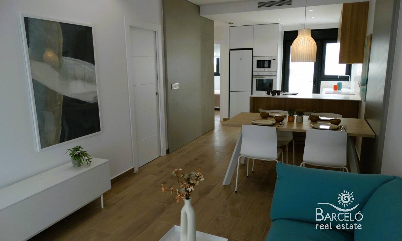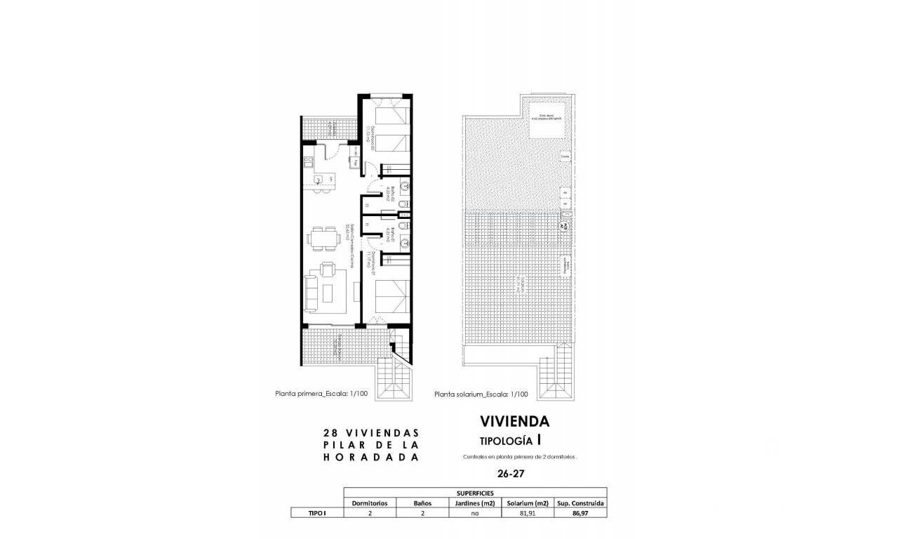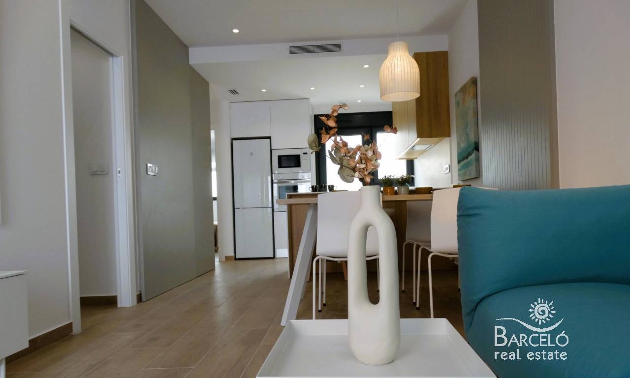 Newly Built Bungalows with Solarium or Garden in Pilar de la Horadada Modern Residential Development on the Southern Costa Blanca Located in the charming municipality of Pilar de la Horadada, this new residential development of bungalows offers a comfortable, Mediterranean lifestyle in one of the most attractive areas of the Costa Blanca. Pilar de la Horadada is known for its welcoming atmosphere, excellent climate and extensive sandy beaches such as Las Higuericas and Mil Palmeras, ideal for enjoying with the family or practising water sports. Layout and Types of Properties The complex consists of 28 modern bungalows available in 2 and 3 bedroom versions, distributed as follows: Ground floors with private garden Upper floors with private solarium and assigned storage room Many of the properties are south-facing, ensuring excellent natural light, and offer views of the communal pool or the adjacent park. Functional and well-equipped spaces Each property has been designed with spacious and functional spaces: Open-plan kitchen with large living-dining room Built-in wardrobes Private terrace in each unit Parking space included In addition, the properties feature: Hot water via aerothermal system Pre-installation of air conditioning PVC exterior carpentry with double glazing and aluminium shutters Bathroom furniture included Communal Areas and Natural Environment The residential complex includes a communal swimming pool surrounded by green areas, perfect for enjoying the sun and tranquillity. Just 4 km from Las Higuericas Beach, it can be easily reached on foot or by bike along the pleasant promenade that connects to the sea. Excellent location and connectivity The location of the residential complex allows access to all kinds of services and points of interest: Supermarkets, shops, bars and restaurants less than 1 km away Golf courses such as Lo Romero 6 km away Dos Mares shopping centre 11 km away Mil Palmeras and Torre de la Horadada beaches just 5 minutes away Murcia (Corvera) airport 40 km away Alicante Airport 65 km away Your New Life in the Sun This residential development in Pilar de la Horadada represents an excellent opportunity to enjoy Mediterranean living in a modern and well-located property. Contact us today for more information or to arrange a viewing and take the first step towards your new home on the Costa Blanca.