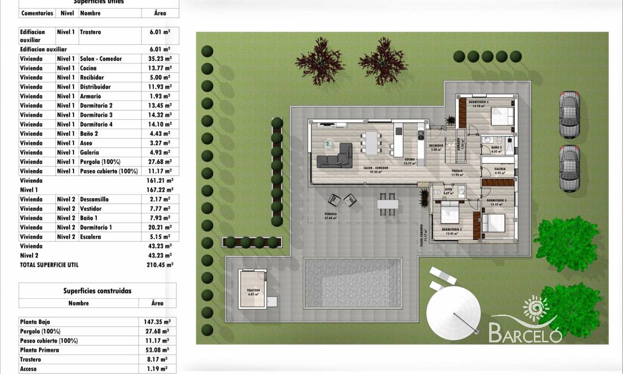 Newly built villas located in the municipality of Aspe. Newly built villas with several models to choose from, with 2, 3 or 4 bedrooms, on one or two floors and built with slabs or with a structure: depending on the model and the plot chosen, the exact price will be calculated. All the villas are built on rustic plots of over 10,000 m2, of which around 2,500 m2 will be fenced off. The villas have an open-plan kitchen with living room, built-in wardrobes, private swimming pool, porch, storage room and outdoor parking space. There are several plots to choose from. The price is based on a plot priced at £77,500 (if another plot is chosen, the difference will be paid or credited according to the price of the plot). Self-build project, delivery in approximately 12 months from the granting of the licence. If you are looking for a quiet environment, close to typical Spanish villages away from tourist crowds, surrounded by mountains, with a very large plot and about 30 minutes from the sea, this is your home. Aspe is a typical Spanish village with all the amenities for everyday life, surrounded by mountains and with several natural areas nearby where you can go hiking or mountain biking. Located 25 km from the beach, 9 km from Elche and about 20 km from Alicante airport.