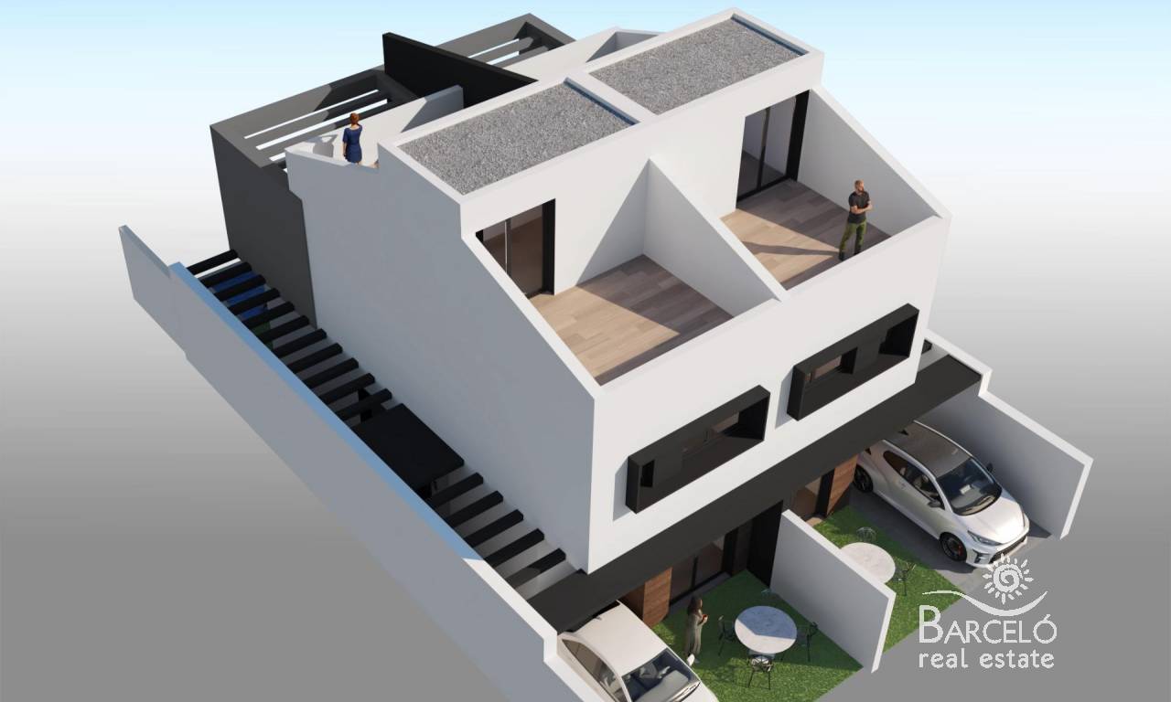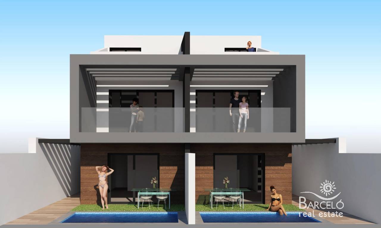 Modern Semi-Detached Villas with Private Pool Near the Sea in Santiago de la Ribera Exclusive New Construction Just 1 km from the Beach Discover this limited-edition development of only two semi-detached villas located in Santiago de la Ribera, a charming coastal town on the Murcian coast, known for its relaxed lifestyle, clean beaches, and excellent year-round climate. These new homes are situated just 1 km from the shores of the Mar Menor, offering the perfect combination of privacy, comfort, and proximity to essential services and leisure options. Contemporary Design with Functional Layout Each villa is thoughtfully distributed across two floors plus a rooftop solarium, providing ample space for modern living. The properties feature: 3 spacious bedrooms, including one on the ground floor 3 fully fitted bathrooms, two of which are en suite A private garden and swimming pool Terrace on the first floor and a rooftop solarium ideal for sunbathing or entertaining Private parking within the plot, with access from the rear street and a separate pedestrian entrance at the front This layout ensures optimal privacy and ease of access while maximizing outdoor living space. High-Quality Finishes and Features Built with attention to detail and modern standards, the homes include: Aluminium exterior carpentry with thermal break and double-glazed windows Complete ducted air conditioning installation Private pool included with each villa Secure parking space within the plot These homes are designed for year-round comfort, whether as a primary residence, a second home, or a vacation rental investment. Prime Location on the Costa Cálida Santiago de la Ribera offers a vibrant Mediterranean lifestyle with everything close at hand: Beach (Mar Menor) – 1 km La Ribera Shopping Center – 2 km Roda Golf – 5 km San Javier Airport – 6 km Lo Pagán Marina – 4 km Dos Mares Shopping Mall – 3 km Excellent road access to Murcia (40 km) and Cartagena (30 km) With its rich local culture, weekly markets, seafront promenades, and watersport options, Santiago de la Ribera is an ideal setting for enjoying the best of the Costa Cálida. Make Coastal Living Your Reality Don’t miss this rare opportunity to own a stylish, new-build villa in one of the most desirable areas of Murcia’s coastline. Contact us now for more information or to schedule a visit.