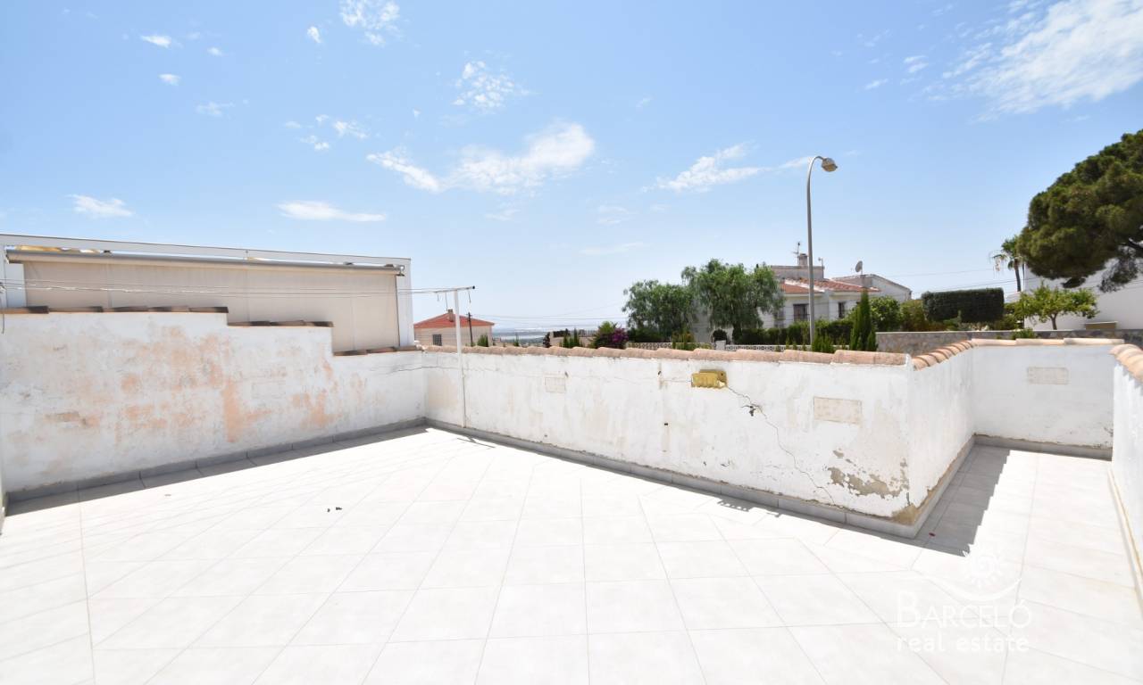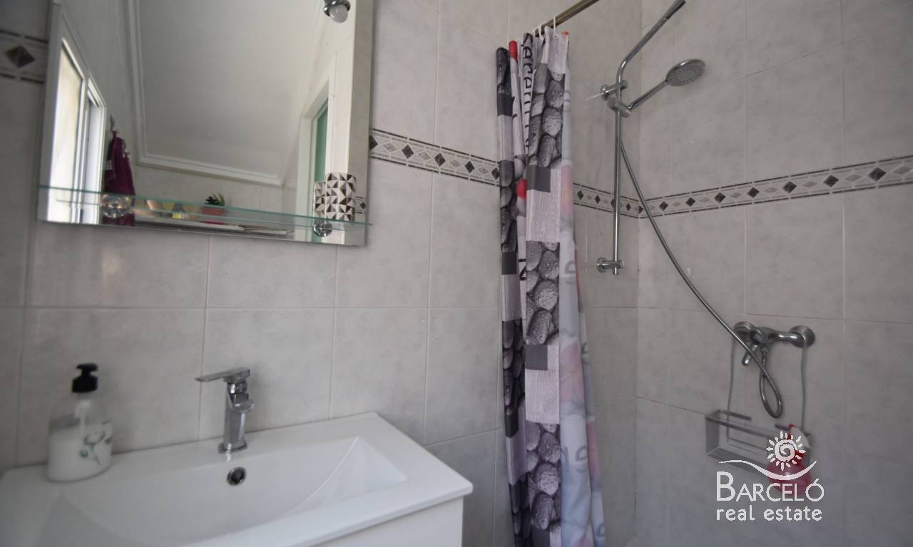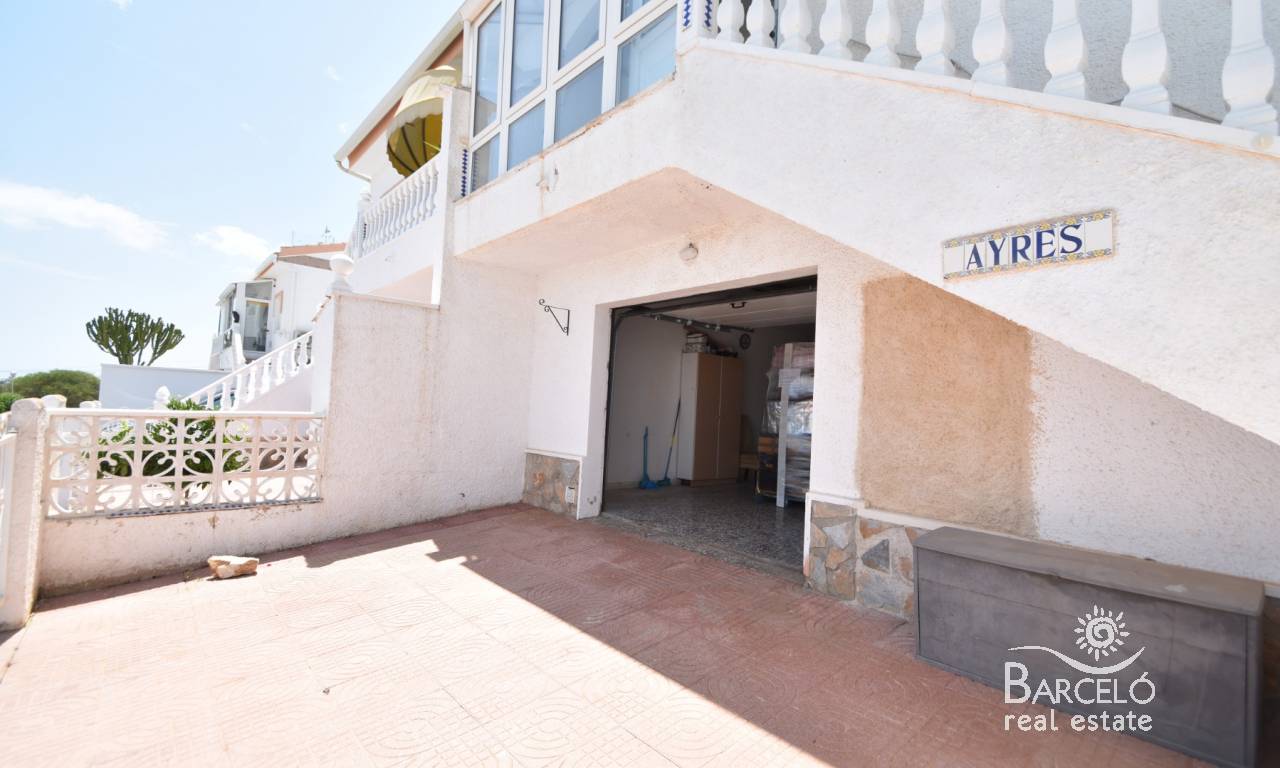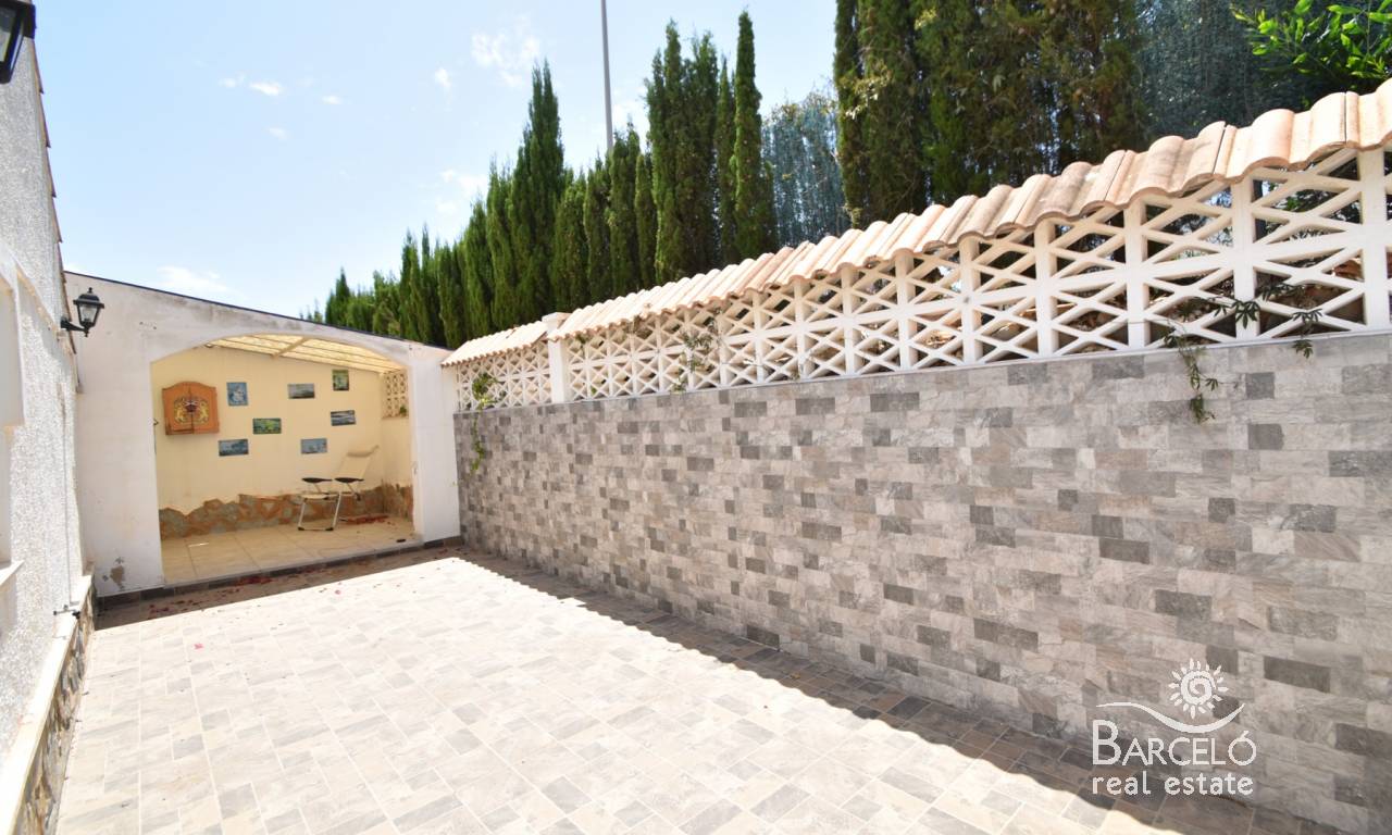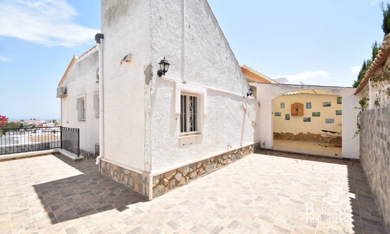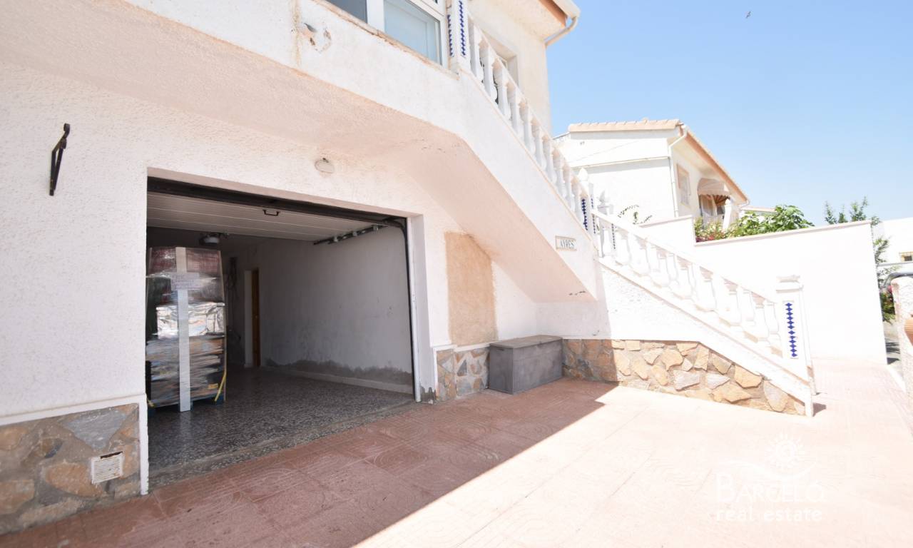To the rear of the villa accessed from the kitchen you have a rear terrace area which is covered for use all year round, and a newly tiled patio – perfect for summer BBQs! The patio continues to the side of the property, and down stairs you have another small patio and access to the parking area. From the rear patio you access the solarium, which is a great size, and has amazing views all around to the salt lakes, the sea and the mountains. On the ground floor under the house you have the garage, and also a seperate room which the current owners have started to renovate to make into a guest annex.