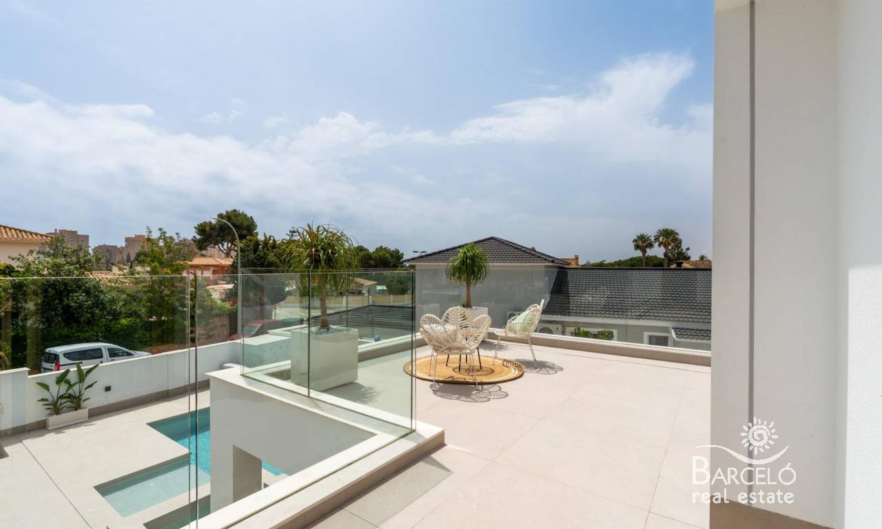 Located in one of the quietest and most private areas of Campoamor, this spectacular villa combines luxury, comfort and an exceptional location just 800 metres from the beaches of Cala de Campoamor and Playa de los Diez Picos. This villa offers exclusive access to a sports area for owners, which includes paddle tennis courts, tennis courts, football pitches, basketball courts and several swimming pools. The natural environment surrounding the property includes protected areas such as the Sierra Escalona and the salt flats of San Pedro del Pinatar and Torrevieja, ideal for lovers of nature and biodiversity.