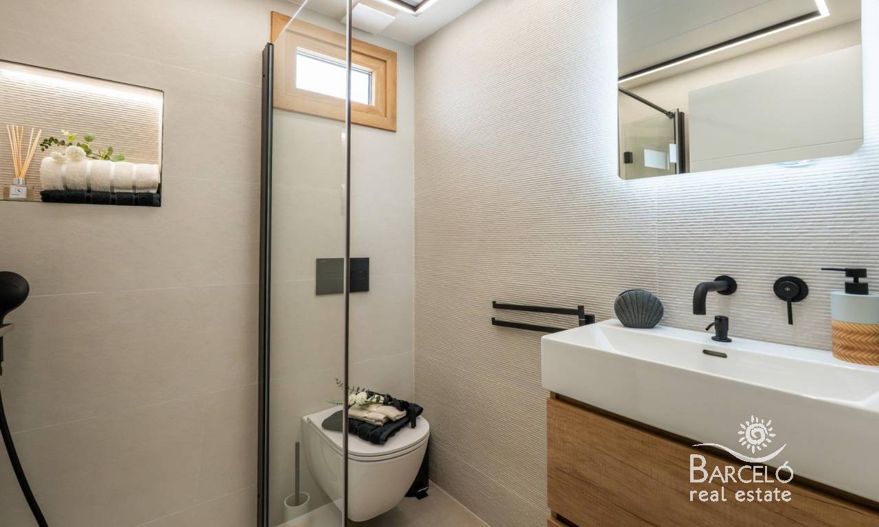 The master bedroom has a dressing room and en-suite bathroom. All bathrooms feature an exclusive design with modern finishes and electric towel rails (except the outdoor bathroom). LED lighting is carefully distributed throughout the property to provide warmth and style.
