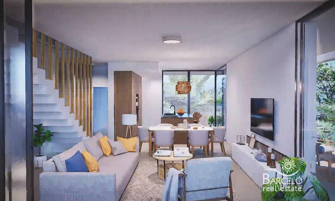 The apartments have a modern design, presenting an open plan living area, combining the kitchen, dining area and lounge, into a large space with access to the terrace.