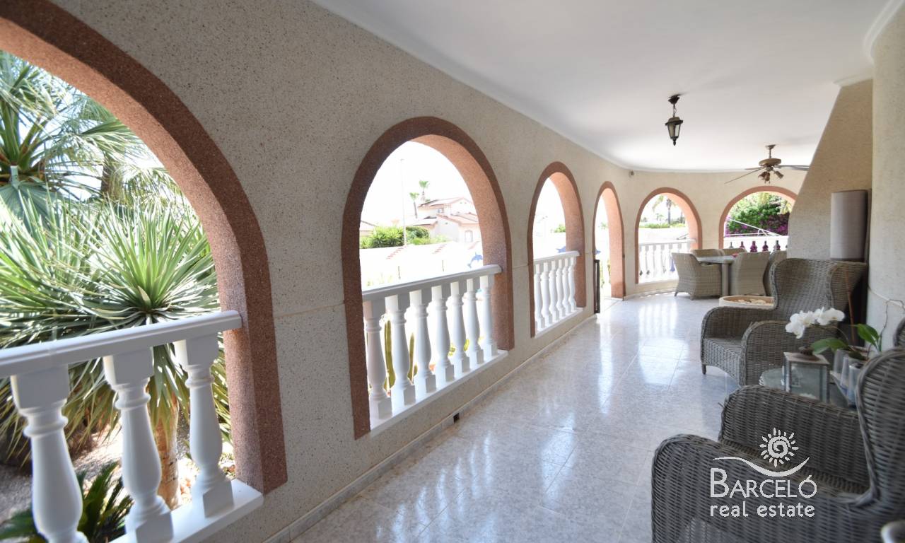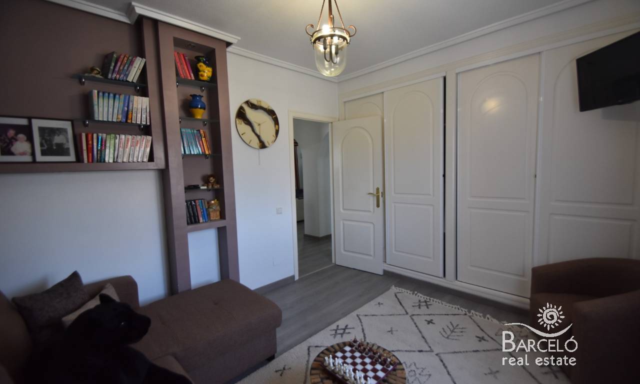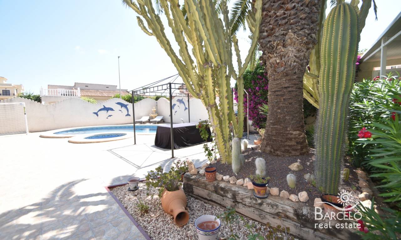 Ths property sits on a generous south facing corner plot of 700m2, and is positioned within the plot to maximise useable space outside. The garden is well maintained, with beautiful palm trees, fruit trees and much more, making it the perfect oasis to enjoy. The garden is private, and you have your own private swimming pool with jacuzzi area, covered carport as well as a closed garage with plenty of storage space. There is a lovely curved terrace with plenty of space for seating and dining and views to your swimming pool and garden.