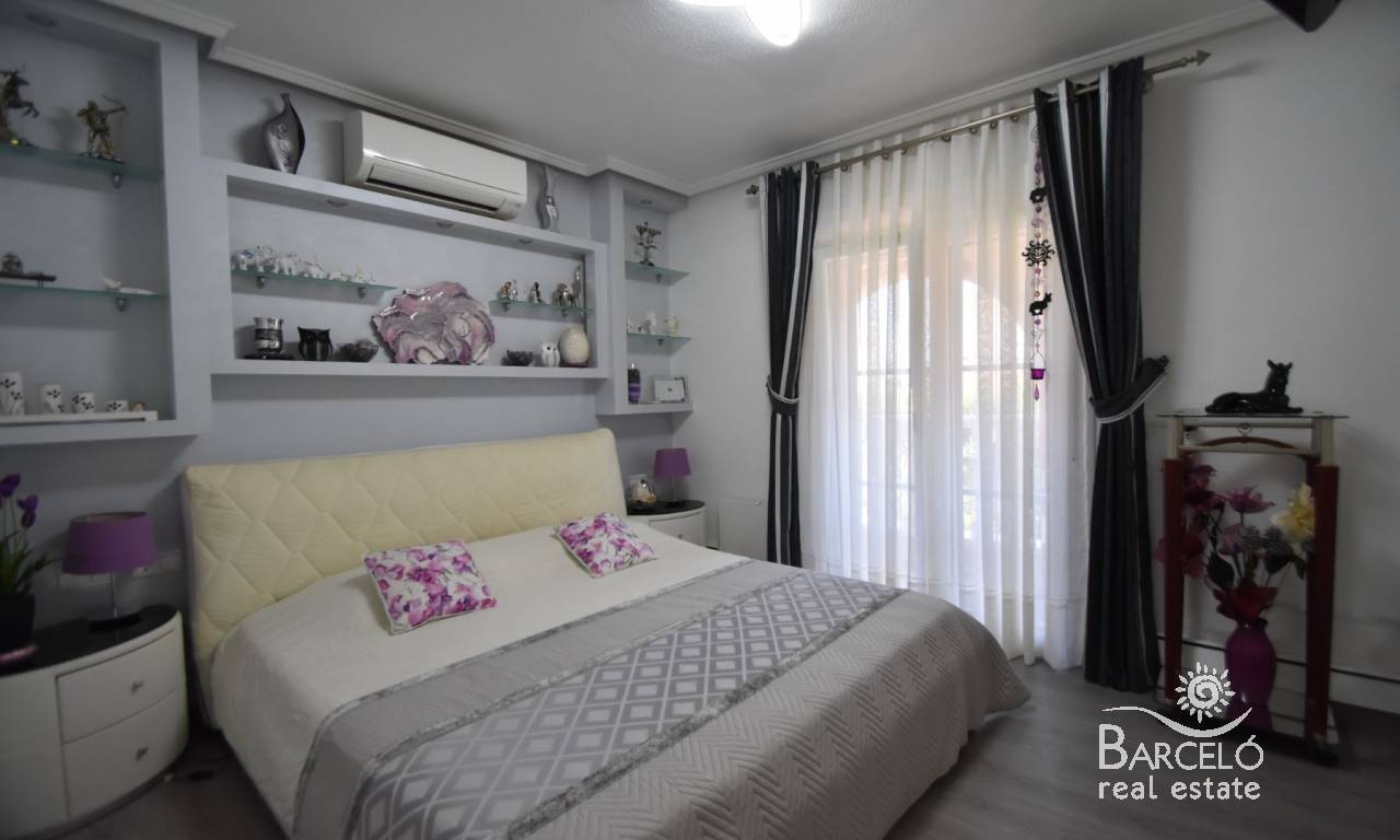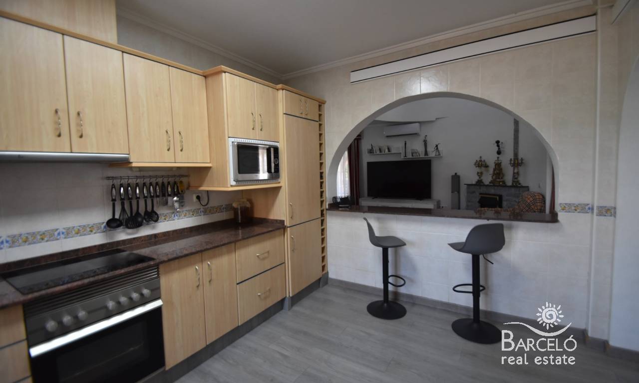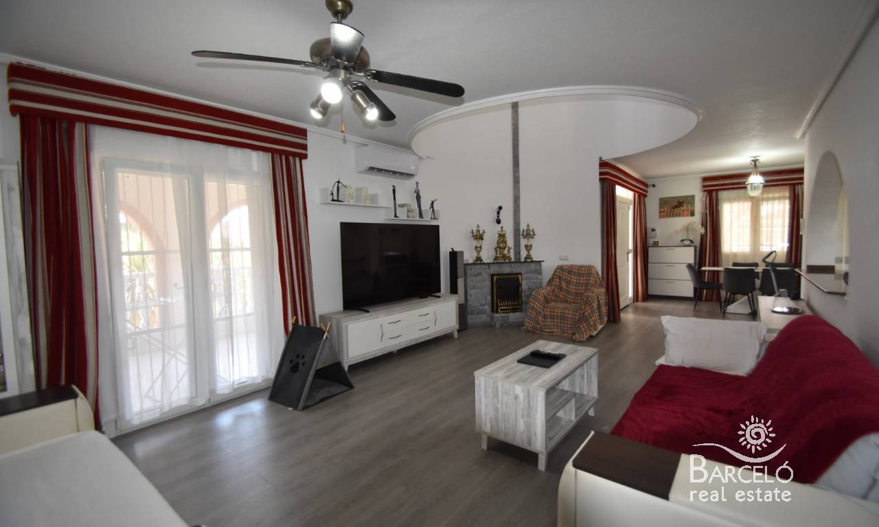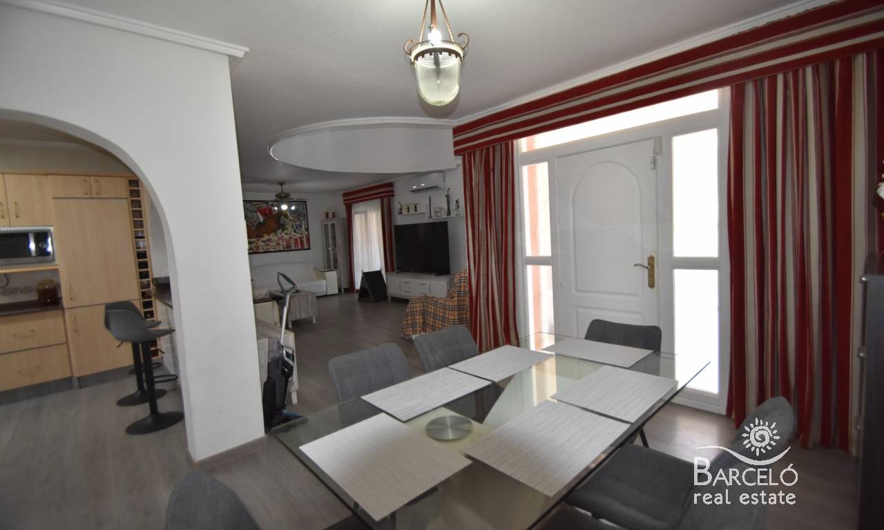 Ths property sits on a generous south facing corner plot of 700m2, and is positioned within the plot to maximise useable space outside. The garden is well maintained, with beautiful palm trees, fruit trees and much more, making it the perfect oasis to enjoy. The garden is private, and you have your own private swimming pool with jacuzzi area, covered carport as well as a closed garage with plenty of storage space. There is a lovely curved terrace with plenty of space for seating and dining and views to your swimming pool and garden.