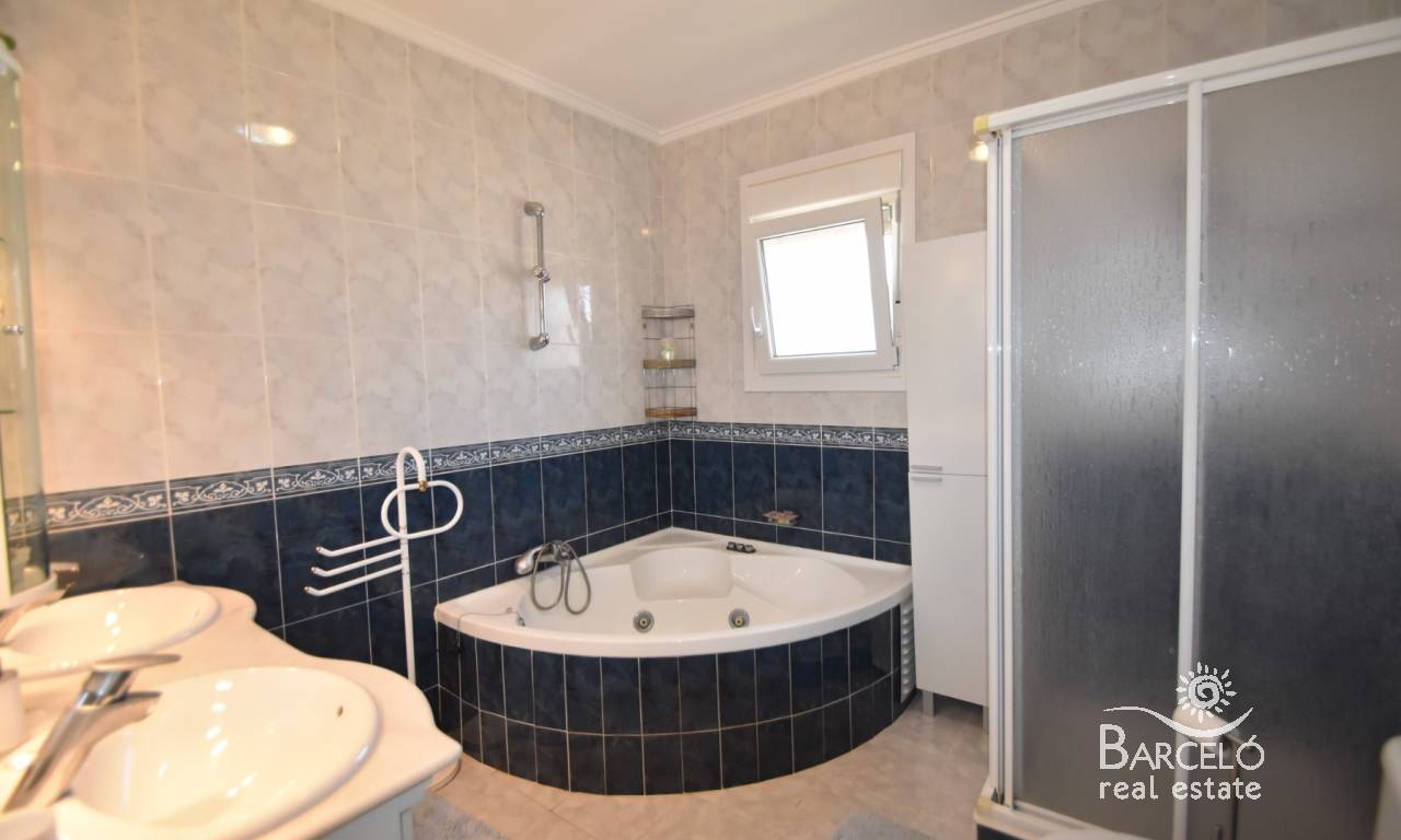 The villa is split into two sections, a main house and a guest annex. The main house is built all on one level and has a very spacious living room with a skylight, dining room, an open plan kitchen with a breakfast bar and a utility room which also gives access to the garage. There is a master bedroom suite with ensuite bathroom which has both a shower and a corner bathrub, two further double bedrooms, a family bathroom and also a guest WC.