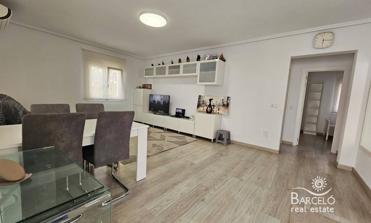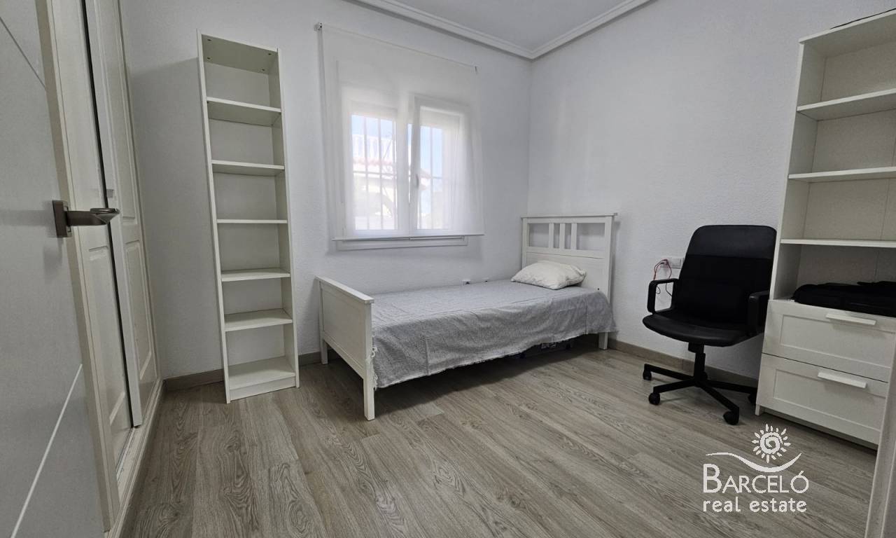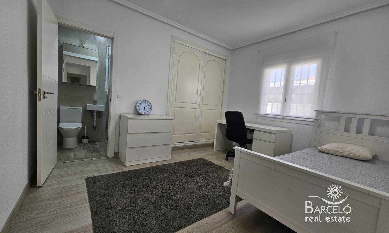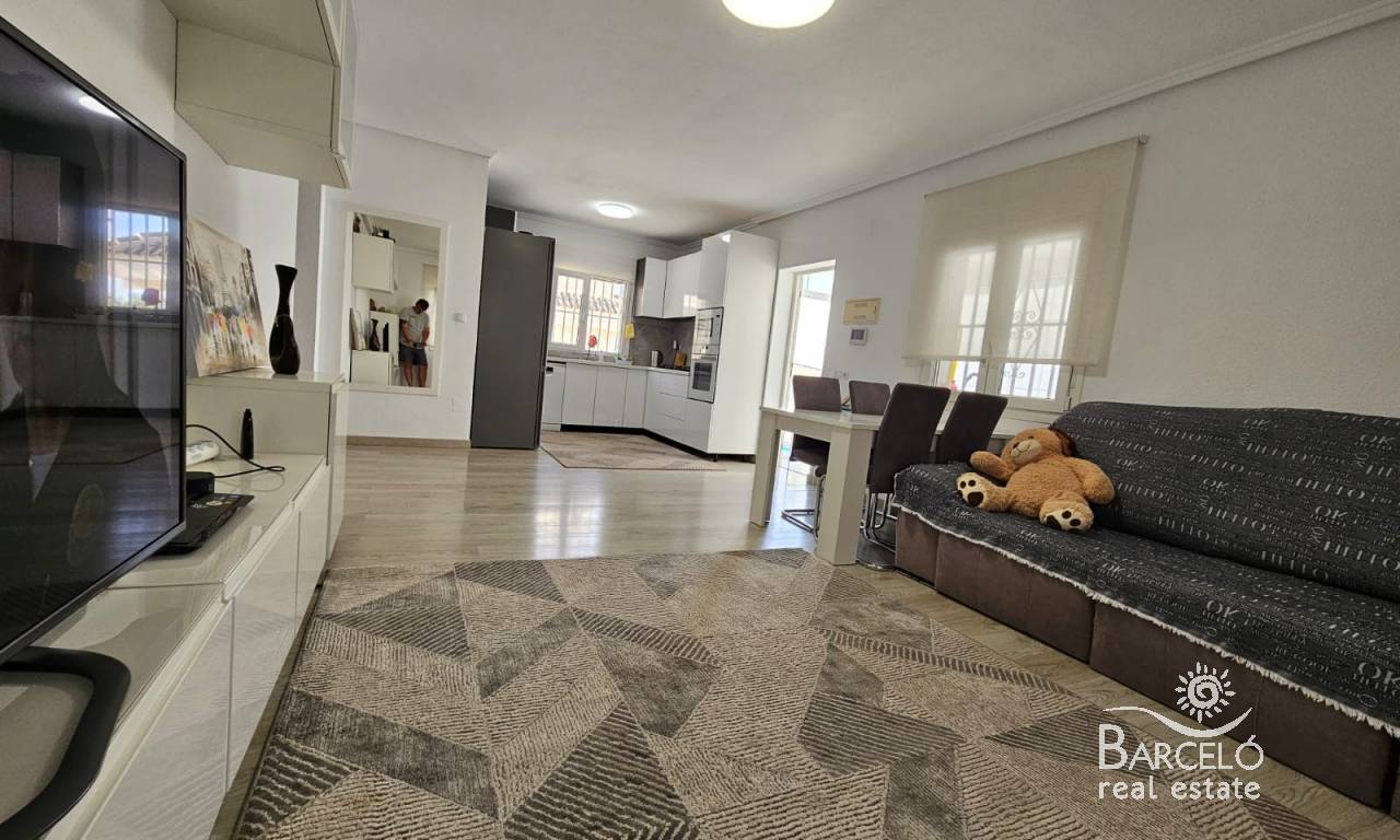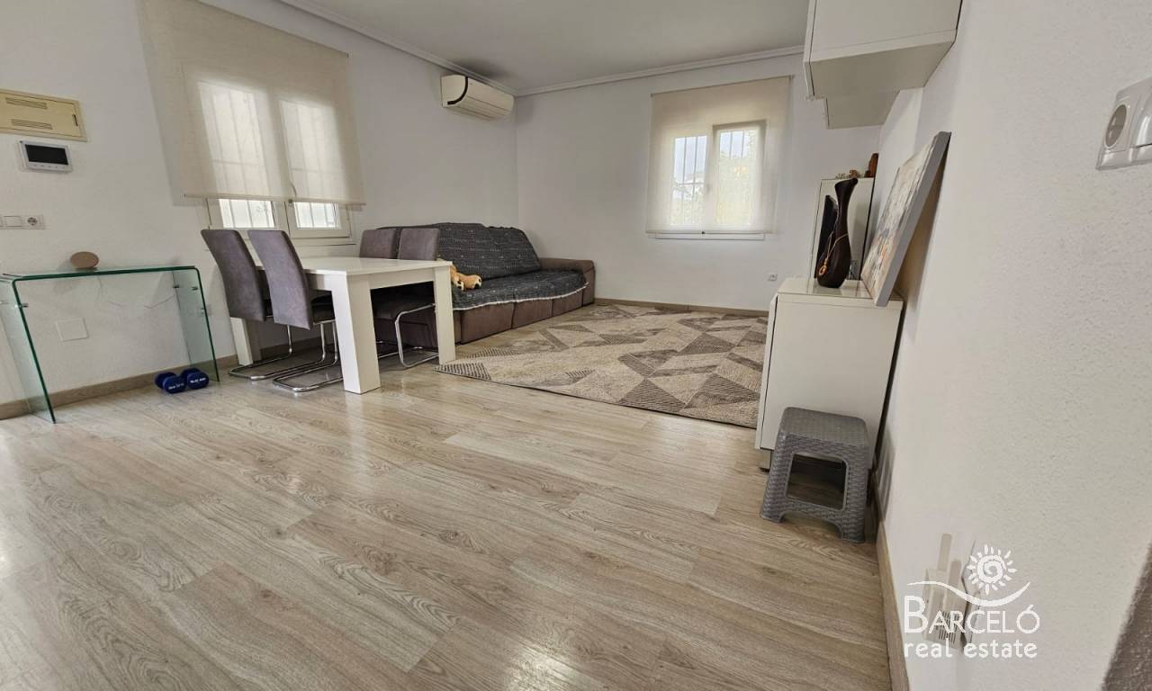 The house is built on a plot of 500m2, and consists of two seperate living spaces. Outside you have a private swimming pool, off road parking with a carport, plenty of space for sunbathing and entertaining, various storage areas and more. There is also a nice solarium with views to the park areas.