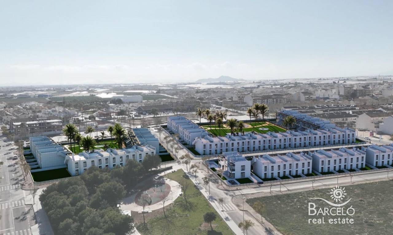 Newly built bungalows in Pilar de la Horadada Modern homes near the beach Discover this exclusive new residential complex in Pilar de la Horadada, offering bungalows and semi-detached houses less than 2 km from the beach. Designed for comfort and style, these homes are an excellent opportunity to enjoy life on the Costa Blanca. Spacious and stylish homes This development offers 2- and 3-bedroom homes with 2 bathrooms and private parking. Choose from: Ground floor bungalows with private gardens. First floor bungalows with private solariums. Semi-detached houses with basements and large plots. Each property is built with high-quality materials and modern finishes, including: Ducted air conditioning. Aluminium exterior carpentry, double glazing and injected aluminium shutters. Security entrance door for added peace of mind. Aerothermal system for efficient hot water production. Fitted wardrobes in bedrooms. Fully equipped bathrooms with furniture and shower screens. Exclusive community features This private residential complex has a beautiful communal swimming pool and landscaped gardens, creating an ideal space for relaxation. Located on the outskirts of the town centre, residents can walk to supermarkets, restaurants, bars, schools and other essential amenities. Prime location in Pilar de la Horadada Pilar de la Horadada is a charming Spanish town in the southernmost part of the Costa Blanca. It offers a vibrant main street with numerous shops, supermarkets, restaurants and picturesque squares. The stunning beaches of Torre de la Horadada and Mil Palmeras are just 5 minutes away, with fine golden sand and a picturesque promenade. The town also offers well-developed cycle paths and hiking trails, as well as a wide range of sporting activities. Convenient access to key destinations Lo Romero golf course - 5 km (10 minutes by car). Corvera Airport (Murcia) - 40 km (40 minutes by car). Alicante Airport - 55 km (55 minutes by car). Shopping centres (La Zenia Boulevard) - 15 km (15 minutes by car). Torre de la Horadada Marina - 3 km (5 minutes by car). Secure your dream home today Don't miss this fantastic opportunity to own a brand new home in a prime location. Contact us today for more information and to arrange a viewing.