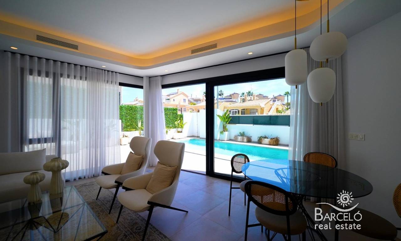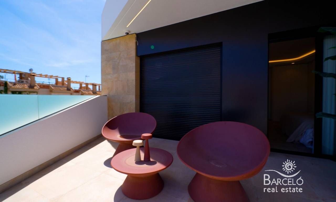 New Build Luxury Villas in Orihuela Costa – Less Than 4 km from the Beach Experience premium coastal living in this exclusive new development of 10 independent villas located in Los Altos, one of the most sought-after areas of Orihuela Costa, Alicante. Designed with comfort, style, and functionality in mind, these luxury villas offer the perfect blend of modern architecture and Mediterranean lifestyle, just minutes from the sea and essential services. Spacious Villas with Private Pools and Solariums Each villa is distributed across two floors plus a rooftop solarium and includes: 3 bedrooms, including 2 with ensuite bathrooms 3 fully equipped bathrooms Open-plan kitchen connected to the living room Large windows providing natural light and direct access to the terrace Private garden with a semi-covered terrace and swimming pool On-site private parking These homes are ideal for families, retirees, or investors seeking a high-quality residence near the beach on the Costa Blanca. Premium Finishes and Energy-Efficient Systems Built to high specifications, each villa features: Porcelanosa tiles throughout the property Aerothermal water heating system for energy efficiency Modern bathrooms with furniture and shower screens Motorized blinds in all bedrooms Spacious rooftop solarium perfect for sunbathing or relaxing outdoors All materials and finishes are carefully selected to offer a refined, durable, and eco-conscious home. Prime Location in Los Altos, Orihuela Costa Located less than 4 km from the beaches of Punta Prima and Playa Flamenca, this residential complex offers easy access to the best of Orihuela Costa. The area is known for its excellent infrastructure and services, including: Zenia Boulevard shopping center – 3 km Villamartín Golf – 5 km Las Ramblas Golf – 7 km Alicante Airport – 55 km Murcia-Corvera Airport – 60 km Torrevieja Marina – 6 km Los Altos is a peaceful yet vibrant neighborhood with supermarkets, schools, medical centers, and restaurants, making it an ideal location for year-round living or holidays. Your Luxury Villa Awaits on the Costa Blanca Don't miss the opportunity to own a stunning new villa in one of the most desirable coastal locations in Alicante. Contact us today for more information or to book a viewing.