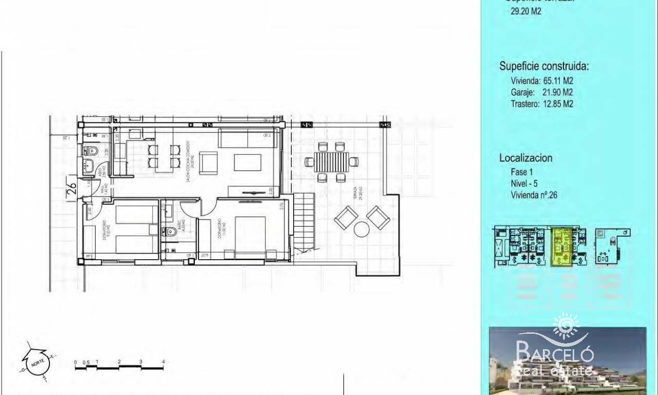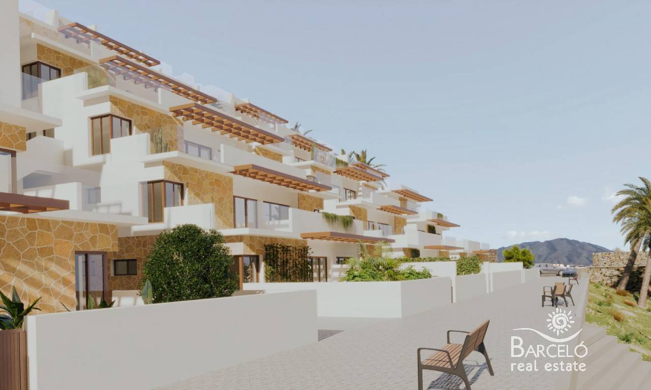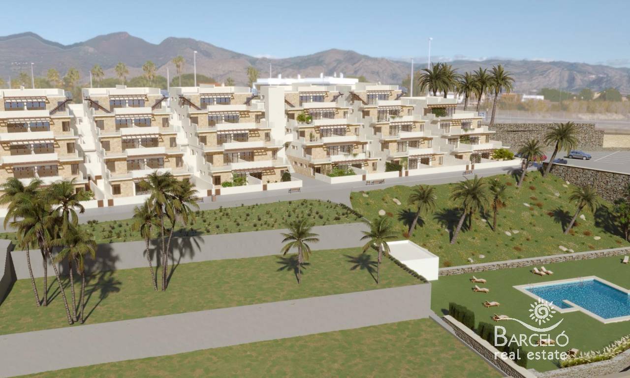 New Build Apartments with Sea Views in Vera Playa, Almería Discover this exceptional new residential development in Vera Playa, offering 27 modern apartments in its first phase. Designed to combine comfort, functionality, and spectacular Mediterranean views, this project is ideal for those seeking a home on the Costa de Almería with style and convenience. Modern Homes with Sea Views Each apartment has been thoughtfully designed to maximize natural light and outdoor living. Options include 1, 2, and 3-bedroom layouts, with ground floors featuring private gardens, middle floors with spacious terraces, and penthouses with private solariums. Thanks to the terraced design, all homes enjoy uncovered terraces with stunning views of the sea. Quality Finishes and Fully Equipped Homes Every property comes fully furnished and equipped, ready to move in. Features include: Furnished kitchen with appliances included Complete bathrooms with modern fittings Ducted air conditioning system Private parking space and storage room Exclusive Community Facilities The highlight of this residential complex is its communal swimming pool, surrounded by landscaped gardens, creating the perfect space to relax, sunbathe, and enjoy family time. Prime Location in Vera Playa Vera Playa is renowned for its long sandy beaches, relaxed lifestyle, and excellent amenities. The development is set in a quiet yet well-connected area with easy access to services and transport links. Key distances include: Beach: 700 m Desert Springs Golf Resort: 8 km Vera town centre: 5 km Garrucha marina and restaurants: 6 km Mojácar Commercial Park: 10 km Almería Airport: 85 km (approx. 1 hour) High-speed AVE train station (under construction): 3 km An Ideal Home or Investment Opportunity Whether you are looking for a permanent residence, a holiday retreat, or a secure investment, these new build apartments in Vera Playa offer excellent value in one of Almería’s most desirable coastal destinations. Make Vera Playa your new home and experience the perfect combination of modern living, sea views, and Mediterranean lifestyle. Contact us today to schedule a visit and secure your dream property on the Costa de Almería.