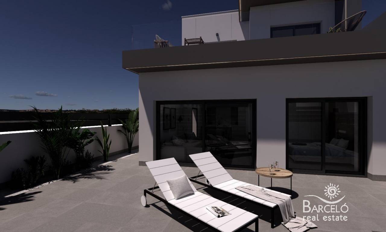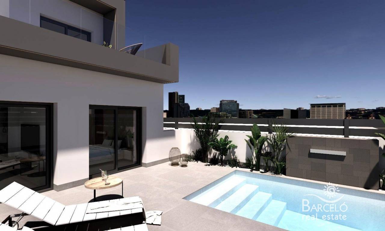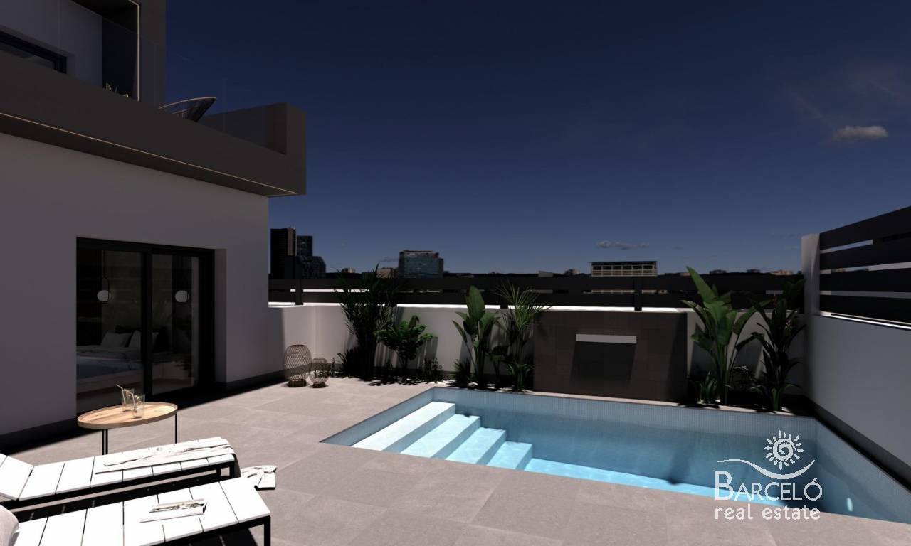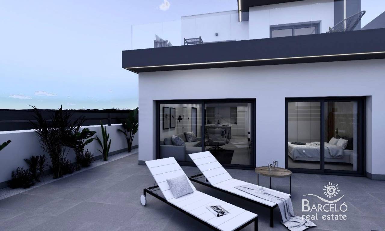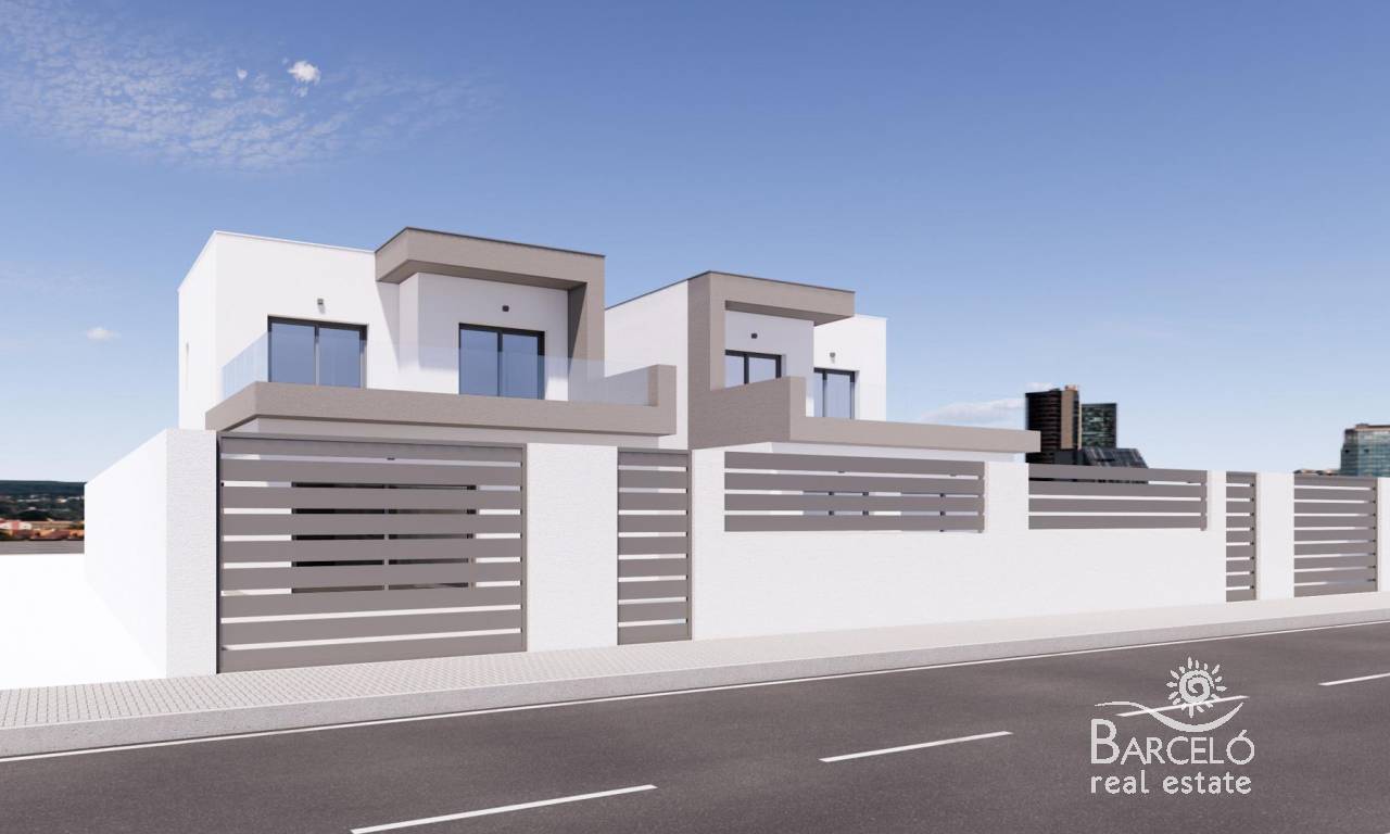 Luxury New Build Semi-Detached Villas in Benijófar – Costa Blanca Living Privileged Location in Benijófar These exclusive new build semi-detached villas are located in the charming town of Benijófar, one of the most sought-after areas on the Costa Blanca. Known for its mix of tradition and modern lifestyle, Benijófar offers all essential services including supermarkets, pharmacies, banks, restaurants, and local shops. The development is strategically positioned just 10 km from the golden beaches of Guardamar del Segura and only 30 km from Alicante Airport, making it an ideal location for both permanent living and holiday stays. Spacious and Modern Design Each villa has been designed with a contemporary style, maximizing space and natural light. The distribution includes three bedrooms (one on the ground floor and two on the first floor) and three bathrooms (including one in the basement), making them perfect for families and guests. The open-plan living room with dining area flows seamlessly into the fully fitted kitchen, creating a warm and functional environment. Large windows enhance brightness throughout the home. Premium Features and Extras These villas stand out for their high-quality finishes and thoughtful details: 66 m2 basement with bathroom, gallery and laundry area Private pool, solarium with barbecue and sink Decorative fireplace in the living room Private parking within the plot Elevator from basement to top floor 3 photovoltaic solar panels and LED lighting throughout Pre-installed air conditioning Fully fitted bathrooms with furniture and shower screens Plot sizes from 200 m2 Lifestyle and Surroundings Benijófar combines the charm of a traditional Spanish village with the convenience of modern services. Nature lovers will enjoy the nearby natural park, perfect for walking and cycling. For golf enthusiasts, La Marquesa Golf is just 5 km away, while several other top courses are within a 15 km radius. Families can visit the waterparks in Rojales (4 km) and Torrevieja (12 km), or explore the vibrant city of Torrevieja itself, only 12 km away. Excellent Connectivity The villas benefit from easy access to the N-332 and AP-7 motorways, ensuring quick connections to Alicante, Elche, Orihuela Costa, and Murcia. The area offers the perfect balance of tranquility, amenities, and accessibility. Your Dream Home in Costa Blanca Experience luxury, comfort, and Mediterranean living in these stunning new build villas in Benijófar. Contact us today for more details and to arrange a viewing of your future home.