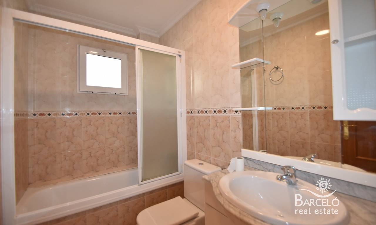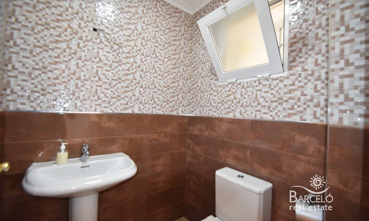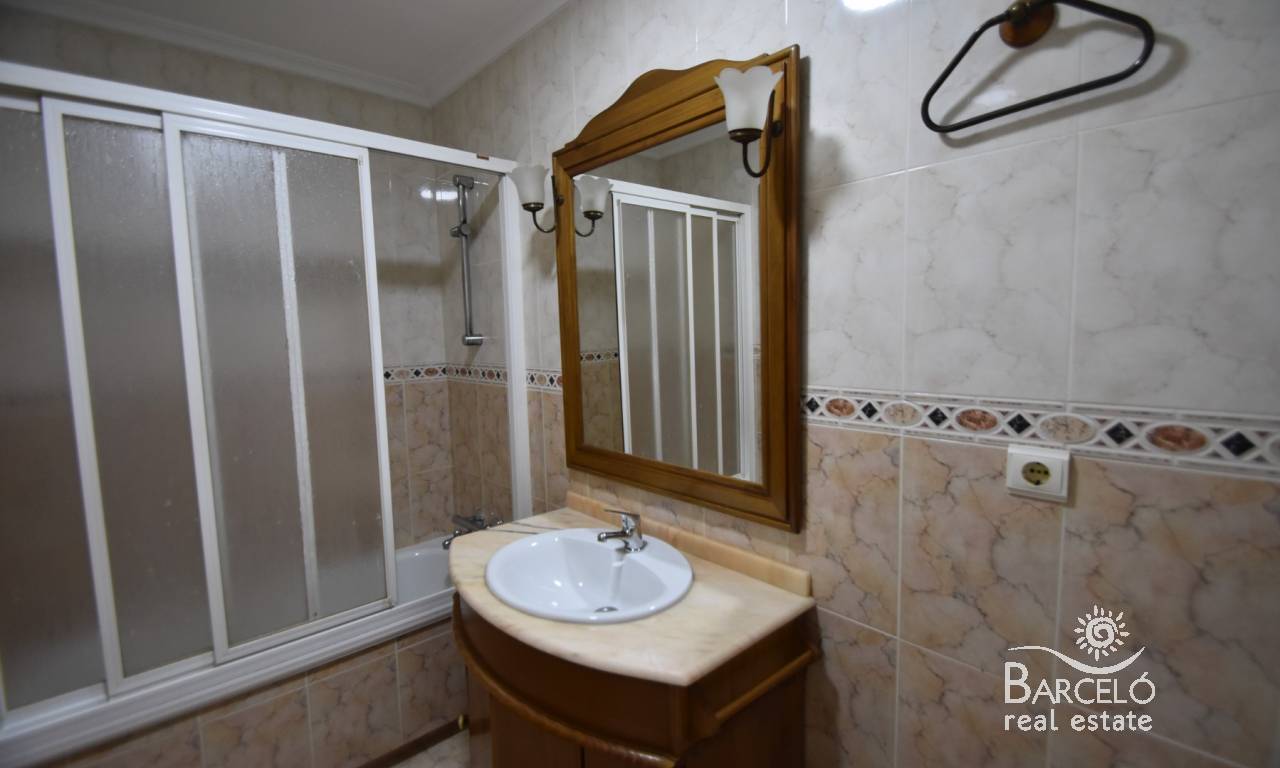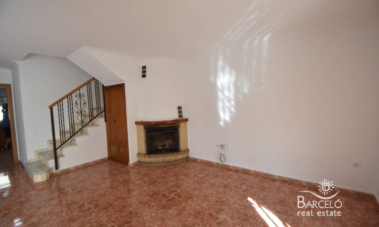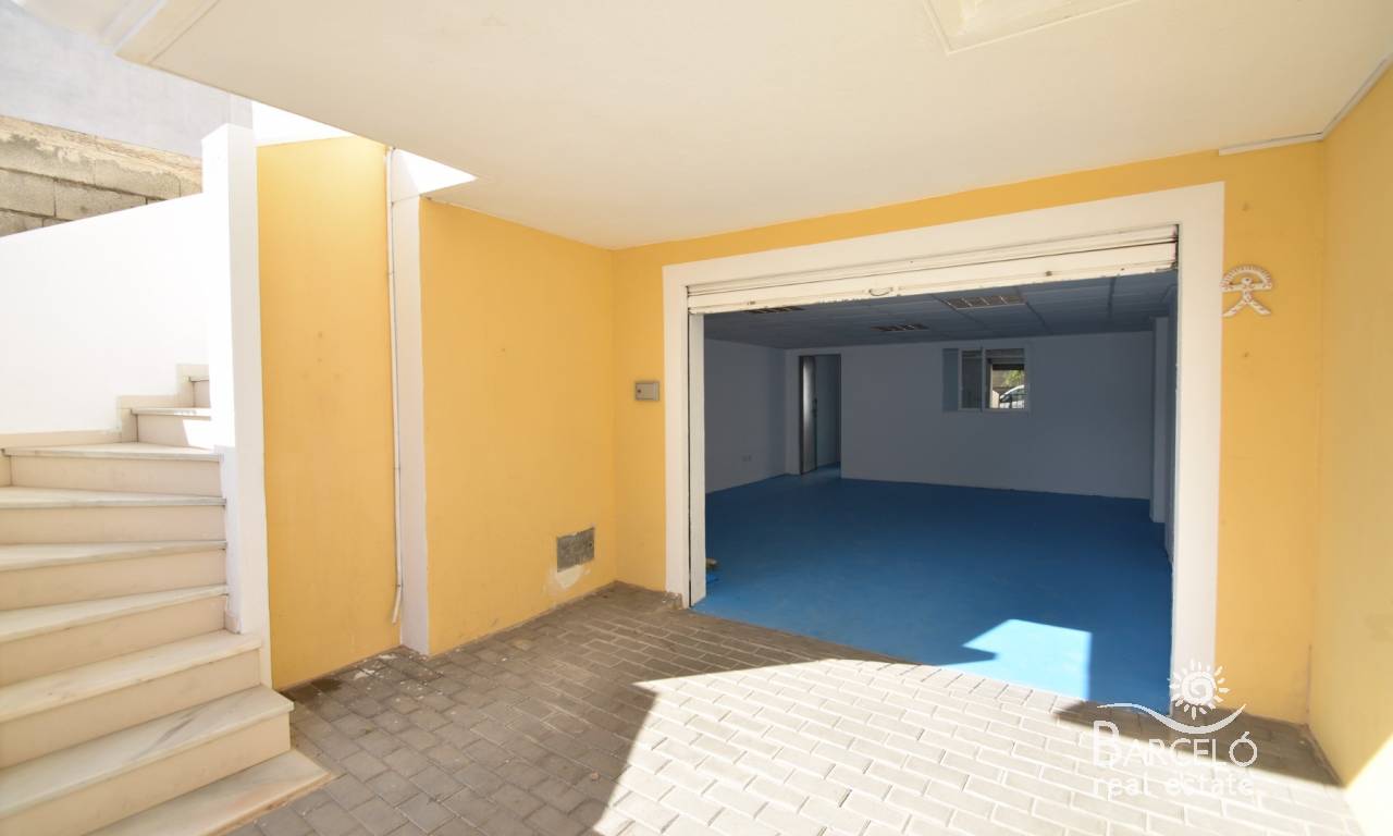 The property is in the centre of town, in a quiet street and within walking distance to everything needed for day to day living. It is built over 3 levels, the semi basement level is a large 2 car garage, with a seperate room behind and a courtyard with a storage room. On the ground floor of the property you enter into a spacious living room, with a cosy fireplace and air conditioning and a balcony. Here on this level you have also got a very spacious kitchen with a pantry and a utility room, and a downstairs toilet.