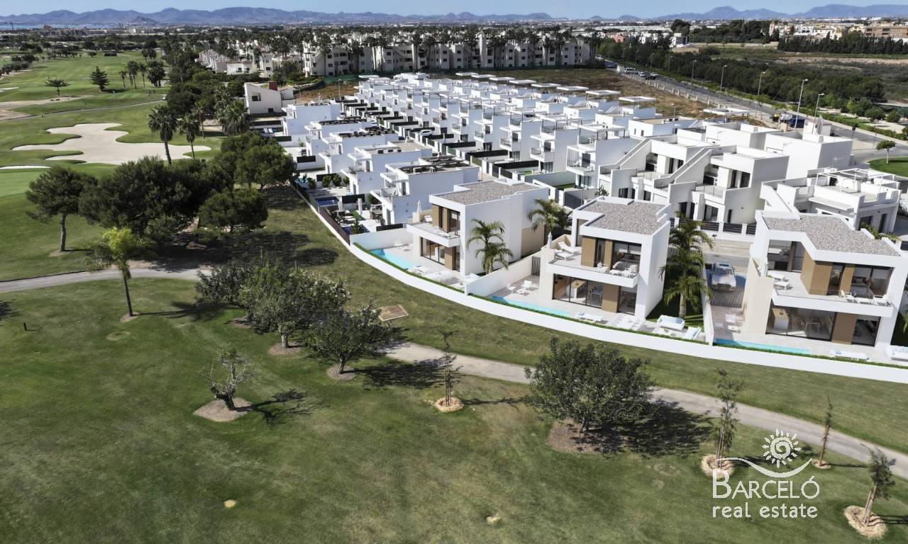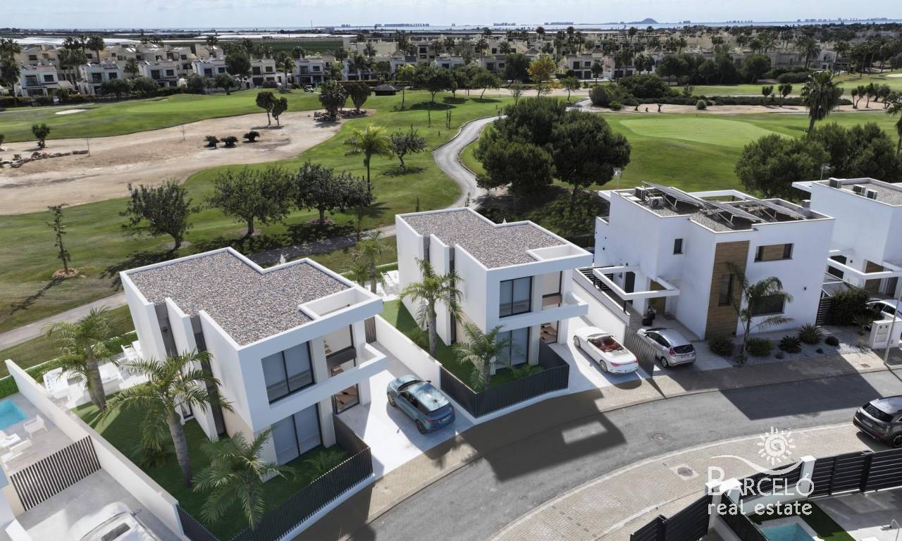 New Build Villas on the Frontline of Roda Golf with Private Pool Exclusive Golfside Living in Costa Cálida These modern frontline villas in Roda Golf (Murcia) offer the perfect blend of luxury, comfort, and Mediterranean lifestyle. Located just 3 km from the golden beaches of the Mar Menor, this residential project is ideal for golf lovers, water sports enthusiasts, and those seeking a serene yet well-connected home on the Costa Cálida. The development is surrounded by services, restaurants, shopping options, and sports facilities, ensuring convenience for everyday living. Spacious Villas with Private Pools Each villa is thoughtfully designed across two levels with a total built area of 140 m². The layout includes: 3 bedrooms (2 ensuite) 3 fully equipped bathrooms Bright living room with open-plan kitchen Ground floor bedroom for convenience Two bedrooms on the first floor with direct uncovered terrace access Enjoy outdoor living with a private swimming pool, spacious ground-floor terrace, and a first-floor sun terrace offering uninterrupted golf views and all-day sun. Each property also includes a private parking space on the plot and a large exterior storage room. High-Quality Features These homes are built to the highest standards, featuring: Underfloor heating in bathrooms Motorized aluminum shutters in all bedrooms Fully fitted bathrooms with furniture, mirrors, lights, and glass shower screens Modern kitchens with appliances included Pre-installation of ducted air conditioning in living room and bedrooms Solar panels with inverter for energy efficiency Prime Location in Roda Golf Situated within the prestigious Roda Golf & Beach Resort, these villas are surrounded by lush fairways and Mediterranean landscapes. Distances to main points of interest: Mar Menor beaches: 3 km Dos Mares Shopping Center: 5 km Lo Pagán Marina: 6 km Roda Golf Clubhouse: Walking distance Murcia International Airport (Corvera): 35 km Alicante Airport: 85 km Cartagena city: 30 km Live the Mediterranean Lifestyle Whether as a permanent residence, a holiday retreat, or a rental investment, these villas offer the perfect combination of elegance, functionality, and location. Contact us today to schedule a visit and secure your frontline villa at Roda Golf. Your dream home on the Costa Cálida awaits!