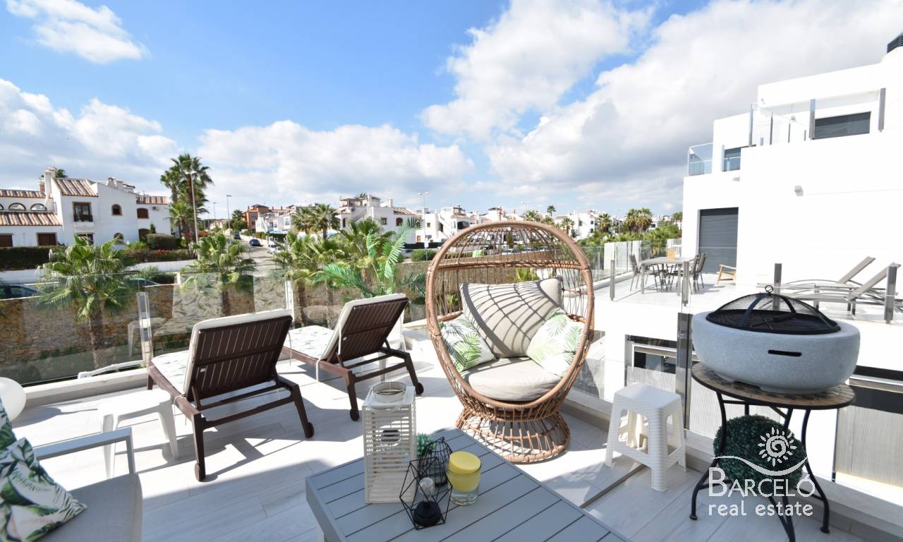 Inside it is tastefully decorated and ready to move into! You have a master bedroom with direct terrace access and an ensuite bathroom, another bedroom with access to both terraces and a third bedroom and a family bathroom. All the three bedrooms have built in wardrobes, and there is a central air conditioning system for cooling and heating.