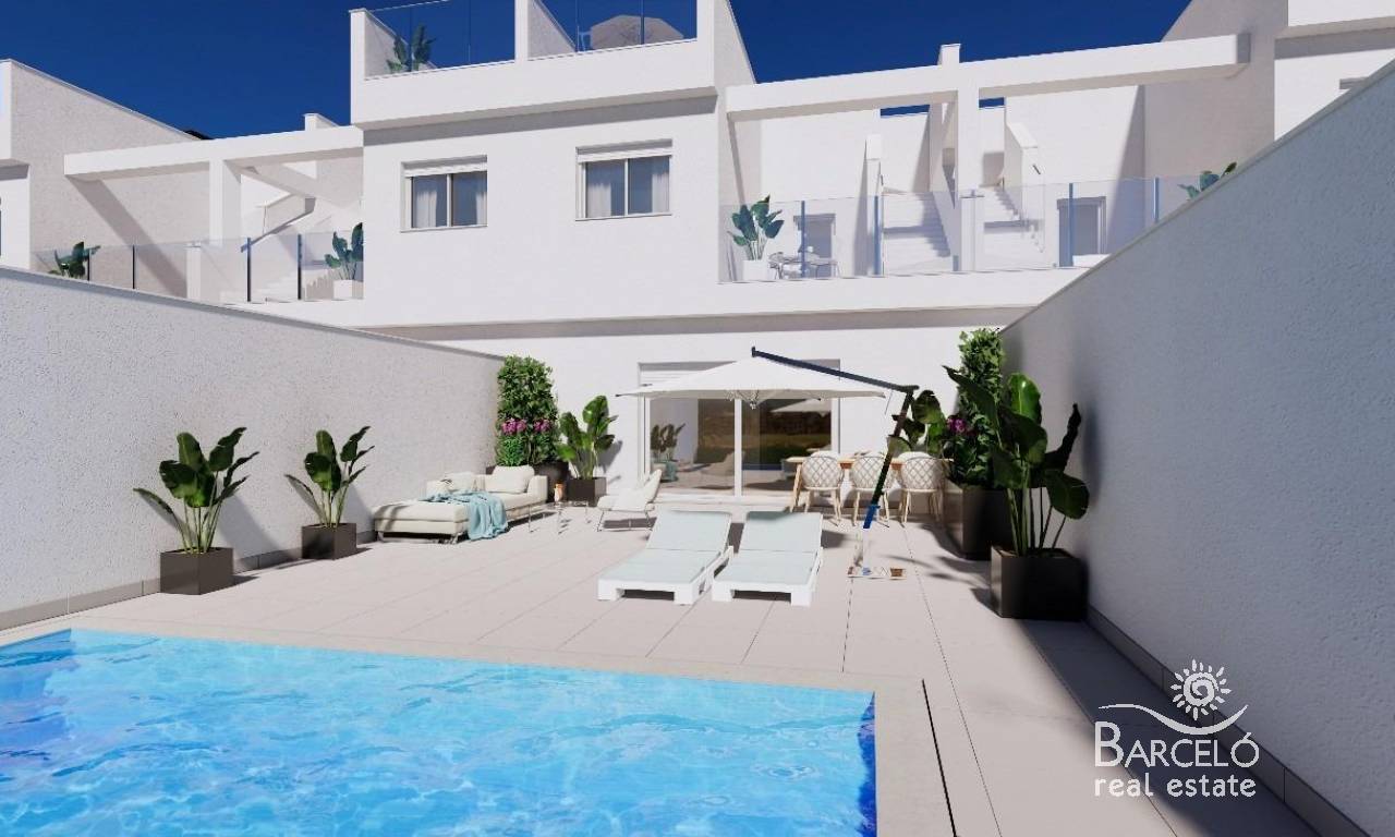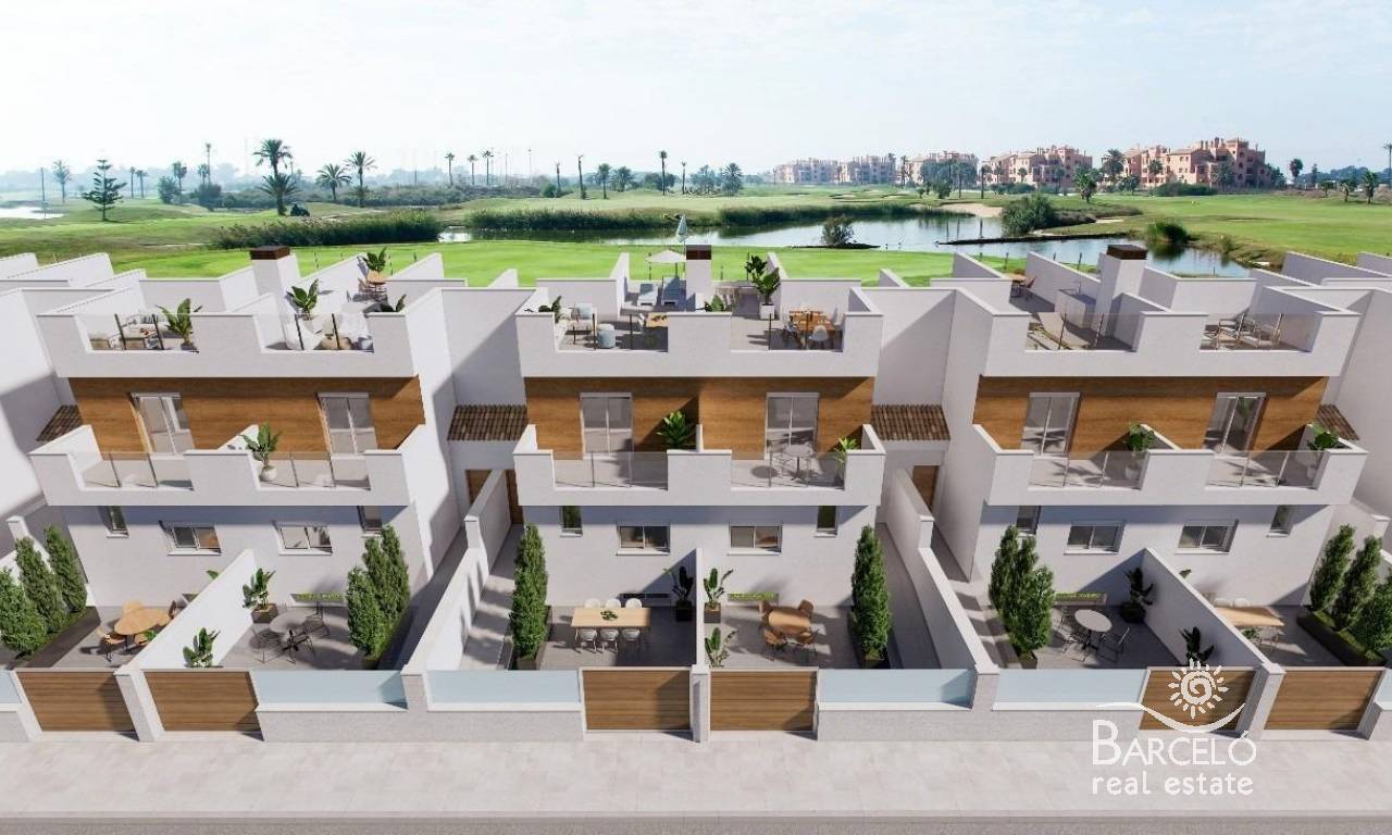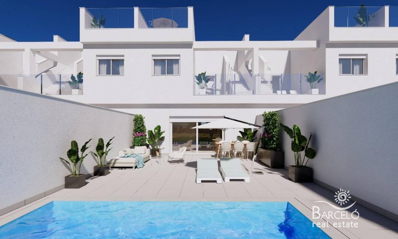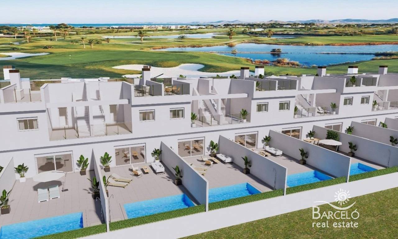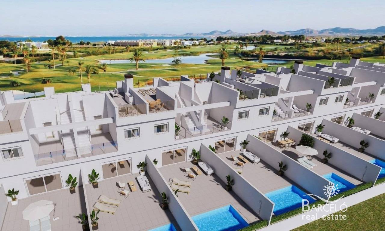 New-Build Townhouses on the Frontline of La Serena Golf in Los Alcázares Premium Location by the Golf Course and the Sea Discover an exclusive residential development of 31 new-build townhouses located on the frontline of La Serena Golf in Los Alcázares, just 600 m from the Mar Menor. Situated in the heart of the Costa Cálida, this privileged setting combines golf, beach, and Mediterranean lifestyle. With all amenities nearby and excellent road access, it is the ideal location for both holidays and year-round living. Modern Homes with Private Pool and Rooftop Solarium Each house features a stylish contemporary design and bright interior spaces. The homes are arranged across three levels plus rooftop solarium, offering maximum comfort and privacy: Basement with private garage for 2 cars and access to a patio Ground floor with open-plan living room and kitchen leading to a garden and private pool, 1 bedroom, and 1 bathroom First floor with 2 bedrooms, 1 bathroom, and 2 terraces Rooftop solarium with summer kitchen, ideal for relaxing and enjoying panoramic views East and west orientations ensure excellent natural light and outdoor living throughout the day. High-Quality Finishes and Comfort These houses are built to the highest standards, offering premium features including: Private swimming pool Basement garage for 2 cars with motorized door Aerothermal hot-water system Fully installed ducted air conditioning Furnished and equipped kitchen Fully equipped bathrooms with furniture, mirrors, and shower screens Security entrance door Live Between the Sea and the Fairway Set among lush Mediterranean landscapes, this exclusive community offers peaceful living next to the Serena Golf course, a renowned 18-hole course surrounded by nature and tranquil lakes. The warm, shallow waters of the Mar Menor are perfect for swimming and enjoying water sports such as sailing, paddle surf, and kayaking year-round. Key distances: Beach (Mar Menor): 600 m La Serena Golf: next to the complex Los Alcázares center: 2 km Cartagena: 22 km Murcia city: 40 km Murcia Airport: 30 km Alicante Airport: 90 km Secure Your Mediterranean Lifestyle Whether you are looking for a permanent residence, a holiday home, or a profitable investment, these houses offer luxury, convenience, and a superior coastal lifestyle. Contact us today to schedule a viewing and secure your new home in Los Alcázares.