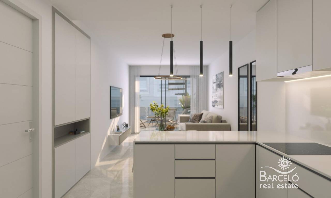 Modern New Build Apartments in the Heart of Torrevieja Prime Location Just 150 m from the Sea This exceptional new development is located in the very centre of Torrevieja, just 150 m from the natural swimming pools and seafront promenade, and only 500 m from Playa del Cura. Surrounded by an extensive range of services including shops, supermarkets, parks, cafés and restaurants, the area offers everything you need within a short walk. Its combination of urban convenience and coastal tranquillity makes it one of the most attractive residential areas in the city. Contemporary Apartments With 1 and 2 Bedrooms The development offers modern apartments featuring 1 or 2 bedrooms and 1 or 2 bathrooms, including two exclusive penthouses with private solarium, barbecue and private pool. All homes are designed with open layouts that maximise natural light, incorporating spacious terraces and stylish American style kitchens. Each apartment includes a fully equipped kitchen with appliances, complete bathrooms with furniture, shower screens and underfloor heating, as well as interior lighting. There is also preinstallation for ducted air conditioning, ensuring year round comfort. Attractive Communal Areas for Relaxation Residents can enjoy excellent communal facilities designed for wellbeing and leisure. The ground floor features a refreshing communal pool and a relaxing sauna. The rooftop terrace offers a shared solarium, ideal for sunbathing and taking in the Mediterranean atmosphere. Enjoy a Unique Coastal and Natural Environment Torrevieja is renowned for its mild Mediterranean climate, with an average annual temperature of 20 ºC, perfect for year round living. The city is home to the famous salt lakes and the protected Natural Park of La Mata and Torrevieja, located just 4 km from the development. With its vibrant pink and green lagoons, scenic walking routes and diverse wildlife, it provides a healthy and inspiring natural setting. Distances to Key Points of Interest Puerto Deportivo de Torrevieja 1 km Parque Natural de La Mata 4 km Villamartin Golf 8 km Alicante Airport 45 km Murcia Airport 60 km Live the Mediterranean Lifestyle Secure your modern home in one of the most sought after coastal cities in the Costa Blanca. Contact us today to schedule a visit and reserve your place in this outstanding new development.