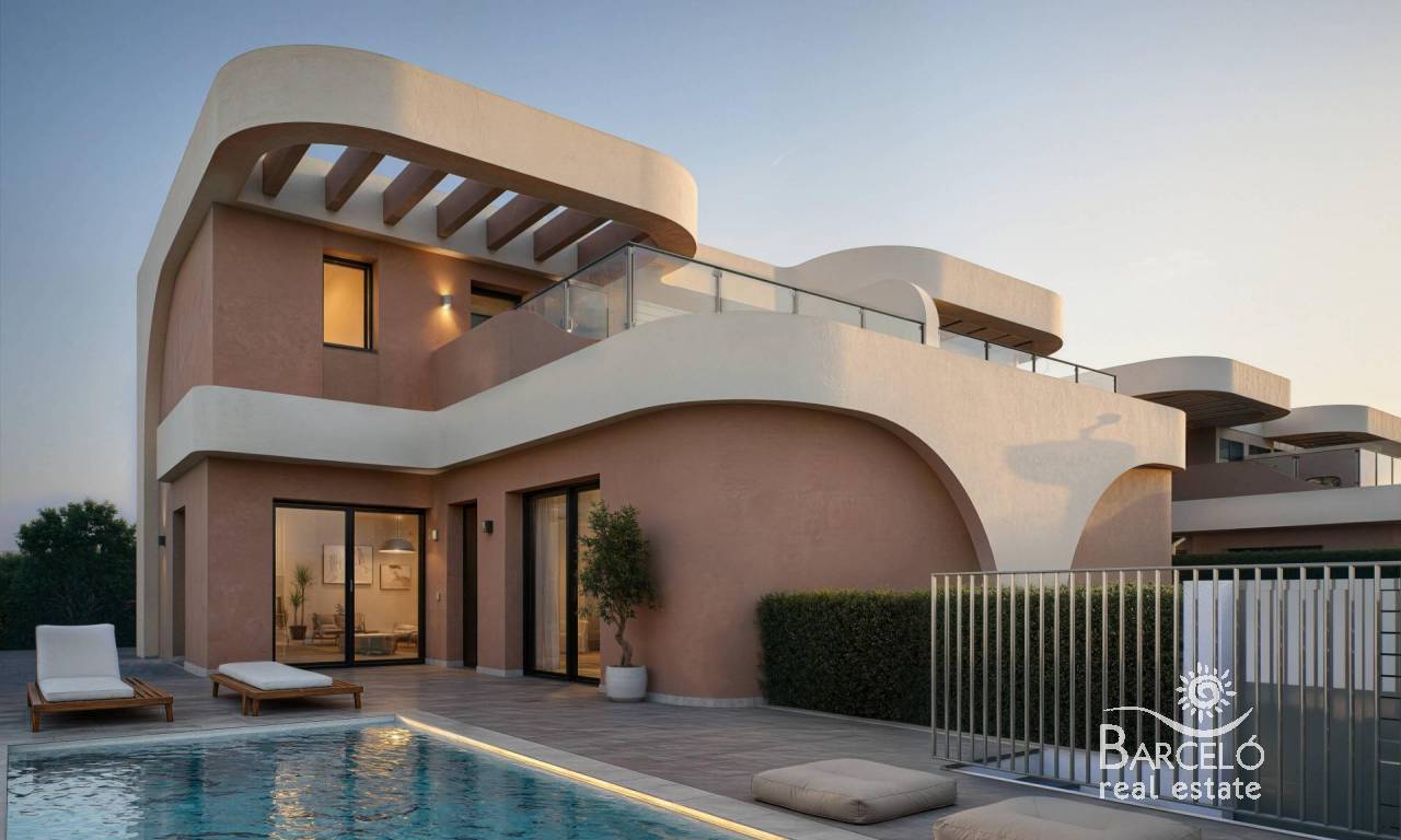 Modern Semi Detached Villas in Daya Nueva with Contemporary Design and Excellent Connectivity Peaceful Living in Daya Nueva These new semi detached villas are located in the charming town of Daya Nueva in the south of Alicante. Known for its peaceful rural atmosphere, Daya Nueva offers a comfortable lifestyle surrounded by orchards and open landscapes, while being just a short drive from the vibrant coastal areas of the Costa Blanca. The town provides essential services, restaurants and local shops, and sits only 10 km from the beaches of La Marina del Pinet and Guardamar del Segura. The Alicante International Airport is approximately 25 km away, making it highly accessible for international homeowners. Golf lovers will appreciate being within 12 km of La Marquesa Golf and 15 km from Vistabella Golf. Elegant Architecture and Quality Construction This exclusive development has been designed with great attention to detail, incorporating a bright, fresh and modern architectural style. The curved lines of the facade create a unique contemporary look, while high quality finishes ensure lasting comfort. Functional Layout Across Two Floors Each villa is distributed over two levels in the new residential area of Daya Nueva, within walking distance to the town center. The ground floor includes a living and dining area with an open plan kitchen, direct access to the garden, a bedroom with ensuite bathroom and walk in wardrobe, a guest toilet and a private parking space on the plot. A private pool can be added at an additional cost. The upper floor features two more bedrooms, a full bathroom and a 19 m2 open terrace with pleasant open views. Comfort and Modern Features Homes come equipped with fitted bathrooms including furniture, mirror and shower screens. Additional features include ducted air conditioning pre installation, furnished kitchens, electric shutters in bedrooms, indoor and outdoor LED lighting and three photovoltaic solar panels. Ideal Location for Coastal and Rural Living The villas are set in a quiet new residential area with easy access to the A 70 motorway. The beaches, golf courses, marinas and nearby towns are all within a short distance, making this an ideal location for both holidays and year round living. Contact us today to schedule a visit and secure your new home in Daya Nueva.
