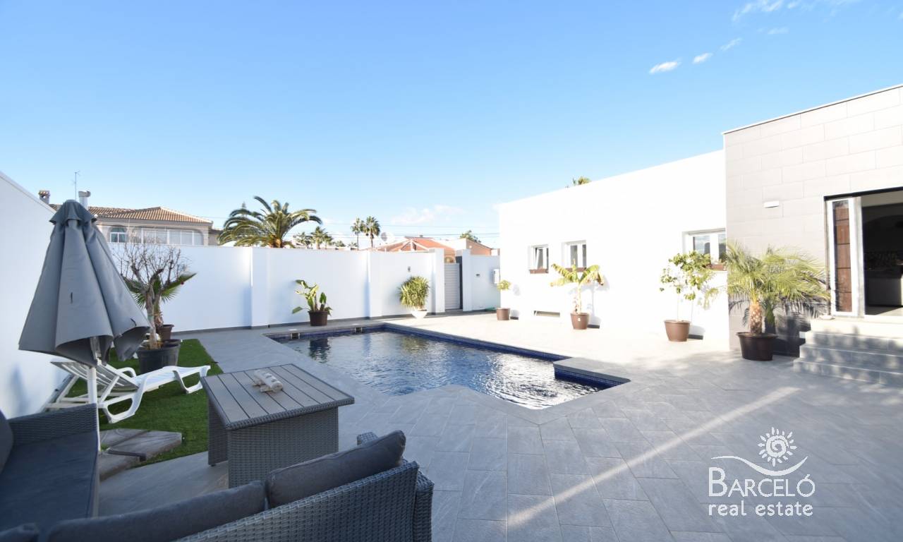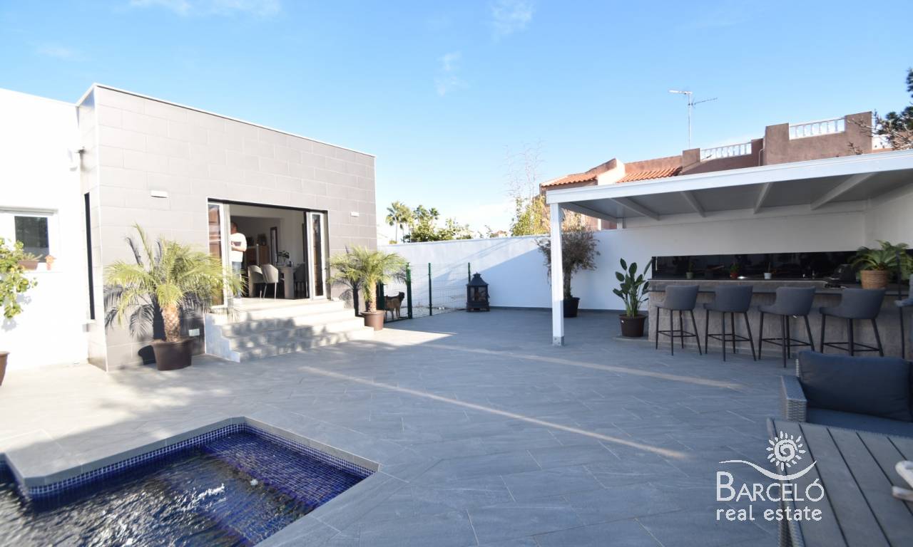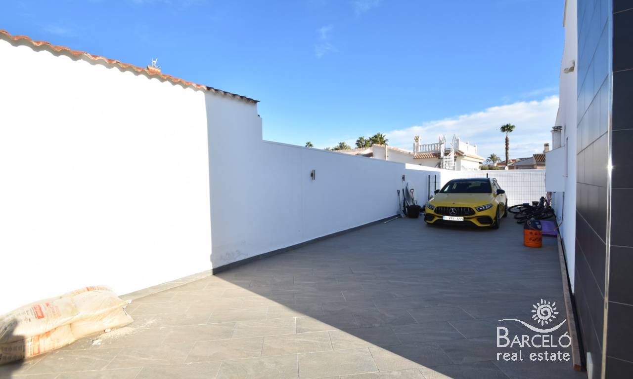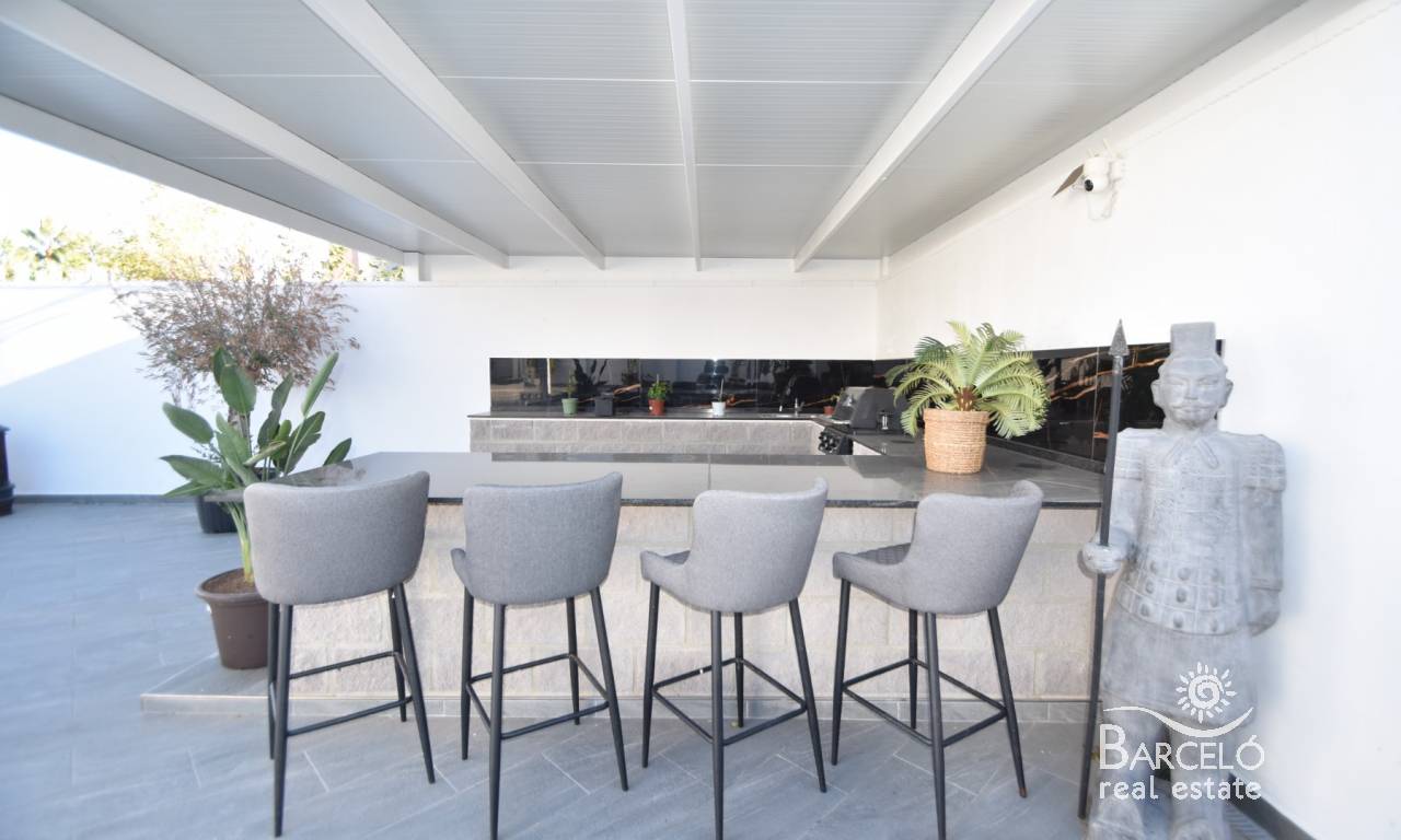 This property sits on a generous 500m2 plot, and is mostly tiled for ease of maintenance. Around the rear of the villa you have plenty of space for off street parking for cars or even a large campervan or motorhome. The front of the garden has your large swimming pool and a beautiful summer kitchen, which is large and fully equipped – with plenty of space around the garden for entertaining and sunbathing!