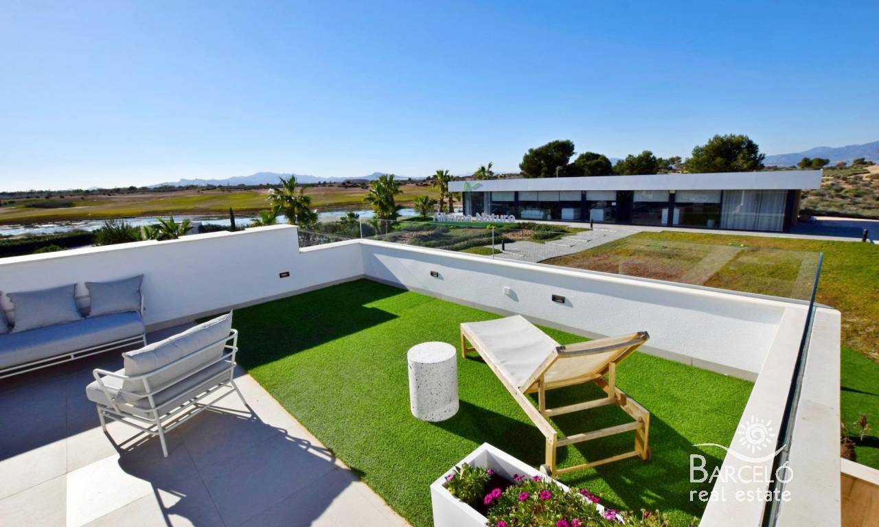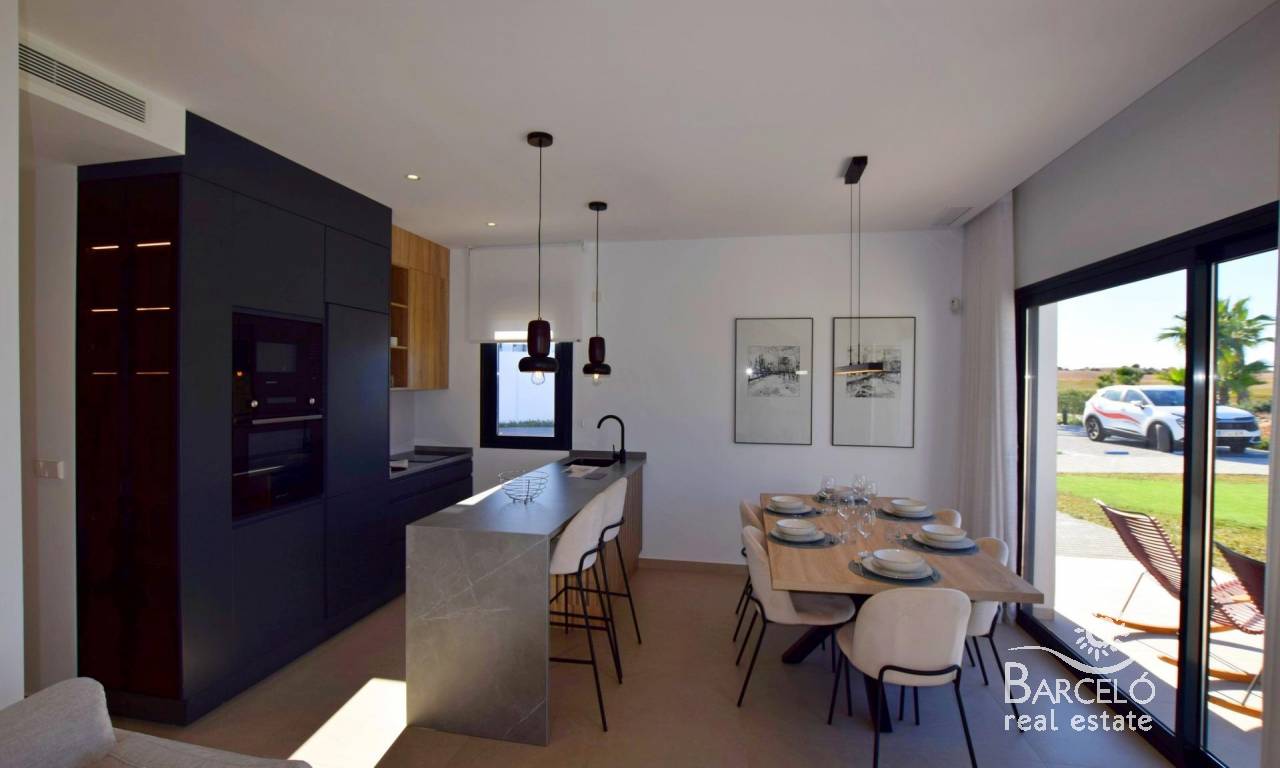 NEW BUILD VILLAS IN CONDADO DE ALHAMA GOLF COURSE New Build residential complex of villas and apartments in Condado de Alhama. There are 11 independent villas, with private swimming pool, solarium and outdoors parking space, with large terraced areas South facing and Summer kitchen, where you can enjoy the sun all year round. These beautiful villas, built with the highest quality standards, have 2, 3 or 4 bedrooms and 2 or 3 fully-fitted bathrooms. The villas have been designed with a contemporary style and an open planned concept, comprising of a fitted kitchen and a living-dining room. The development is located in Condado de Alhama, Murcia, within a luxury resort, with sports areas and surrounded by nature, all services, and several Golf Courses. The property will meet the highest standards and will be equipped with: Private swimming pool with solar shower and ample green areas. Kitchen completely furnished and equipped with oven and microwave elevated and in column, integrated fridge and dishwasher, induction hob and extractor fan. Lighting: inside the property (dining room, kitchen, corridors and bathrooms), as well as in outdoor areas. Lined wardrobes with drawers and shelves. Fully fitted bathrooms with vanity unit, suspended toilet, mirror, wall-mounted shower, shower screens and radiant heating on floor. Pre-installation for ducted air conditioning. Summer kitchen on the solarium. Solarium. Outdoor parking space. Charging points for electric cars. Condado de Alhama Golf Resort is a fantastic Golf Resort with many facilities and services . A shopping centre, a sports centre, a variety of bars and restaurants, supermarkets and over 25 communal swimming pools and gardens. Condado de Alhama Golf Resort has its own Jack Nicklaus designed golf course and is only 15 minutes from the beautiful beaches of Bolnuevo and Mazarron. Mazarron has over 35 km of coastline, much of which is unspoilt coastline. Numerous beaches in the Bay of Mazarron have been awarded the Blue Flag for their quality. Condado de Alhama Golf Resort is only 20 minutes from the new Corvera International Airport.