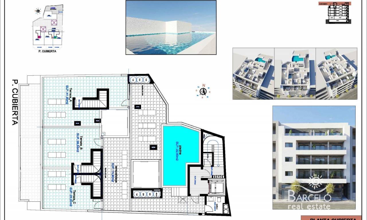 New Build Apartments in Torrevieja Just 400 m from Playa del Cura Prime Location in the Heart of Torrevieja Discover these brand new apartments and penthouses in one of the most sought after areas of Torrevieja, only 400 m from Playa del Cura and just 150 m from the seafront promenade. Located in the city centre, this vibrant neighborhood offers all essential services within walking distance, including supermarkets, shops, restaurants, cafes and public transport. Torrevieja is a well known coastal city on the Costa Blanca, famous for its mild Mediterranean climate, lively atmosphere and year round lifestyle by the sea. Modern Apartments with Spacious Layouts This exclusive new development consists of only 12 apartments and penthouses with 2 or 3 bedrooms, designed to offer comfort, functionality and contemporary style. Middle floor apartments feature generous terraces, while the penthouses enjoy an additional private solarium, ideal for sunbathing or outdoor dining. All homes include an open plan kitchen connected to the living and dining area, creating bright and welcoming interiors. Bedrooms come with fitted wardrobes, and bathrooms are fully equipped with furniture, mirrors and shower screens. Optional underground parking spaces and storage rooms are available at an extra cost. Quality Finishes and Energy Efficient Features The apartments are built with high quality materials and a strong focus on energy efficiency. Exterior aluminum carpentry includes thermal break technology and double glazing for thermal and acoustic insulation. Motorized shutters add comfort and security. Each home has pre installation for ducted air conditioning and heating, reinforced entrance doors and white lacquered interior doors. Hot water is produced through an aerothermal system, reducing energy consumption and improving sustainability. Rooftop Solarium with Communal Pool Residents can enjoy an exclusive rooftop solarium with a communal swimming pool, accessible by lift or stairs. This private area is perfect for relaxing, sunbathing and enjoying open views over the city. It provides a peaceful retreat above the lively streets of Torrevieja and adds significant value to the development. Torrevieja Lifestyle and Surroundings Torrevieja is known for its long coastline, sandy beaches and iconic salt lagoons. The Natural Park of La Mata and Torrevieja lagoons is approximately 5 km away and offers walking trails and unique landscapes. Several golf courses such as Villamartin Golf and Las Colinas Golf are within 12 to 18 km. Torrevieja Marina and port are around 1 km away. Alicante Airport is approximately 45 km and Murcia International Airport around 65 km, both with excellent European connections. Your Coastal Home Awaits Do not miss this opportunity to own a modern new build apartment close to the beach in Torrevieja. Contact us today for more information or to arrange a private viewing.