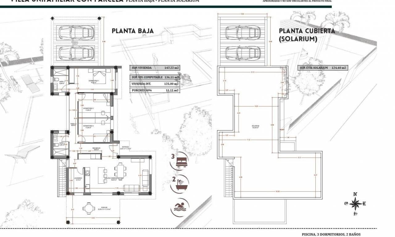 New Build Villa with Private Pool in Vistabella, Jacarilla Exclusive New Build Villa in a Natural and Golf Setting This new build villa under self promotion regime is located in the peaceful area of Vistabella, within the municipality of Jacarilla. Set in a natural environment between the Vistabella Golf course and the La Pedrera reservoir, this property offers privacy, open views and a relaxed Mediterranean lifestyle. The area is ideal for those seeking tranquility while remaining close to the coast, golf courses and everyday services. Vistabella is a well known residential area popular with international buyers thanks to its golf course, local restaurants and proximity to Orihuela Costa and Torrevieja. Jacarilla maintains its traditional Spanish charm, offering local shops, services and a friendly atmosphere all year round. Modern Single Level Layout with Spacious Outdoor Areas The villa is distributed on one single floor and has been designed to combine comfort, functionality and natural light. It offers 3 bedrooms and 2 bathrooms, including a master bedroom with ensuite bathroom. The open plan living and dining area connects seamlessly with the modern kitchen, creating a bright and welcoming living space. A covered terrace of 22 sqm provides direct access to the private garden, where a private swimming pool and landscaped areas invite you to enjoy the outdoor lifestyle. The generous 750 sqm plot also includes on plot parking space for two vehicles. Private Solarium with Open Views One of the highlights of this villa is the impressive private solarium of 120 sqm, accessed via an external staircase. From here, you can enjoy open panoramic views of the surrounding countryside, perfect for sunbathing, entertaining or relaxing throughout the year. Quality Specifications and Energy Efficient Features The villa is built with quality materials and modern specifications to ensure comfort and efficiency. Features include a reinforced security entrance door, aerothermal system for domestic hot water, electric blinds in the living room and bedrooms, and preinstallation of ducted air conditioning. These elements provide an ideal base for a comfortable and energy efficient home. Excellent Location Close to Golf, Nature and the Coast Vistabella Golf is located approximately 2 km away, while the La Pedrera reservoir is just 1.5 km from the property, ideal for nature lovers and outdoor activities. The beaches of Orihuela Costa are around 15 km away. Alicante International Airport is approximately 55 km away, offering easy connections to major European destinations. Several additional golf courses and shopping areas can be reached within 10 to 15 km. A Unique Opportunity on the Costa Blanca This new build villa in Vistabella is perfect as a permanent residence, holiday home or investment opportunity in a sought after location. Contact us today to receive more information and secure your new home in the heart of the Costa Blanca.
