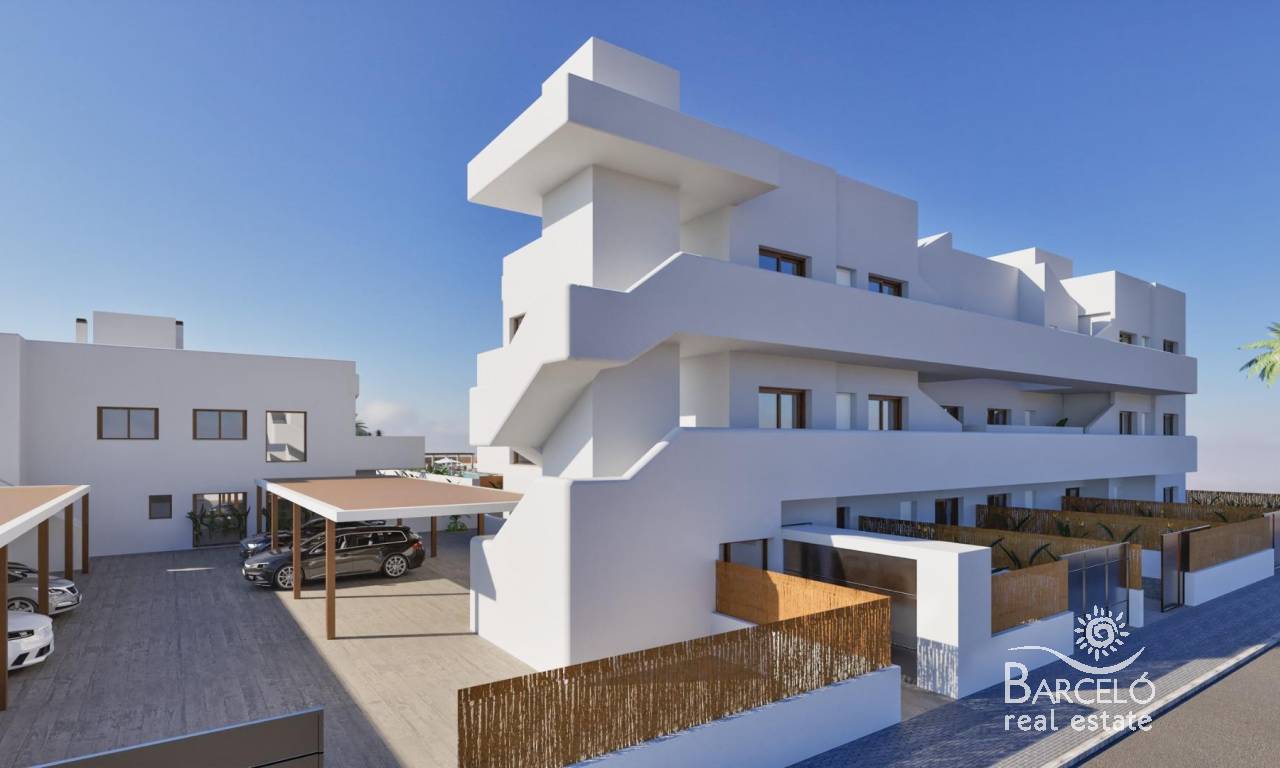 New Build Residential Complex Near Serena Golf and the Mar Menor in Los Alcazares Modern Coastal Living on the Costa Calida Discover this attractive new build residential complex located in Los Alcazares, one of the most popular seaside towns on the Costa Calida. Situated just 500 m from the beaches of the Mar Menor and within walking distance of the town center, this development offers an excellent combination of coastal living, golf surroundings and everyday convenience. Los Alcazares is well known for its relaxed atmosphere, long promenades, warm shallow waters and a wide range of restaurants, shops and services open all year round. Contemporary Apartments Designed for Comfort The development consists of 29 modern homes with 2 or 3 bedrooms, designed with clean architectural lines and high quality finishes. Buyers can choose between ground floor apartments with private garden and terrace, middle floor homes with spacious terraces, or penthouses with private terrace and rooftop solarium offering open views. Many of the properties enjoy views towards Serena Golf and the Mar Menor, creating a calm and pleasant living environment. All homes are designed to maximize natural light and functionality, making them ideal as a permanent residence, holiday home or investment property. High Quality Features and Communal Areas Each property includes a private parking space and a storage room. The specifications are designed to provide comfort and energy efficiency, including double glazed windows with thermal break, pre installation of ducted air conditioning, aerothermal system for domestic hot water, electric shutters in bedrooms and a complete interior and exterior lighting package. Bathrooms are delivered fully equipped with furniture, mirror and shower screen. Residents can enjoy attractive communal areas with landscaped gardens and a communal swimming pool, perfect for relaxing and enjoying the Mediterranean climate. Selected blocks are equipped with lifts for added convenience. Prime Location Between Golf and Sea This residential complex enjoys a privileged location next to Serena Golf, one of the most renowned golf courses in the area, and just a short walk from the calm waters of the Mar Menor. The area is ideal for swimming, sailing, paddleboarding and other water sports throughout the year. Key distances include Mar Menor beaches at 0.5 km, Serena Golf directly next to the development, Los Alcazares town center at 2 km, Cartagena at 22 km and Murcia city at 40 km. Murcia Corvera Airport is approximately 30 km away and Alicante Airport is around 90 km. An Ideal Home or Investment Opportunity With its excellent location, modern design and proximity to both golf and the sea, this new residential complex in Los Alcazares offers an outstanding lifestyle opportunity on the Costa Calida. Contact us today to receive more information or to arrange a private viewing and secure your new home by the Mar Menor.