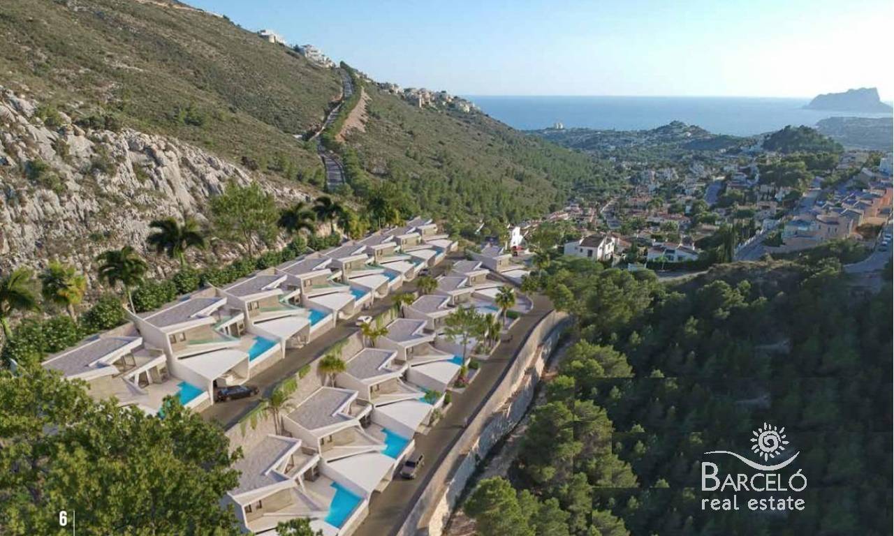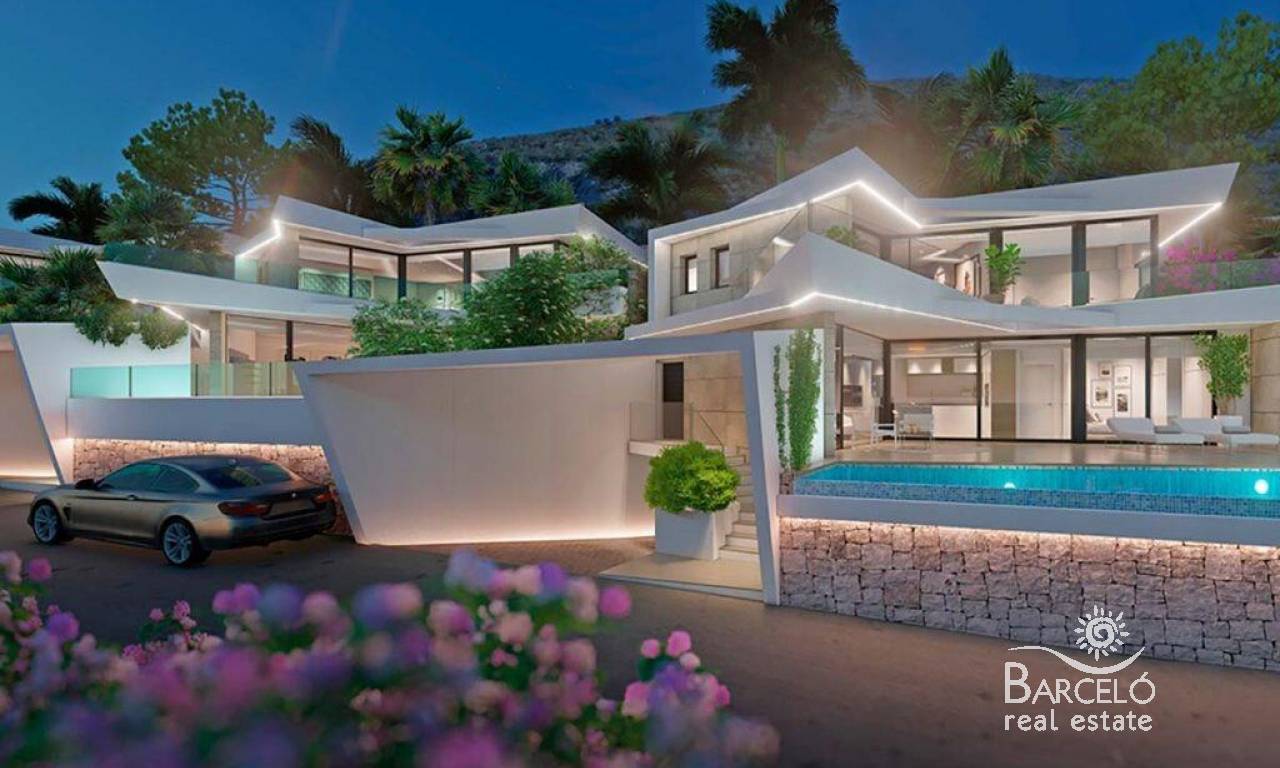 Luxury New Build Villas with Sea Views in Benitachell Exclusive Villas in Golden Valley, Poble Nou de Benitachell Discover this outstanding new build development of 16 independent villas with stunning sea views, located in the prestigious Golden Valley urbanization in Poble Nou de Benitachell, Alicante. This privileged area sits between the popular coastal towns of Moraira and Javea, offering a peaceful residential environment surrounded by nature, yet close to beaches, restaurants and essential services. The elevated position guarantees panoramic Mediterranean views and a tranquil lifestyle on the Costa Blanca. Modern Architecture and Elegant Design These contemporary villas showcase avant garde architecture combined with spacious interiors filled with natural light. Each home has been carefully designed to deliver comfort, privacy and functionality, blending indoor and outdoor living seamlessly. Clean lines, large windows and open plan spaces create an atmosphere of light, sophistication and Mediterranean charm. Spacious Layouts with Private Gardens and Pools Each villa offers approximately 290 m2 built on private plots of over 300 m2. Homes feature 3 or 4 bedrooms, with en suite bathrooms, plus a guest toilet. Distributed over three levels, the layout includes a basement with a private garage for two cars and, in some units, additional space for a gym, extra bedroom, laundry room or storage. The ground floor hosts the open plan living and dining area with a fully equipped kitchen, direct access to the terrace and private swimming pool, one bedroom with en suite bathroom and a guest toilet. The upper floor includes two additional bedrooms with en suite bathrooms and a large open terrace ideal for enjoying sea views. High Quality Features and Energy Efficiency All villas include a private swimming pool, barbecue area and chill out zone. Specifications include electric shutters, an armored entrance door, fully fitted kitchens with Bosch appliances, aerothermal system for domestic hot water, and fully installed ducted air conditioning. The development boasts an A energy rating, ensuring efficiency, comfort and reduced energy consumption. Prime Location on the Costa Blanca Poble Nou de Benitachell is a charming town known for its authentic Spanish atmosphere, beautiful countryside and proximity to some of the best beaches on the Costa Blanca. The area offers supermarkets, restaurants, medical services and international schools nearby. Key distances: Moraira beach 6 km Javea beach 8 km Benitachell town center 2 km La Sella Golf 12 km Marina de Moraira 7 km Alicante Airport 95 km Valencia Airport 120 km Your Dream Home with Sea Views These exclusive new build villas in Golden Valley combine luxury, design and a privileged location with breathtaking sea views. Contact us today to arrange a private viewing and secure your new Mediterranean home in Benitachell.