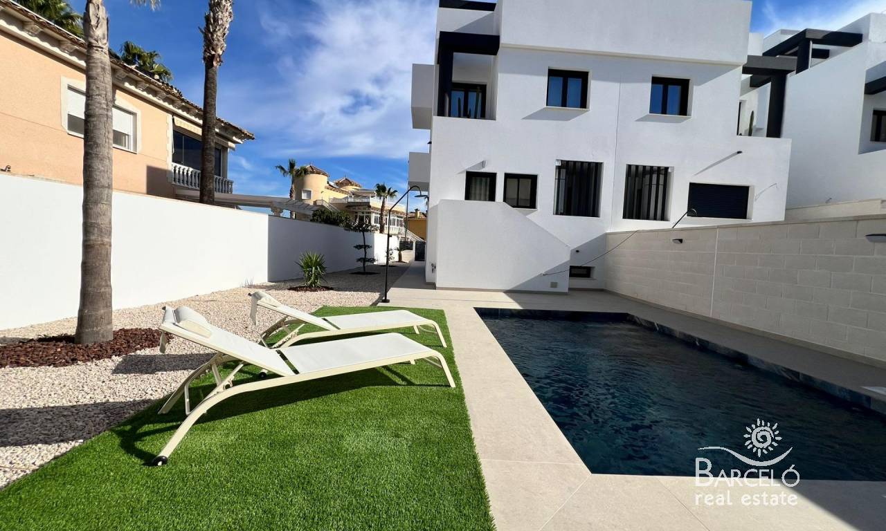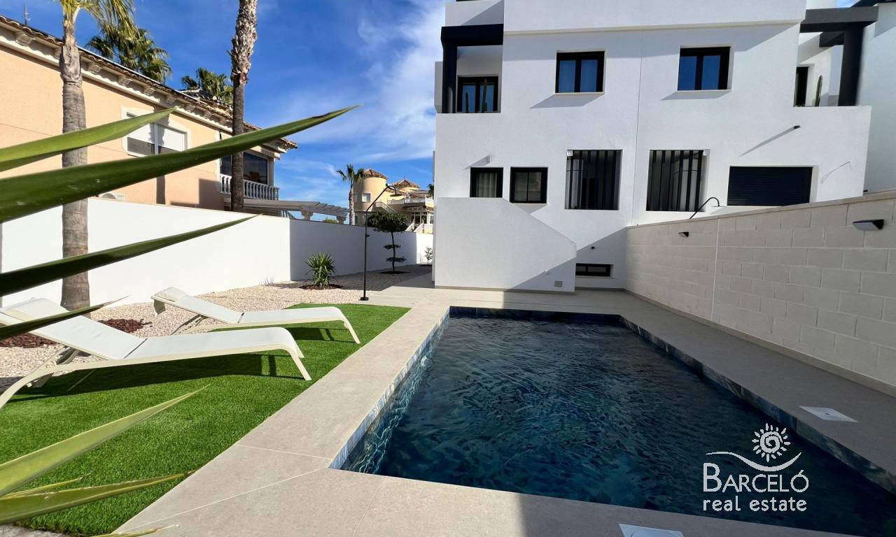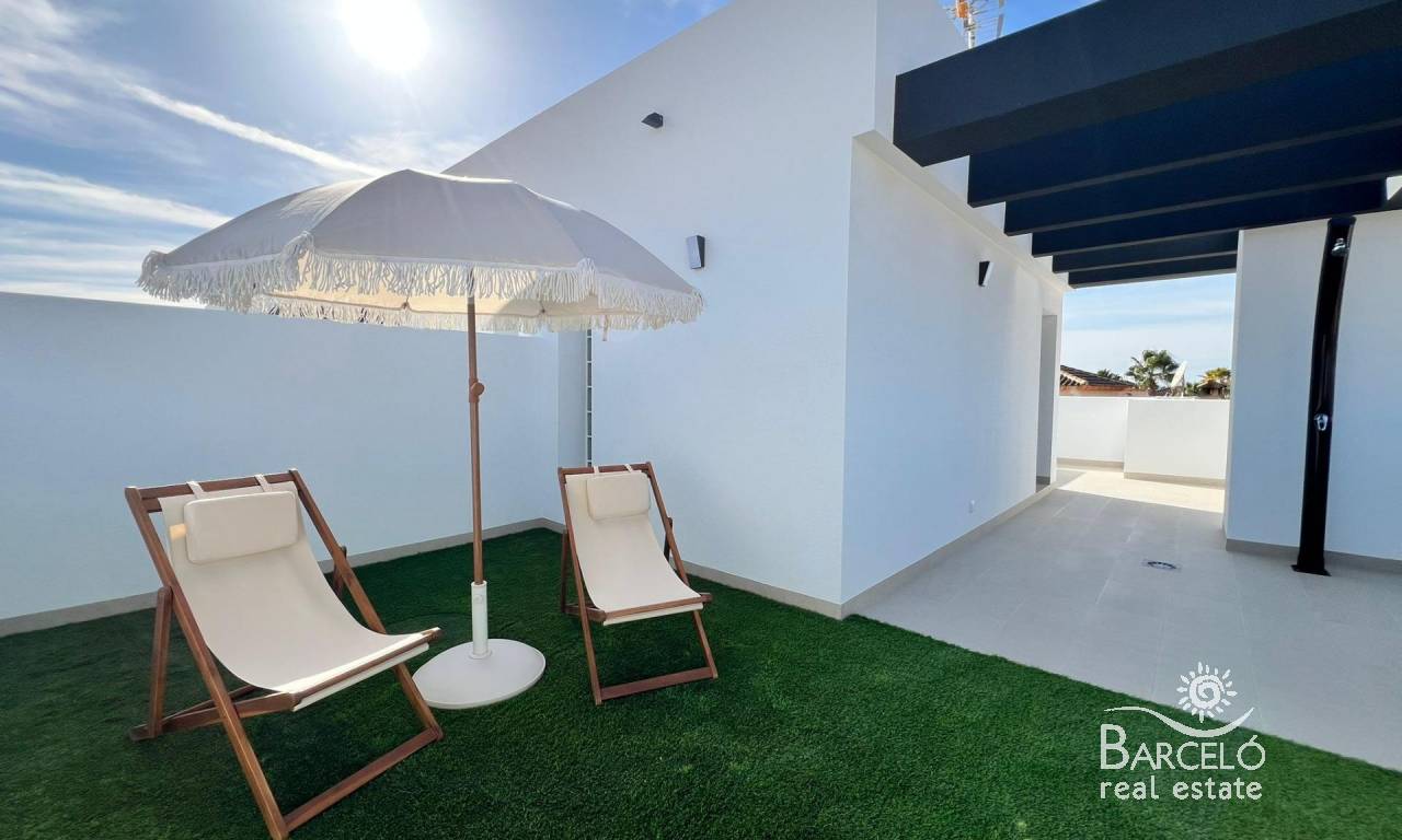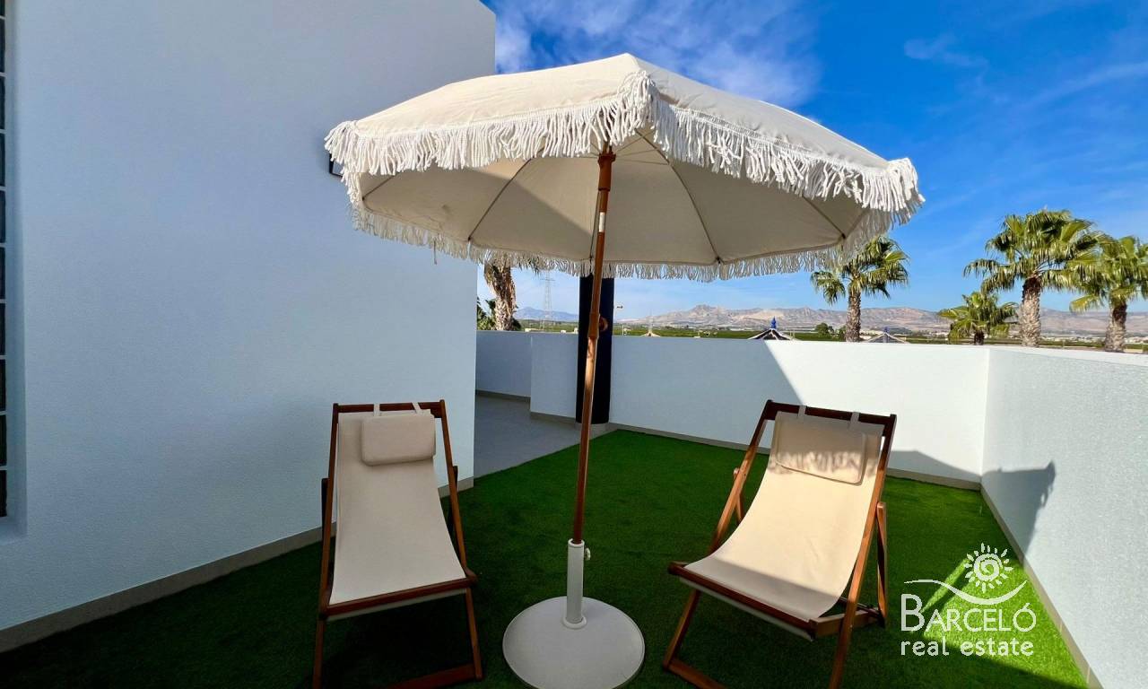 Modern New Build Semi Detached Villas in Benferri Alicante Exclusive New Development in Benfis Park Discover this new promotion of 10 modern semi detached villas located in Benfis Park, Benferri, in the heart of the Vega Baja region of Alicante. This charming town offers a peaceful residential atmosphere with well kept streets and a welcoming community, ideal for families, retirees or anyone seeking a relaxed lifestyle under the Mediterranean sun. Benferri combines rural charm with excellent access to nearby towns, beaches and major transport links. Spacious Villas with Private Solarium Each villa offers a total built area of 222 sqm and is distributed over three floors plus a private solarium. The basement level includes a garage with space for two cars and a storage room. The ground floor features a bright open plan living and dining area with a modern kitchen, a laundry room and a guest toilet, with direct access to a terrace that surrounds the home. On the first floor there are three bedrooms and two bathrooms, one of them ensuite, as well as two terraces serving two of the bedrooms. The top floor offers a private solarium of approximately 39 sqm, perfect for sunbathing, outdoor dining or relaxing with open views. Modern Features and Optional Pool The villas come with a fully fitted kitchen including electrical appliances, and pre installation for ducted air conditioning. A private swimming pool is available as an optional extra, allowing buyers to further personalize their home. The design focuses on comfort, functionality and natural light, creating a contemporary living environment ideal for year round living or holiday use. Living in Benferri Vega Baja Benferri is located just a few minutes from Orihuela and benefits from quick access to the AP 7 motorway, making travel to the Costa Blanca beaches, Alicante Elche Airport and the main shopping and leisure areas fast and convenient. The surrounding landscape is characterized by fertile farmland, gentle hills and Mediterranean scenery, offering a sense of wellbeing and connection to nature. The town provides all essential services including supermarkets, schools, sports facilities and a lively local atmosphere throughout the year. Distances to Points of Interest Orihuela 8 km Guardamar del Segura beach 25 km La Finca Golf Resort 18 km Vistabella Golf 14 km Alicante Elche Airport 45 km Port of Torrevieja 32 km Shopping center Zenia Boulevard 30 km Your New Home in the Costa Blanca These new build semi detached villas in Benferri offer generous space, modern design and a strategic location close to beaches, golf courses and key services. Contact us today to receive more information or arrange your private viewing.