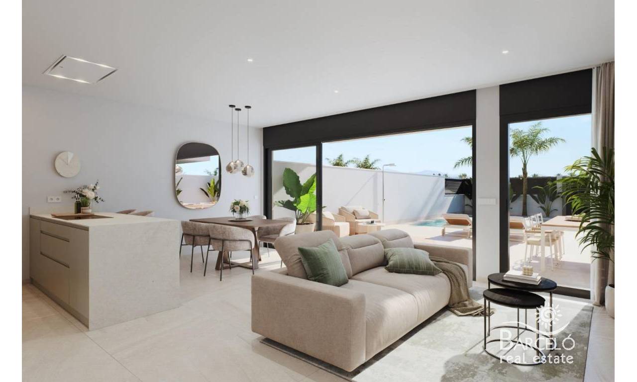 Modern New Build Villas with Private Pool in San Pedro del Pinatar Contemporary Design and Premium Quality Living Discover the third phase of this exclusive residential project in San Pedro del Pinatar, where modern architecture meets comfort and functionality. These 14 semi detached villas are designed with a minimalist style and high quality finishes, offering an elegant and sophisticated living experience on the Costa Calida. Each villa features 3-4 spacious bedrooms, 3 bathrooms, private swimming pool, terraces and a private garden, creating the perfect environment for privacy, relaxation and Mediterranean outdoor living. San Pedro del Pinatar is one of the most sought after towns in the Mar Menor area, known for its natural salt lakes, calm beaches and year round pleasant climate, making it ideal for both permanent living and holiday use. Open Plan Layout Designed for Modern Life The villas are carefully distributed with an open plan kitchen connected to a bright living and dining area. Large windows in the living room with motorized blinds provide direct access to the pool area and allow natural light to flood the interior spaces. Key features of each property include: 3 bedrooms with built in wardrobes 3 fully equipped bathrooms with vanity units, mirrors and shower screens Furnished kitchen with Balay appliances included Private pool and garden area Interior and exterior LED lighting Terraces on the first floor and optional rooftop solarium On plot parking space Aerothermal system for hot water Photovoltaic solar panels for improved energy efficiency Pre installation of ducted air conditioning These homes are designed to combine sustainability, comfort and modern style in every detail. Prime Location Near Beaches and Services Located between the Mar Menor and the Mediterranean Sea, San Pedro del Pinatar is a paradise for beach lovers and water sports enthusiasts. The town offers a lively marina, natural mud baths, shops, restaurants, sports facilities and excellent services all year round. Beaches of the Mar Menor 3 km Mediterranean beaches 5 km Dos Mares Shopping Center 5 km Lo Romero Golf 10 km Roda Golf 15 km Murcia Corvera Airport 30 km Alicante Airport 80 km San Pedro Marina 4 km An Ideal Home for Lifestyle and Investment Thanks to their location, design and energy efficient features, these villas represent an excellent opportunity as a permanent residence, holiday home or rental investment in one of the most attractive areas of the Costa Calida. Contact us today for more information or to arrange a viewing and secure your new villa in San Pedro del Pinatar.