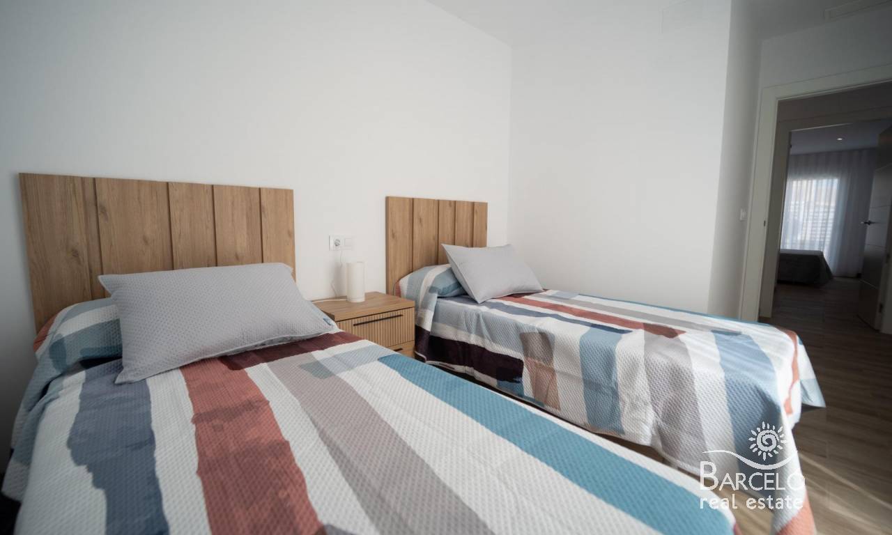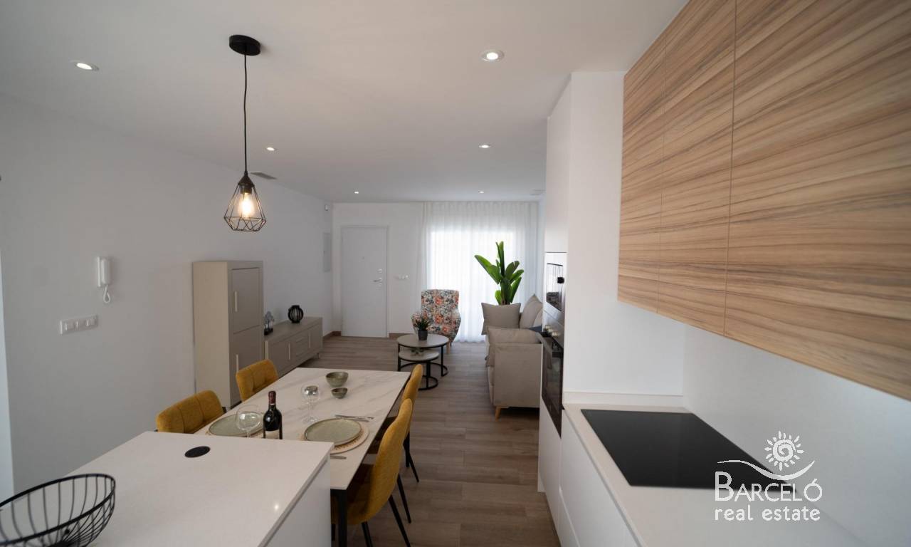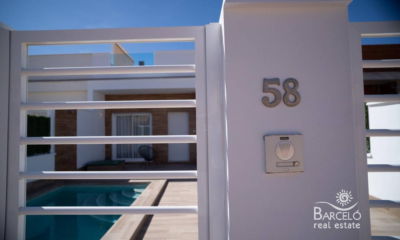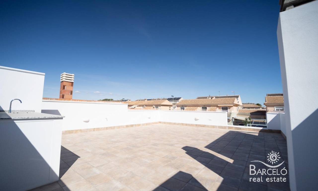 NEW BUILD TOWNHOUSES IN SAN JAVIER New Build luxury complex of 24 one level villas or on 2 floors with private pool, terraced area and solarium with Summer kitchen that allows you to enjoy all hours of sunshine, every day of the year. Each villa has 2 or 3 bedrooms and 2 fitted bathrooms on one level or 3 bedrooms and 3 fitted bathrooms on two levels. Designed with a contemporary style and open planned concept, comprising a fully-fitted kitchen and lounge-dining room. The development is located in San Javier (Murcia), near the beach, surrounded by services, parks, sports facilities and several Golf Courses. The property will meet the highest standards and will be equipped with: Private swimming pool with shower. Kitchen completely furnished and equipped with oven, microwave, fridge, integrated dishwasher, hob and extractor fan. Lighting: inside the property (dining room, kitchen, corridors and bathrooms) as well as in outdoor areas. Lined wardrobes with drawers. Fully fitted bathrooms with toilet, vanity unit, mirror and shower with screen panels. Pre-installation for ducted air conditioning. Solarium with Summer kitchen. Parking space on the plot. San Javier is close to all amenities with easy access to the beach, water sports, shops and the transport network. Here you can enjoy all of the facilities that San Javier has to offer such as the local shops, bars and restaurants as well as being near to shopping centres, the airport of Murcia and all of the beautiful places to be found along the Mar Menor. Corvera/Murcia airport is 30 minutes away and Alicante airport is 45 minutes away.