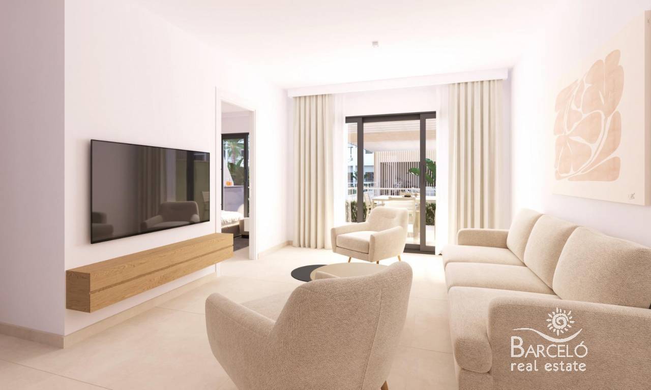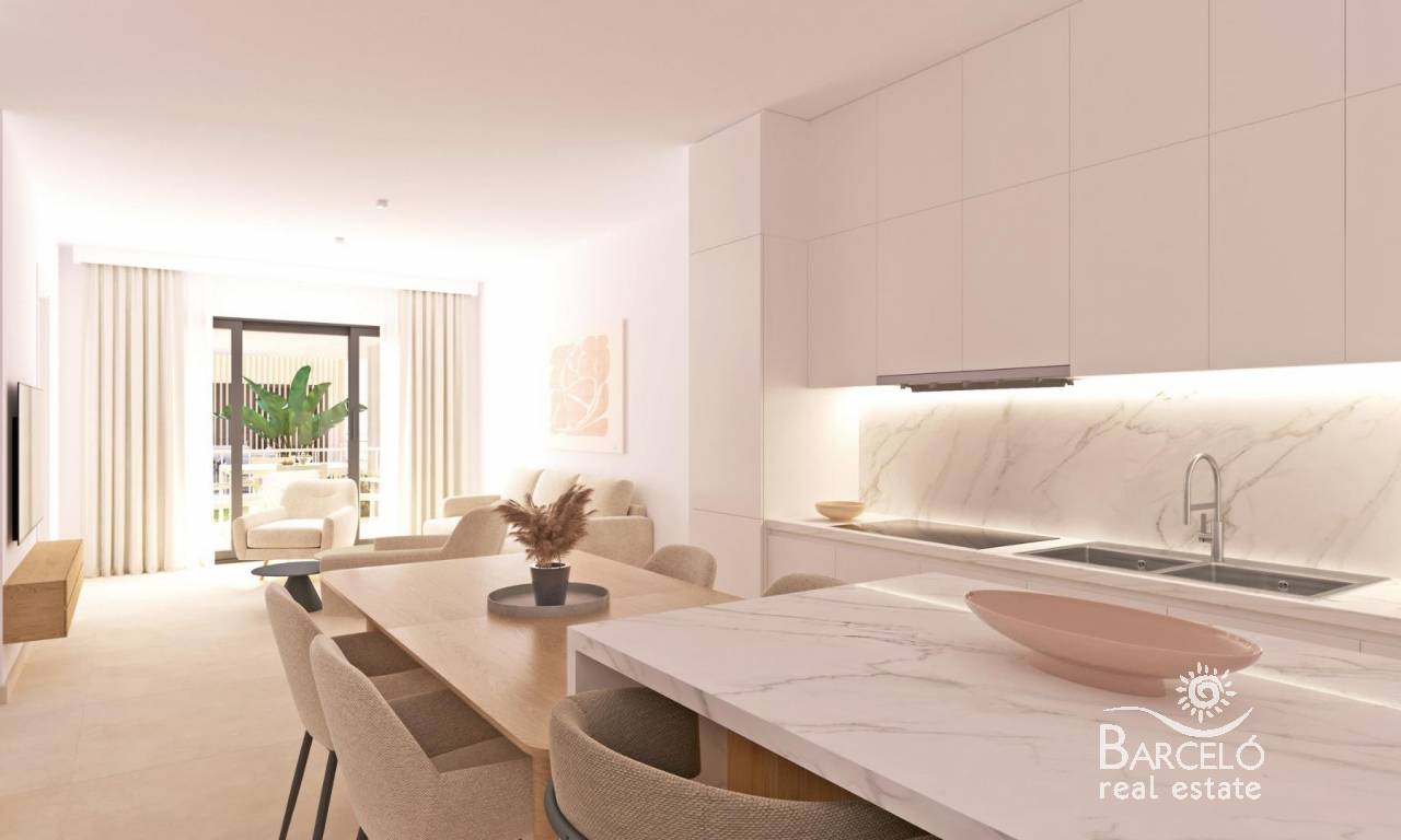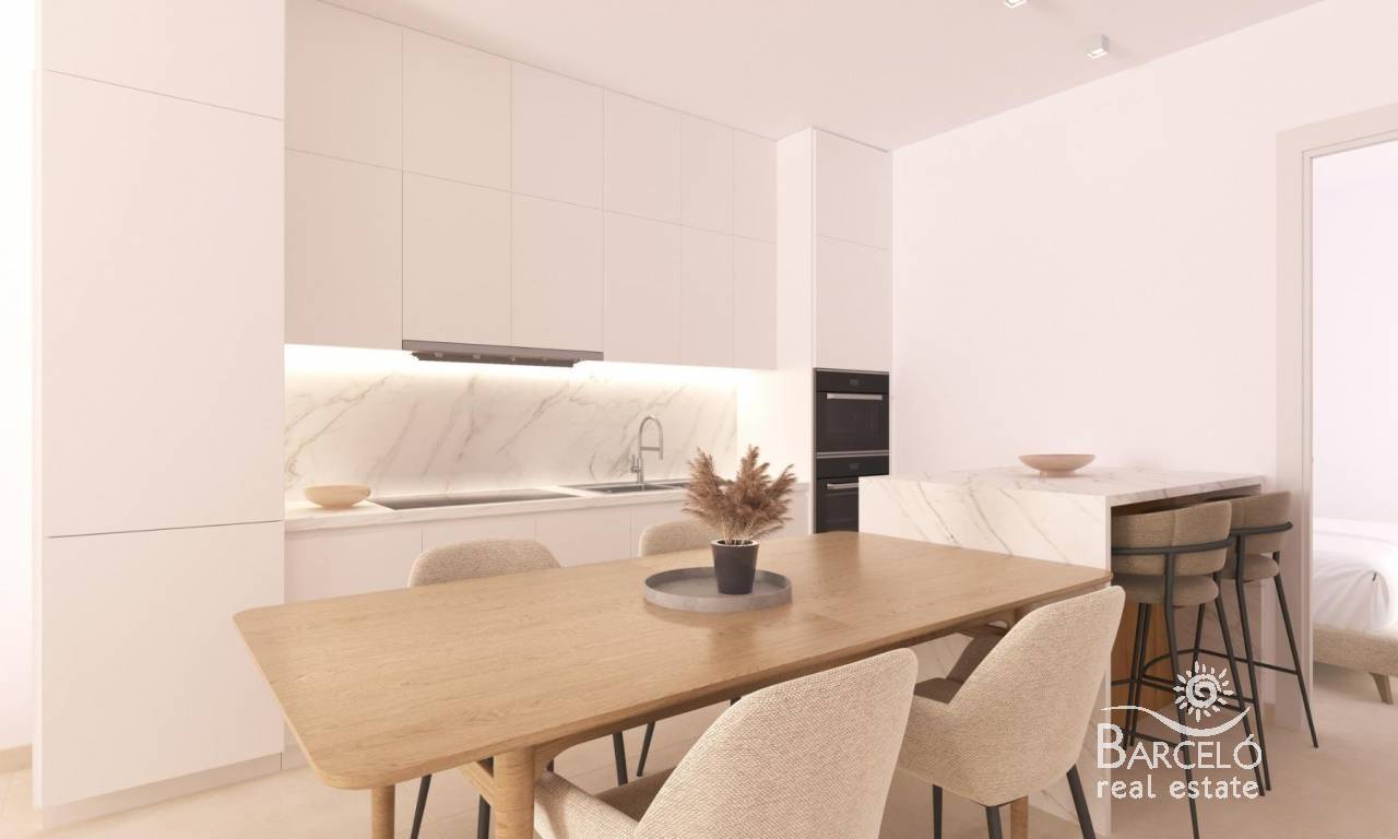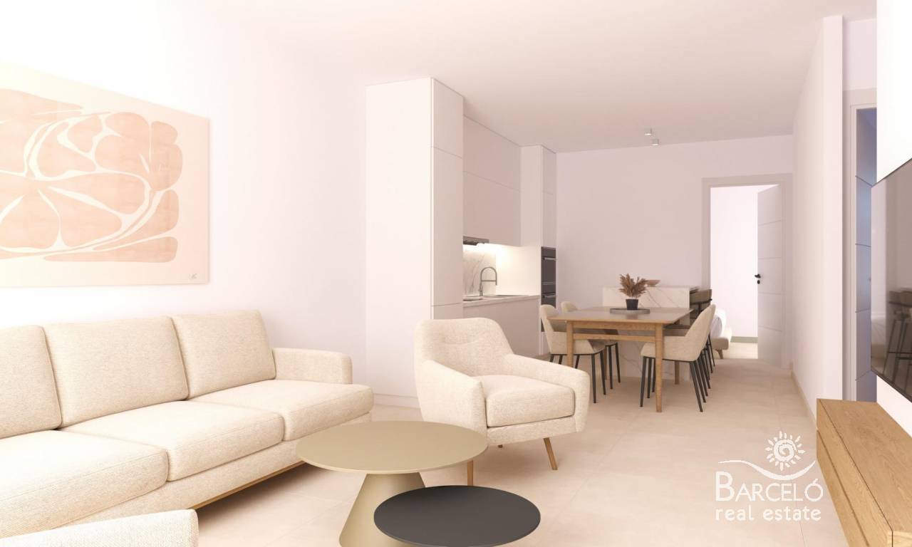 Modern New Build Apartments in San Cayetano, Torrepacheco, Murcia Contemporary Living in a Peaceful Mediterranean Setting This exclusive new residential complex is located in San Cayetano, Murcia, part of the municipality of Torre Pacheco, just 9 km from the sea and surrounded by several renowned golf courses. The project combines tranquility, comfort and contemporary design, offering an ideal environment for permanent living, holiday use or investment on the Costa Calida. The development consists of 72 apartments with 2 and 3 bedrooms and 2 bathrooms, one of them ensuite, distributed across four modern buildings. A second phase with bungalows and villas is also planned, adding further value and appeal to the area. Designed Communal Areas for Relaxation and Wellbeing Residents will enjoy carefully landscaped communal spaces that include two swimming pools, beautiful gardens and a fully equipped gym. These areas create a pleasant and social environment where neighbors can relax, exercise and enjoy the Mediterranean lifestyle. The residential complex also features 40 kW of photovoltaic solar panels that help support the community electricity costs, contributing to a more sustainable and energy efficient living environment. Apartments with Private Outdoor Spaces and Solarium Each apartment is designed to make the most of outdoor living. Ground floor properties include private gardens, first floor apartments offer spacious terraces, and top floor homes benefit from both a terrace and a private rooftop solarium. All properties include a summer kitchen on the terrace or solarium, perfect for enjoying the sun all year round. All homes come with an outdoor parking space and a private storage room in the basement, adding extra convenience and practicality. Quality Features and Energy Efficient Installations These new build apartments are delivered with quality finishes and modern installations to ensure comfort and functionality, including: Fully fitted kitchen with appliances Fully equipped bathrooms with furniture, mirror, lighting and shower screens Preinstallation for ducted air conditioning Aerothermal system for hot water The combination of modern materials and energy efficient systems makes these homes ideal for year round use. Excellent Location Close to Golf, Beaches and Services San Cayetano is a quiet and well connected village with local amenities, shops and services. Its strategic location allows easy access to beaches, golf courses and major transport links. Key distances to points of interest include: Mar Menor beaches 9 km Roda Golf 6 km La Serena Golf 14 km Los Alcazares 10 km Cartagena 30 km Murcia Corvera Airport 25 km Alicante Airport 90 km Secure Your Property in San Cayetano Today This modern residential complex offers an excellent opportunity to enjoy Mediterranean living in a peaceful yet well connected area. Contact us today for more information and reserve your new build apartment in San Cayetano.