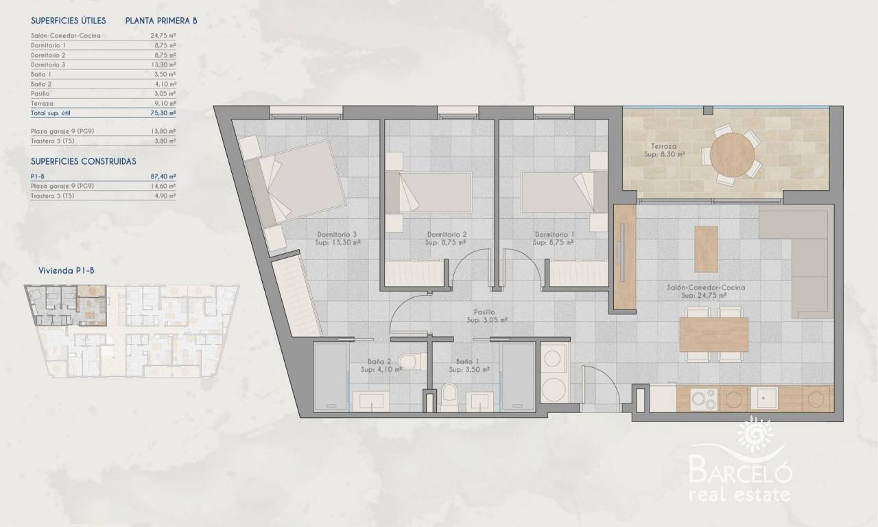 New Build Apartments for Sale in Lo Pagan (San Pedro del Pinatar) Near the Beach Modern Mediterranean Living in Lo Pagan Discover these stylish new build apartments for sale in Lo Pagan, a charming coastal area within San Pedro del Pinatar on the beautiful Costa Calida. Located in the well known neighborhood of Los Cuarteros, this residential development offers a privileged lifestyle just 500 meters from the beach and close to all essential services, restaurants, shops and leisure areas. Lo Pagan is famous for its relaxed seaside atmosphere, the calm waters of the Mar Menor and more than 300 days of sunshine each year. The area combines traditional Spanish charm with modern amenities, making it an ideal destination for both permanent living and holiday homes. Contemporary Apartments with Terraces and Private Solariums The development offers a selection of ground floor and middle floor apartments with spacious terraces, as well as exclusive penthouses with private rooftop solariums. The solariums include a pergola and barbecue area, creating the perfect setting for outdoor dining and relaxing under the Mediterranean sun. Each property has been designed to combine contemporary architecture with warm Mediterranean style. The open plan kitchen integrates seamlessly with the living and dining area, creating bright and comfortable living spaces. Large terraces extend the indoor areas and provide the perfect place for outdoor breakfasts or evening gatherings. Bedrooms feature built in wardrobes and the modern bathrooms are fully equipped, offering comfort and elegant finishes throughout the home. Quality Features and Community Facilities These homes are built with attention to detail and include high quality specifications to ensure comfort and efficiency. Fully furnished kitchen equipped with appliances Fully fitted bathrooms with modern finishes Ducted air conditioning fully installed Private parking space and storage room included with every property Residents can also enjoy excellent communal facilities including a swimming pool surrounded by relaxation areas and a fully equipped gym, ideal for maintaining an active lifestyle all year round. Excellent Location on the Costa Calida This development enjoys a strategic location close to beaches, golf courses and key destinations along the coast. Playa de Villananitos 0.5 km Real Club Nautico de Lo Pagan 0.5 km Lo Romero Golf 10 km Murcia International Airport 40 km Cartagena 35 km The nearby beaches of the Mar Menor such as Playa de La Puntica are known for their fine sand calm waters, ideal for swimming, sailing and water sports. Your New Home by the Sea Awaits Enjoy sunshine, beaches and a vibrant coastal lifestyle in one of the most sought after areas of the Costa Calida. Contact us today for more information about these new build apartments in Lo Pagan and secure your place by the sea.