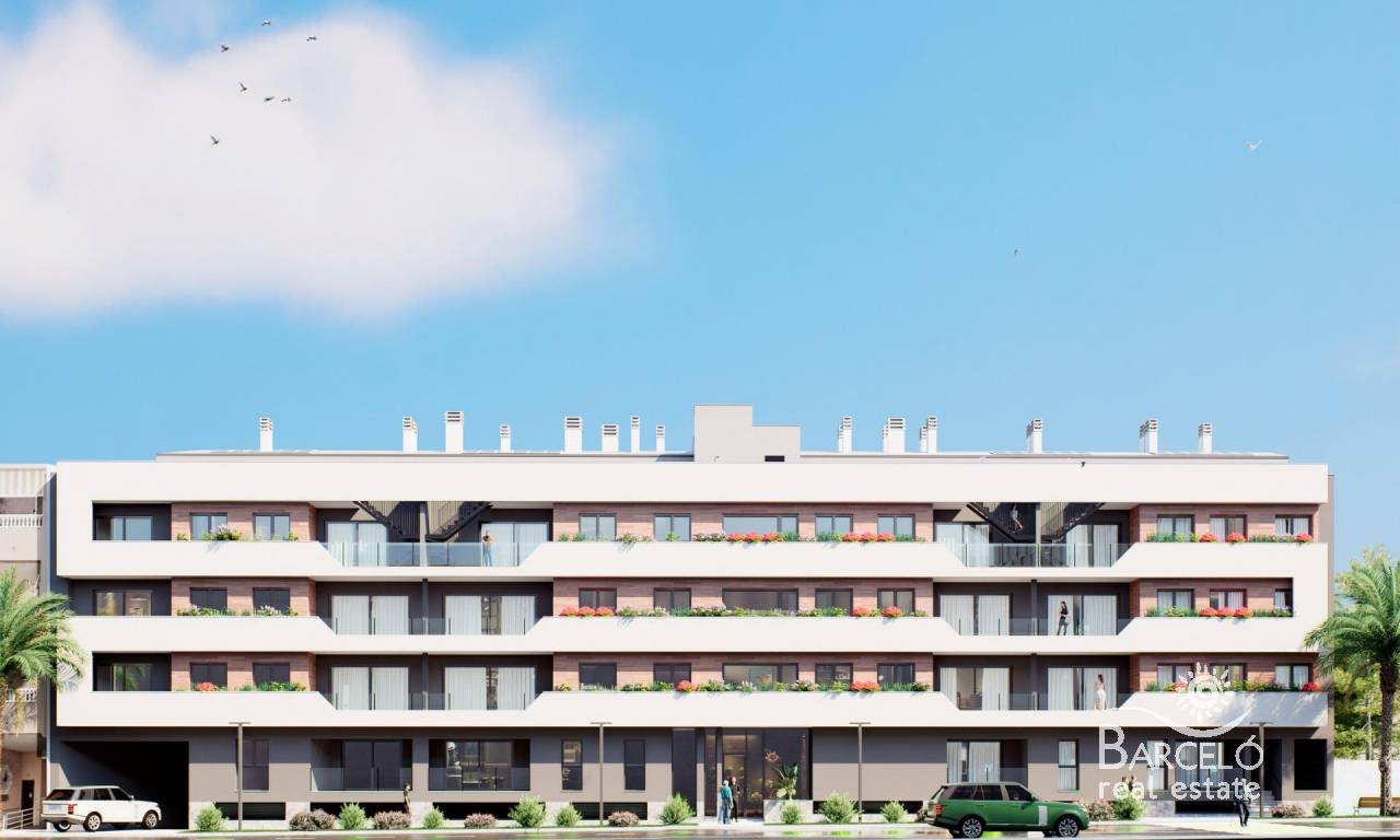 New Build Apartments for Sale in Lo Pagan (San Pedro del Pinatar) Near the Beach Modern Mediterranean Living in Lo Pagan Discover these stylish new build apartments for sale in Lo Pagan, a charming coastal area within San Pedro del Pinatar on the beautiful Costa Calida. Located in the well known neighborhood of Los Cuarteros, this residential development offers a privileged lifestyle just 500 meters from the beach and close to all essential services, restaurants, shops and leisure areas. Lo Pagan is famous for its relaxed seaside atmosphere, the calm waters of the Mar Menor and more than 300 days of sunshine each year. The area combines traditional Spanish charm with modern amenities, making it an ideal destination for both permanent living and holiday homes. Contemporary Apartments with Terraces and Private Solariums The development offers a selection of ground floor and middle floor apartments with spacious terraces, as well as exclusive penthouses with private rooftop solariums. The solariums include a pergola and barbecue area, creating the perfect setting for outdoor dining and relaxing under the Mediterranean sun. Each property has been designed to combine contemporary architecture with warm Mediterranean style. The open plan kitchen integrates seamlessly with the living and dining area, creating bright and comfortable living spaces. Large terraces extend the indoor areas and provide the perfect place for outdoor breakfasts or evening gatherings. Bedrooms feature built in wardrobes and the modern bathrooms are fully equipped, offering comfort and elegant finishes throughout the home. Quality Features and Community Facilities These homes are built with attention to detail and include high quality specifications to ensure comfort and efficiency. Fully furnished kitchen equipped with appliances Fully fitted bathrooms with modern finishes Ducted air conditioning fully installed Private parking space and storage room included with every property Residents can also enjoy excellent communal facilities including a swimming pool surrounded by relaxation areas and a fully equipped gym, ideal for maintaining an active lifestyle all year round. Excellent Location on the Costa Calida This development enjoys a strategic location close to beaches, golf courses and key destinations along the coast. Playa de Villananitos 0.5 km Real Club Nautico de Lo Pagan 0.5 km Lo Romero Golf 10 km Murcia International Airport 40 km Cartagena 35 km The nearby beaches of the Mar Menor such as Playa de La Puntica are known for their fine sand and calm waters, ideal for swimming, sailing and water sports. Your New Home by the Sea Awaits Enjoy sunshine, beaches and a vibrant coastal lifestyle in one of the most sought after areas of the Costa Calida. Contact us today for more information about these new build apartments in Lo Pagan and secure your place by the sea.