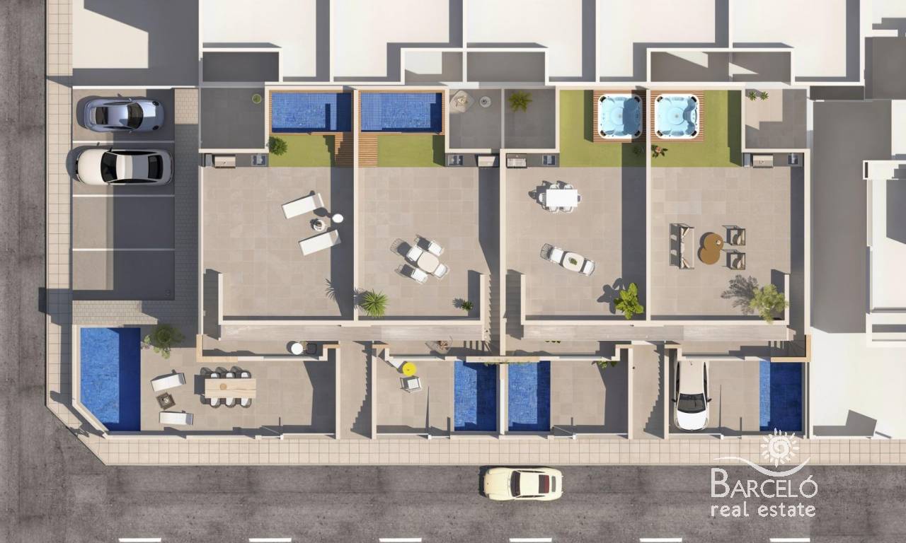 Modern New Build Bungalows for Sale in San Pedro del Pinatar Near the Beach Mediterranean Living in San Pedro del Pinatar Costa Calida Discover an exclusive new development of modern bungalows located in San Pedro del Pinatar, one of the most popular coastal towns on the Costa Calida. Situated in the peaceful residential area of Las Esperanzas, this development offers an ideal combination of comfort, contemporary design and proximity to the sea. San Pedro del Pinatar is well known for its beautiful coastline, natural parks and relaxed Mediterranean lifestyle. The town lies between the calm waters of the Mar Menor and the Mediterranean Sea, offering residents a wide choice of beaches and water sports. The nearby Las Salinas y Arenales de San Pedro del Pinatar Regional Park is a protected natural area famous for its salt lakes, birdlife and scenic walking and cycling routes. This location provides easy access to supermarkets, restaurants, sports facilities and golf courses, while maintaining a peaceful residential atmosphere just minutes from the beach. Exclusive Development of Stylish Bungalows The residential complex consists of only eight carefully designed homes, offering privacy and a boutique style community. The properties feature two bedrooms and two bathrooms, including a master bedroom with ensuite bathroom. Buyers can choose between ground floor bungalows or top floor homes with private solariums. Ground floor properties include a private parking space within the plot and a rear patio. Some units also offer a basement level or a private swimming pool. Top floor bungalows feature a terrace and a spacious private rooftop solarium with a summer kitchen, ideal for outdoor dining and relaxing in the sun. Selected units also include a jacuzzi. These homes also have a private parking space and a storage room on the ground floor. Modern Features and High Quality Finishes Each bungalow has been designed with comfort and energy efficiency in mind, using quality materials and modern installations. Fully equipped kitchen with appliances included Pre installation for ducted air conditioning Motorized shutters and double glazing windows Aluminum exterior carpentry in dark grey finish LED lighting inside and outside the property Security entrance door Water connection on terraces and solariums Private parking space included with every home Some homes offer the additional luxury of a private pool or jacuzzi, providing the perfect setting to enjoy the Mediterranean climate throughout the year. Excellent Location Close to Beaches Golf and Services Mar Menor beaches 1.8 km Dos Mares Shopping Center 3 km Lo Romero Golf 11 km San Pedro Marina 4 km Region de Murcia International Airport 39 km Alicante Elche Airport 78 km The nearby coastal area of Lo Pagan offers a lively promenade with restaurants, cafes and leisure activities, making it a vibrant destination throughout the year. Find Your New Home on the Costa Calida These modern bungalows offer an excellent opportunity to own a stylish new home near the sea, whether as a permanent residence, holiday retreat or investment property. Contact us today to receive more information or arrange a visit to discover your new home in San Pedro del Pinatar.