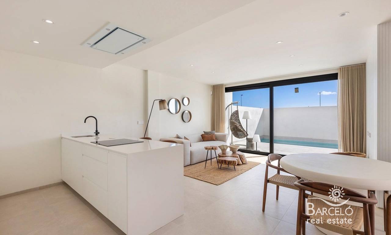 New Build Villas with Private Pool Near La Serena Golf in Los Alcazares Exclusive Boutique Development Near Golf and Beach Discover this exclusive residential development of only eight independent new build villas ideally located between La Serena Golf and the charming coastal town of Los Alcazares. Situated just 1500 meters from the Mar Menor beaches, these homes offer the perfect combination of golf, sea and Mediterranean lifestyle. The location allows residents to enjoy walking distance access to both the golf course and the town center, where a wide range of restaurants, shops, cafes and essential services can be found. Los Alcazares is known for its relaxed atmosphere, long promenade and shallow warm waters, making it a popular destination for both holidaymakers and permanent residents. Modern Villas with Flexible Layouts These contemporary villas are available in two or three bedroom configurations, with options for single level or two level designs. Built on private plots starting from 200 m2, each home is designed to maximize space, comfort and natural light. All villas feature a private swimming pool and on plot parking, creating a private and functional outdoor environment ideal for enjoying the sunny climate all year round. Single level villas include a private rooftop solarium, perfect for sunbathing or relaxing with open views. Two level villas offer spacious terraces on the upper floor, providing additional outdoor living areas. Open Plan Living and Outdoor Connection The interior layout focuses on open plan living, with bright living and dining areas seamlessly connected to modern kitchens. Large windows allow natural light to fill the spaces while offering direct access to terraces and pool areas. This design enhances the indoor outdoor lifestyle that defines living on the Costa Calida, making these villas ideal for both everyday living and entertaining guests. High Quality Finishes and Modern Features The villas are built to high standards using quality materials and trusted brands. Features include a reinforced security entrance door by DIERRE, fully fitted wardrobes and modern kitchens equipped with BOSCH appliances. Additional specifications include aerothermal system for hot water, motorized shutters and an automated vehicle access gate. Every detail has been carefully considered to provide comfort, efficiency and convenience. Prime Location on the Costa Calida Los Alcazares offers an excellent location with easy access to beaches, golf courses and transport connections. The Mar Menor beaches are just 1.5 km away, while La Serena Golf is within walking distance. Other key distances include Murcia Corvera Airport 35 km, Cartagena 25 km, Murcia city 50 km and Alicante Airport 90 km. Ideal Investment or Holiday Home Opportunity These new build villas offer a rare opportunity to own a modern property in a prime location close to both the sea and golf. Contact us today for more information or to arrange a viewing and secure your new villa in Los Alcazares.