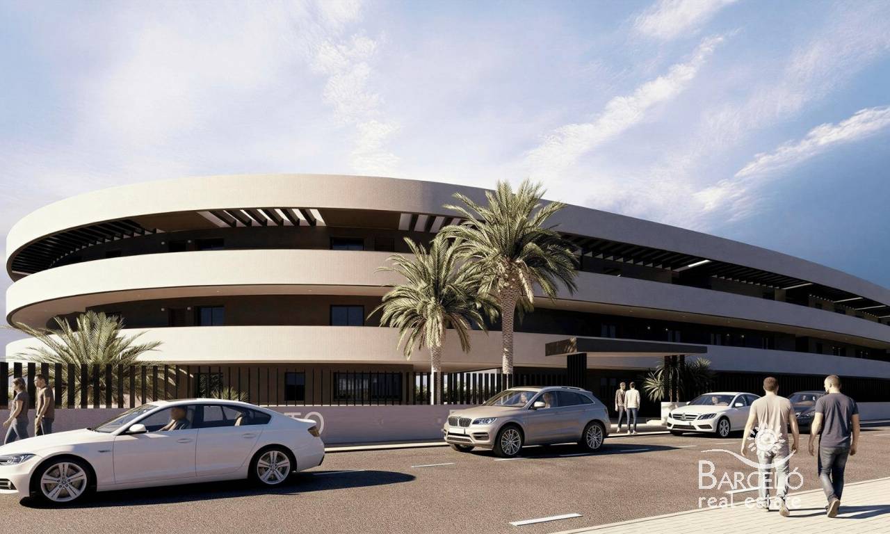 Luxury Golf Front Apartments Near the Sea in Los Alcazares Costa Calida Exclusive New Build Apartments in La Serena Golf Discover this exceptional new residential development located frontline to La Serena Golf in Los Alcazares, just 700 meters from the Mar Menor beaches. This modern complex offers 28 luxury apartments designed to provide maximum comfort, natural light and a high quality Mediterranean lifestyle. The building features a distinctive J shaped design with a curved facade, carefully oriented to enhance sunlight exposure and open views over the golf course and surrounding landscape. Its prime location combines the tranquility of a golf environment with close proximity to the sea and town center. Modern Apartments with Spacious Terraces and Solariums The development offers stylish two and three bedroom apartments, all with two bathrooms including an en suite. Each property has been designed to maximize outdoor living, a key element of life on the Costa Calida. Ground and first floor apartments feature large private terraces, perfect for outdoor dining and relaxation. Top floor properties benefit from generous private solariums, complete with a summer kitchen, offering an ideal space to enjoy the sun all year round. Elegant Interiors and High Quality Finishes Inside, the apartments combine modern design with functional layouts. Open plan living areas connect seamlessly with outdoor spaces, creating bright and comfortable environments. The kitchens come fully equipped with appliances, while bathrooms are delivered complete with vanity units, mirrors and shower screens. Additional features include a reinforced security entrance door, aerothermal system for hot water, LED lighting package and pre installation for ducted air conditioning. Communal Areas Designed for Relaxation Residents can enjoy a large communal swimming pool surrounded by beautifully landscaped gardens, providing a peaceful setting to relax and socialize under the Mediterranean sun. Each apartment also includes a private parking space and storage room in the underground garage, ensuring convenience and security. Prime Location Close to Golf, Beach and Services This development is ideally located just 700 meters from the beach and approximately 1.5 km from the center of Los Alcazares, where you will find a wide range of restaurants, shops, cafes and essential services. Los Alcazares is a popular coastal town known for its relaxed atmosphere, long promenades and warm shallow waters. Key distances include Murcia International Airport 35 km, Alicante Airport 95 km, La Serena Golf at your doorstep, Roda Golf 4 km and Cartagena city 25 km. Ideal Investment or Holiday Home on the Costa Calida These golf front apartments offer an excellent opportunity to own a modern property in a privileged location close to both the sea and golf. Contact us today to receive more information or to arrange a viewing and secure your new home in Los Alcazares.
