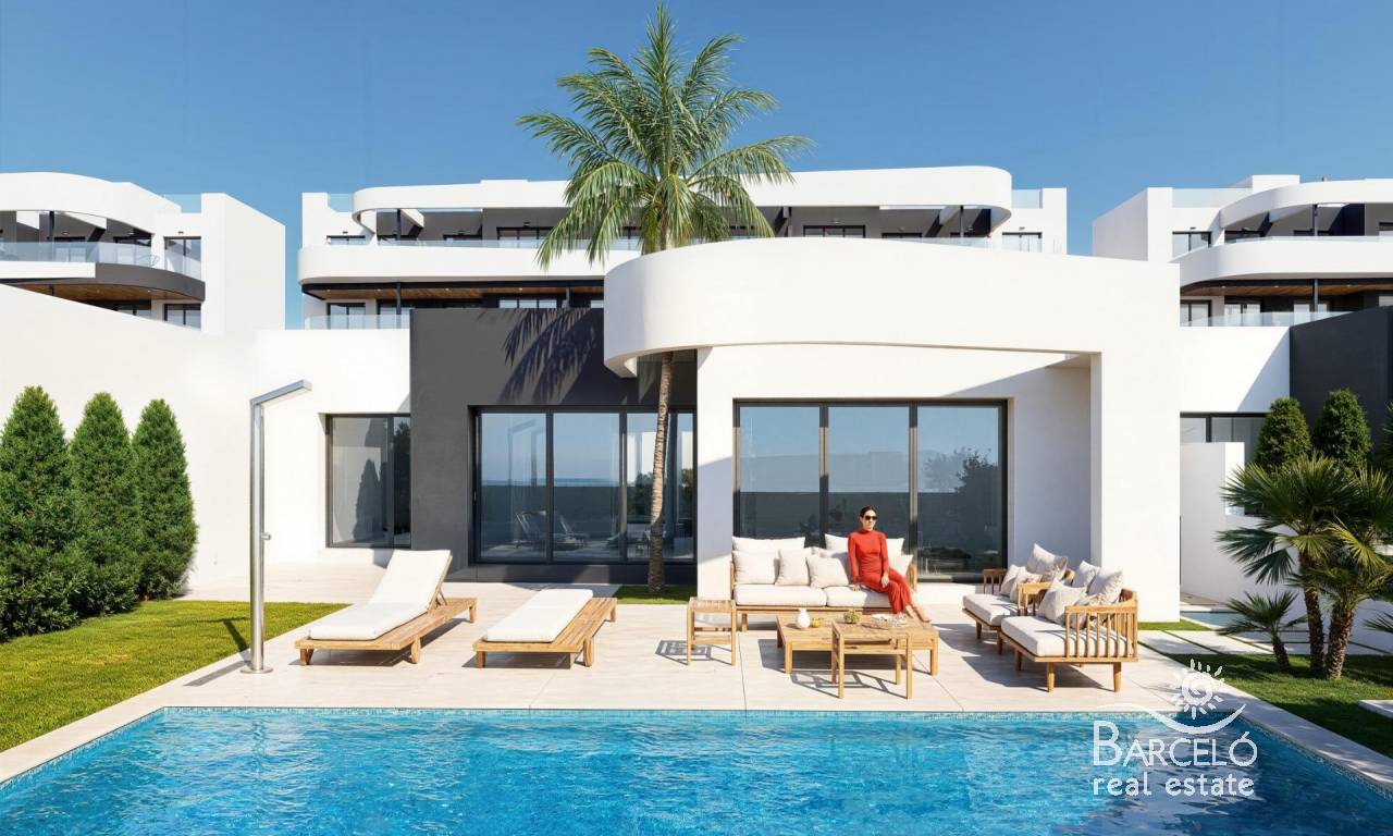 New Build Golf Front Apartments and Villas in La Serena Golf Los Alcazares Exclusive Residential Development Frontline to La Serena Golf Discover this exceptional new build residential development located frontline to La Serena Golf in Los Alcazares, one of the most desirable coastal towns on the Costa Calida. This exclusive community offers a premium lifestyle surrounded by nature, open views and direct access to a renowned 18 hole golf course known for its flat terrain, scenic lakes and technical challenges. Ideally situated just 1.7 km from the beaches of the Mar Menor and the town center, residents can enjoy both tranquility and easy access to restaurants, shops and all essential services. Los Alcazares is well known for its relaxed atmosphere, long promenades and warm shallow waters, making it perfect for year round living or holiday stays. Modern Apartments with Terraces and Private Solariums The development includes 36 contemporary apartments distributed across four blocks. Buyers can choose between two or three bedroom layouts with two bathrooms, including an en suite. Ground floor apartments feature spacious terraces with the option to add a private pool. Middle floor units offer generous outdoor terraces, while penthouses include private solariums ideal for sunbathing and outdoor dining. All apartments include underground parking and a storage room with elevator access. The community also offers beautifully landscaped Mediterranean gardens and a large communal swimming pool for residents to enjoy. Stylish Single Level Villas with Private Pool In addition to the apartments, the development offers nine exclusive single level villas. These homes feature three bedrooms, two bathrooms and an additional guest toilet, all designed to provide seamless indoor and outdoor living. Each villa includes a private swimming pool, garden, storage room and private parking. A spacious open basement provides additional flexible space that can be adapted to suit individual needs such as a gym, entertainment area or extra storage. High Quality Finishes and Energy Efficient Design All properties are built with high quality materials and modern specifications. Features include aluminum exterior carpentry with thermal break, fully equipped bathrooms with vanity units and glass shower screens, and pre installation for ducted air conditioning and furnished kitchens in apartments. Villas come with fully installed air conditioning systems and fully equipped kitchens with appliances. Elevators are available in apartment blocks, ensuring comfort and accessibility. Prime Location Close to Golf, Beaches and Amenities This development offers excellent connectivity to key points of interest. Murcia International Airport is 35 km away and Alicante Airport is 95 km. The marina of Los Alcazares is just 2 km away, Dos Mares shopping center is 15 km and Roda Golf is only 4 km from the development. Cartagena city center is located 25 km away. Ideal Investment and Mediterranean Lifestyle Opportunity This golf front development offers a unique opportunity to enjoy modern living in a privileged setting close to both the sea and golf. Contact us today to receive more information or to arrange a viewing and find your perfect home in Los Alcazares.