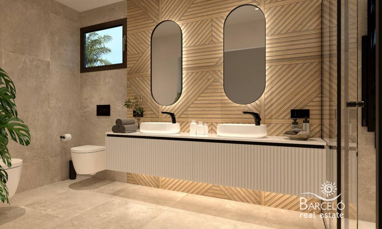 Modern Semi Detached Villas with Private Pool in Las Filipinas-Orihuela Costa Exclusive New Build Villas in a Prime Costa Blanca Location Discover this boutique development of eight modern semi detached villas located in Las Filipinas, Orihuela Costa, one of the most sought after residential areas in the southern Costa Blanca. This well established neighborhood offers excellent access to everyday amenities including supermarkets, restaurants, pharmacies and leisure facilities, all within a short distance. Ideally positioned between some of the best golf courses in the area, including Villamartin Golf, Campoamor Golf, Las Ramblas Golf and Las Colinas Golf, these villas provide an exceptional lifestyle for golf lovers and international buyers. The beautiful beaches of Orihuela Costa are just 6 km away, making this an ideal location for both permanent living and holiday homes. Contemporary Design with Spacious Layouts Each villa is built on a private plot of approximately 300 m2 and offers around 140 m2 of modern living space distributed over two floors. The properties feature three double bedrooms, two full bathrooms with double sinks including an en suite, and an additional guest toilet. The ground floor showcases a bright and stylish living area with a feature wall finished in natural stone, creating a warm and elegant atmosphere. Large windows provide direct access to the outdoor terrace and private swimming pool, which includes decorative water features. At the rear of the property, a designer Italian kitchen with a central island and LED lighting opens to a spacious dining area with access to the garden and private parking area. Elegant Bedrooms and Outdoor Living The first floor includes two guest bedrooms with built in wardrobes and a family bathroom. The master bedroom stands out with a sophisticated design, featuring a floor to ceiling oak headboard, mirrored details and a luxurious en suite bathroom, as well as views over the pool area. There is also the option to add a rooftop solarium or a semi basement, offering additional space and customization potential. High Quality Features and Modern Comfort These villas are built with high quality materials and the latest technology to ensure comfort and efficiency. Features include pre installation for ducted air conditioning, aerothermal system for hot water, underfloor heating in bathrooms and electric shutters. Additional specifications include an alarm system, video intercom and automated vehicle access gate, ensuring both convenience and security. Prime Location Close to Beaches and Golf Las Filipinas offers a strategic location with excellent connectivity. The beaches of Orihuela Costa are approximately 6 km away, while Murcia International Airport is 50 km and Alicante Airport is 55 km. Several top golf courses are located within a radius of 2 to 5 km. Ideal Investment Opportunity on the Costa Blanca These modern villas offer a perfect combination of design, location and lifestyle, making them an excellent investment or second home on the Costa Blanca. Contact us today for more information or to arrange a viewing and secure your new villa in Orihuela Costa.