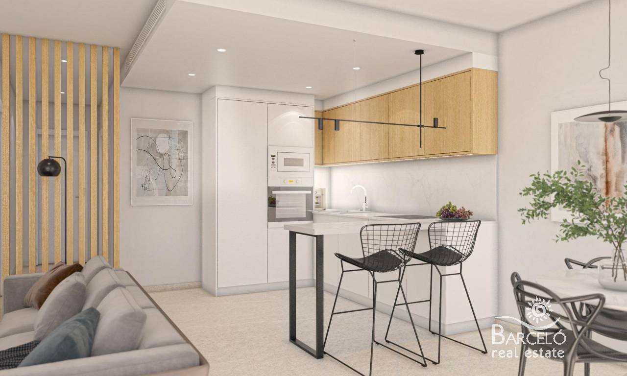 Modern Apartments with comunal Pool Near the Beach in San Pedro del Pinatar Exclusive New Build Apartments on the Costa Calida Discover this boutique development of 12 modern apartments designed to offer comfort, functionality and quality of life in one of the most attractive areas of the Costa Calida. Located close to Lo Pagan in San Pedro del Pinatar, this residential complex combines a residential environment with easy access to the coast and all essential services. The area is well known for its relaxed Mediterranean lifestyle, natural beaches and famous mud baths. With shops, restaurants, supermarkets and leisure facilities nearby, this location is ideal for both permanent living and holiday stays. Prime Location Close to Beaches and Promenade The development is situated just 3 km from the beaches of La Torre and the popular Lo Pagan promenade, where you can enjoy seaside walks, beach bars and water sports activities. The Mar Menor offers calm and warm waters, perfect for families and outdoor enthusiasts. Contemporary Design with Flexible Layouts The project offers 1 and 2 bedroom apartments in different configurations to suit various lifestyles. Ground floor properties feature large private terraces, parking within the plot and direct access to the communal pool. Top floor apartments include private rooftop solariums, ideal for enjoying the sun and outdoor living. All homes are designed with open plan living spaces, combining kitchen, dining and lounge areas with direct access to terraces. Bedrooms include built in wardrobes, and the master bedroom benefits from an en suite bathroom. High Quality Finishes and Energy Efficiency These apartments are built with a focus on comfort and sustainability. Features include pre installation for ducted air conditioning, pre installation for natural gas central heating and an aerothermal system for hot water. Bathrooms are fully equipped with furniture, mirrors and shower screens, while electric shutters are installed in the living room. Additional technical lighting and ventilation systems ensure a comfortable indoor environment throughout the year. Communal Areas Designed for Relaxation The residential complex offers a beautifully designed communal area with a swimming pool featuring a beach style entrance, perfect for relaxing and cooling off. A dedicated chill out zone with sun loungers and shaded areas creates a welcoming space to socialize and unwind. Additional facilities include outdoor parking with pre installation for electric vehicle charging and a communal bicycle storage area, promoting a sustainable and active lifestyle. Excellent Connectivity and Nearby Amenities This development is ideally located with easy access to key points of interest. Murcia International Airport is approximately 35 km away and Alicante Airport around 75 km. Several golf courses are within 10 to 15 km, and nearby marinas offer excellent nautical facilities. Ideal Investment or Holiday Home Opportunity These apartments offer an excellent opportunity to enjoy modern coastal living in a well connected and sought after area. Contact us today for more information or to arrange a viewing and secure your new apartment near the sea in San Pedro del Pinatar.